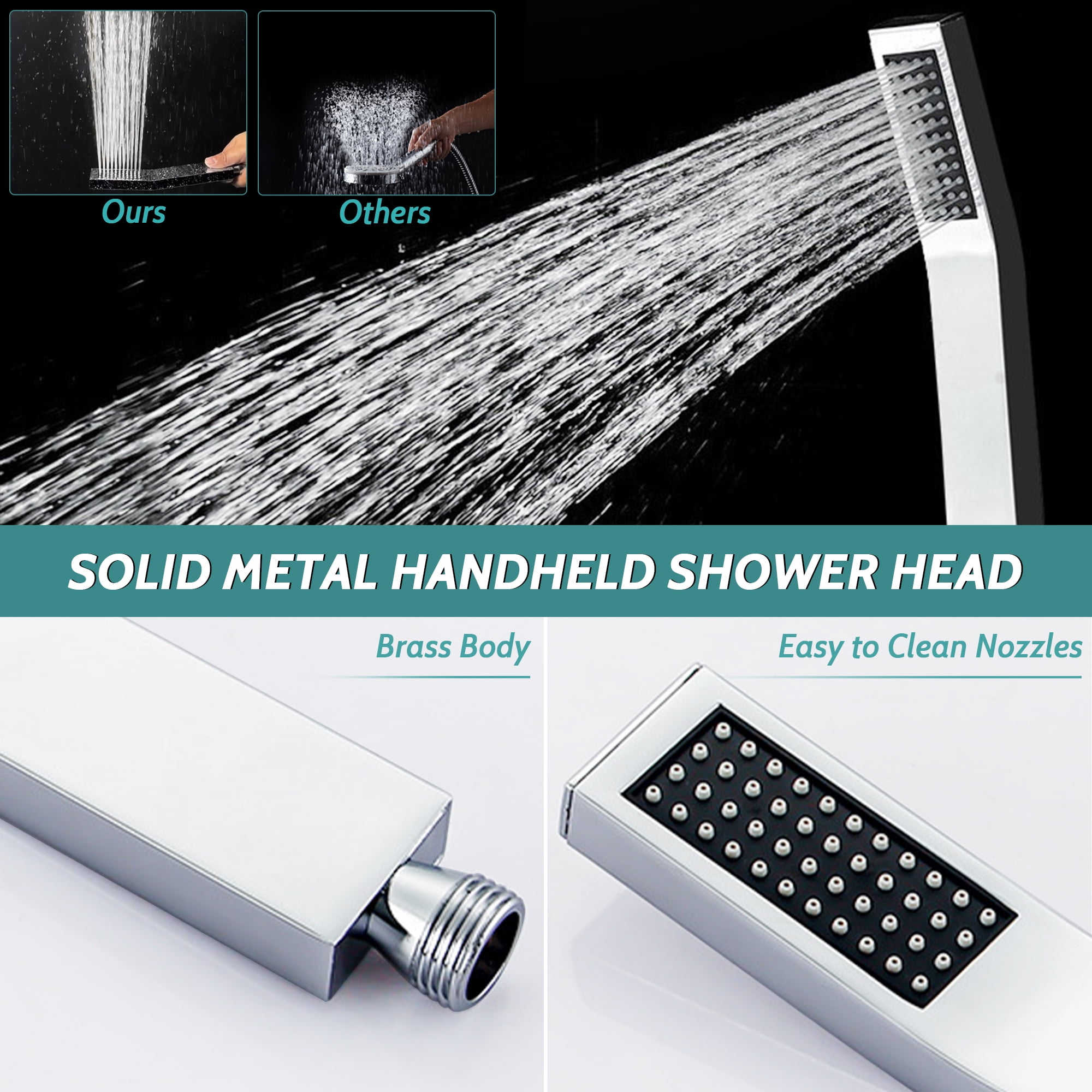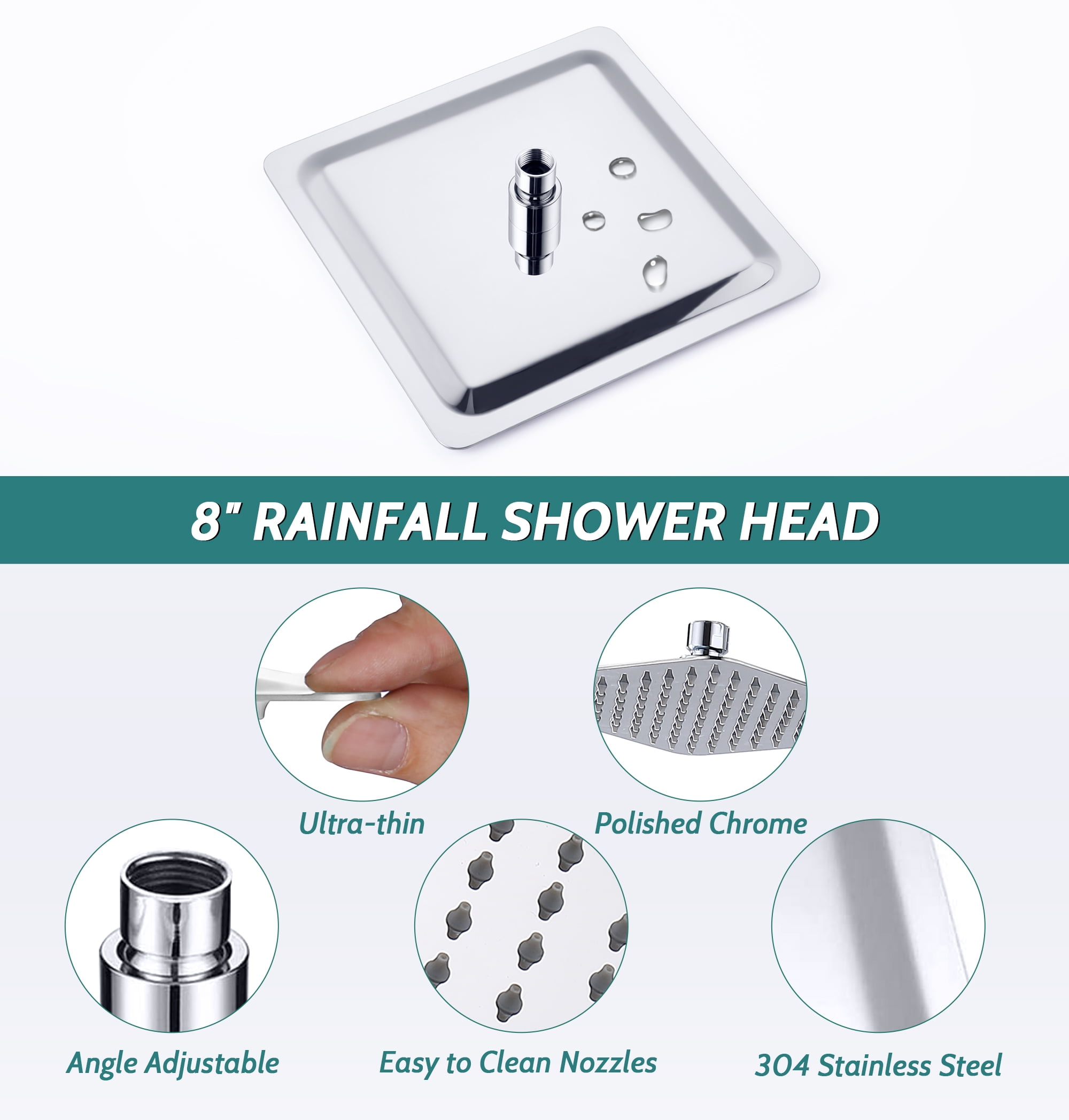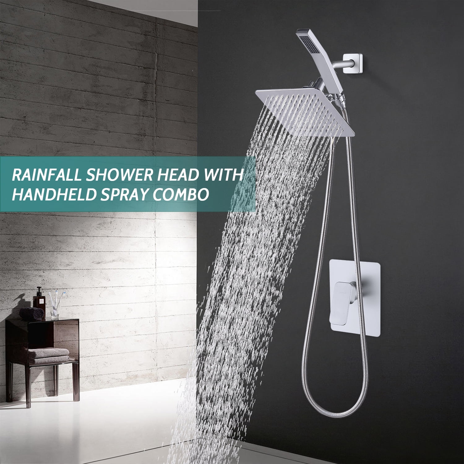G-Promise All Metal Square 8″ Rainfall Shower Head with Handheld Combo, with 71″ Extra Long Flexible Hose, Smooth 3-Way Diverter
