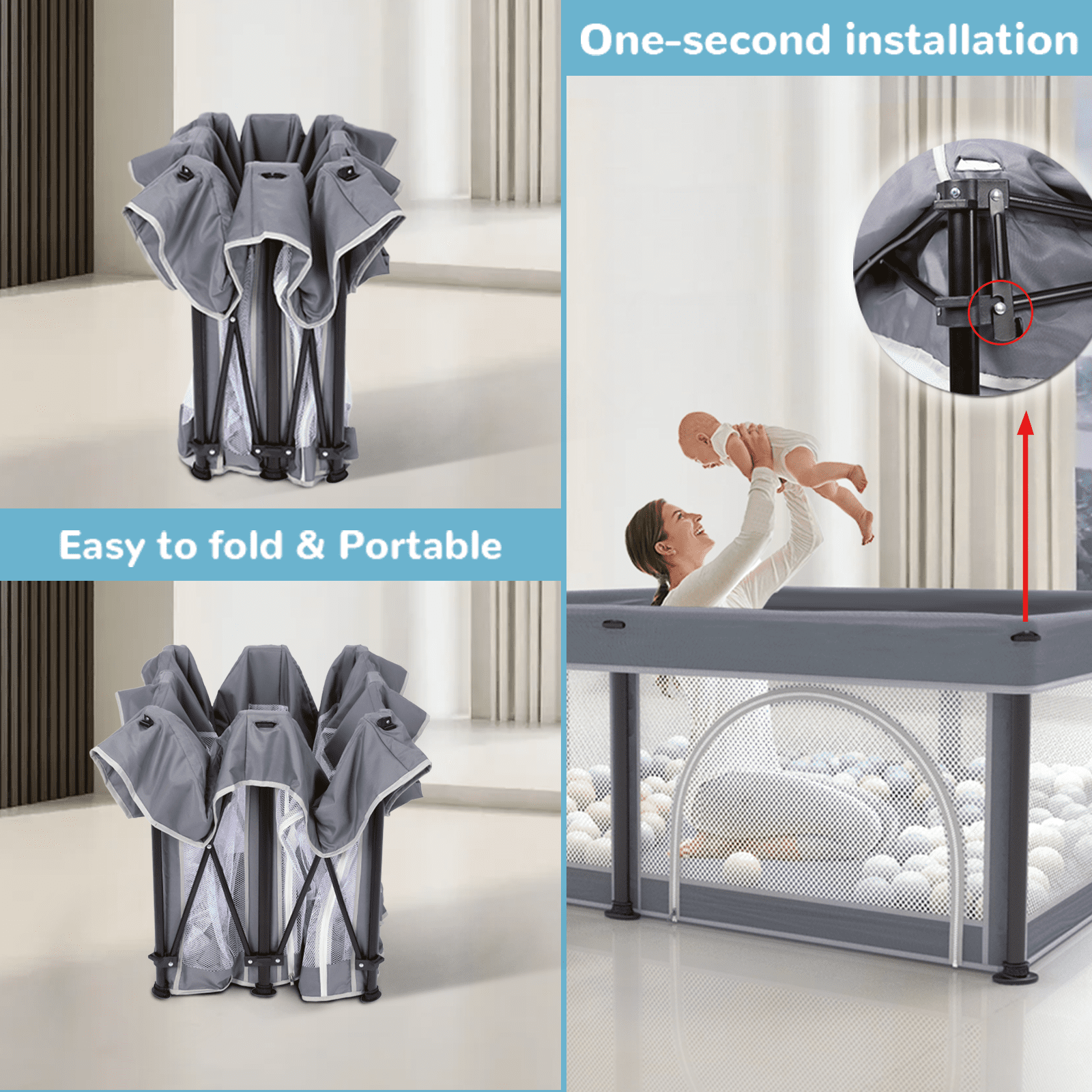 About G TALECO GEAR Foldable Baby Playpen ——Our goal is to dedicate ourselves to creating high-quality baby products and make them the best choice for every customer. Brand: G TALECO GEAR Gender: Unisex Assembled Product Weight:14 lb Compared with other ordinary baby playpen, this quick assembly foldable baby playpen solves the problem of large space occupation and inconvenient to carry. When the newborn is born, it will be the best choice for your growing baby. When parents need to do other things, just put your baby into this safe baby gate playpen, and zip up the external zipper to prevent your baby from accidentally escaping from the center of the baby fence, and you can always watch your baby’s activity status, which protects your child’s safety. This portable playpen for babies and toddlers will be a good helper for you. Parents and babies can spend happy time in it. It can be opened and folded in minutes, helping you save space and time. You deserve to have it.