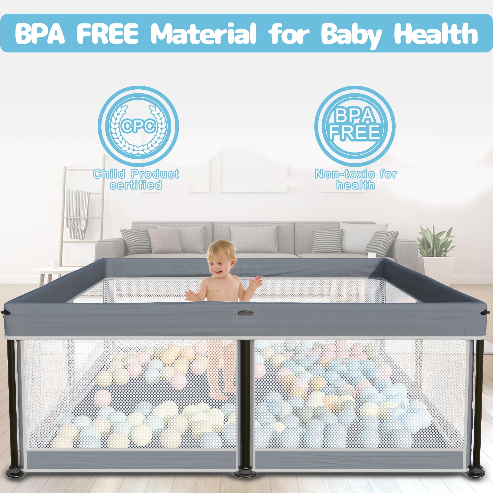 G TALECO GEAR Large Baby Playpen: The oversized 50″ x 50″ playpen can accommodate two babies to play at the same time. Your baby can move around indoors and outdoors whenever you want, sharing quality time with your family and making it easy for your baby to walk, crawl, play and explore. Foldable Baby Playpen: Featuring an innovative folding design that makes it quick and easy to assemble and disassemble, it can be completed independently in minutes and can be easily bagged to save time and space. Safe & Eco-Friendly & Durable: Made of 300D Oxford fabric material, thicker, non-toxic and BPA free, not only gentle to baby’s skin, but also easy to clean and maintain, safe for baby. The non-slip base and thickened steel tube make the baby enclosure more stable and provide a safer activity center for your baby. The product is CPC certified, so you can use them with confidence. 360° Full Viewing Angle Design: The full-viewing angle design allows parents to see their children from any angle. Whether you are in the kitchen, bedroom or living room, you can easily monitor your baby’s activities. The external zipper design prevents baby from accidentally wandering away from the center of the enclosure. Portable & Space Saving: Quickly folds to mini size, easily fits into a portable bag for easy transportation and storage, a great choice for on-the-go travel.Assembled Product Weight:14 lb. Complete Customer Service: We are committed to providing excellent customer service. If your baby playpen arrives damaged or missing/defective in any way, please contact us immediately. We will do our best to solve the problem and make sure you are satisfied.