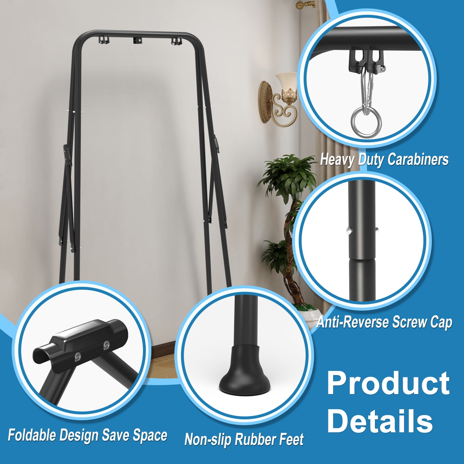 INNOVATIVE DESIGN: The swing seat is made of Teslin mesh, waterproof and sunproof, comfortable and breathable, with a good riding experience. SAFETY FIRST: High-quality steel, reinforced screws, stable structure can ensure the safety of your child. ADJUSTABLE HEIGHT: The length of the rope can be easily adjusted according to the needs of different growth stages of the baby. EASY INSTALLATION: With detailed installation instructions and tools, the assembly process is easy to understand. SPACE SAVING: Foldable metal swing stand allows you to store it easily and reduce the space it occupies. CUSTOMER SERVICE: If you encounter any product problems, please feel free to contact us, we will provide you with satisfactory solutions within 24 hours.