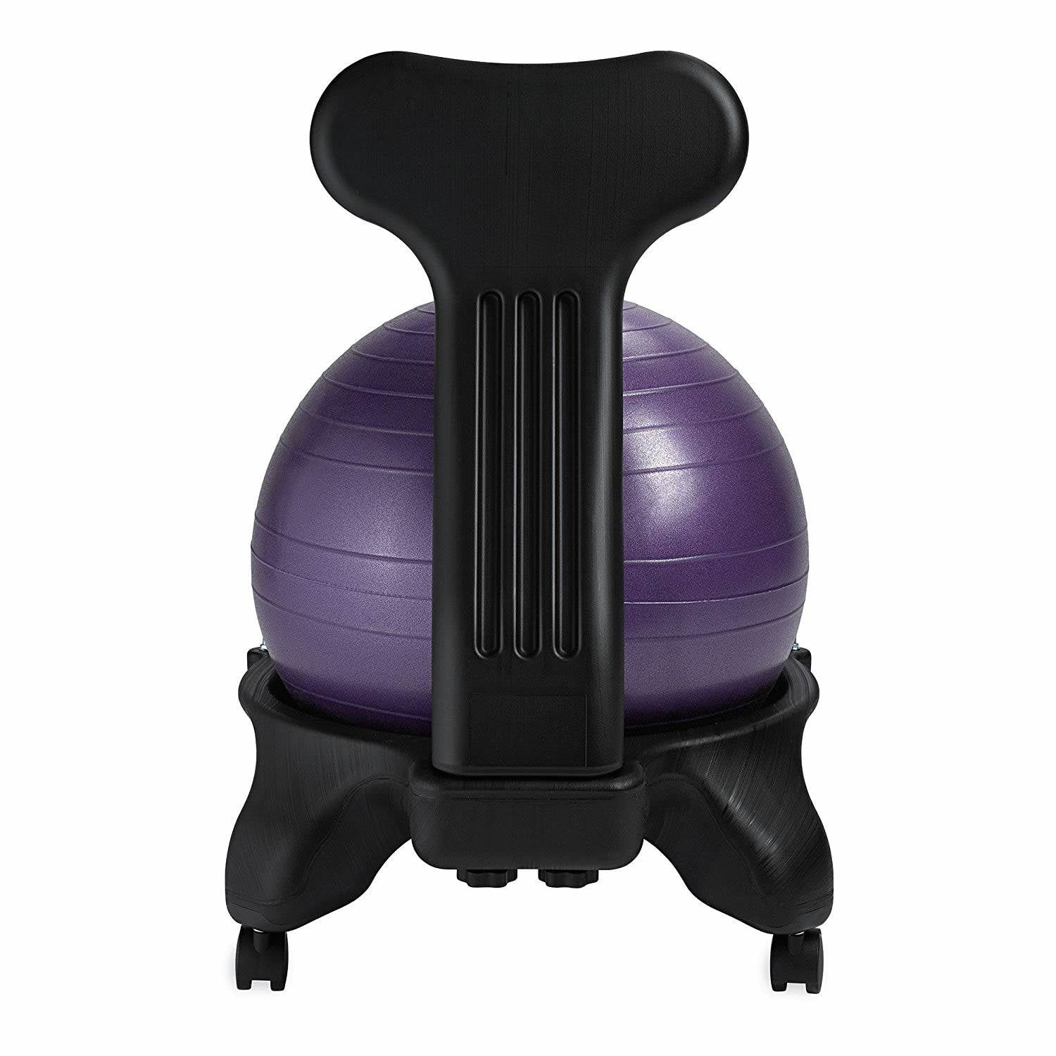 Ergonomic back support and spinal alignment Strengthens your core as you sit Easy one-tool assembly Stable, yet lightweight base is made from molded PVC Designed for heights of 5â-5â11″ and weights up to 300 lbs. Desktop workout guide provides an effective low-impact workout and stretching routine Rolling, lockable caster wheels Latex-free, anti-burst 52cm balance ball 24-25″ sitting height Measurements: 22″W x 31″H x 22″D; 13 lbs. Compatibility: 52cm balance ball. Your choice of color Manufacturer’s warranty included (see product guarantee)