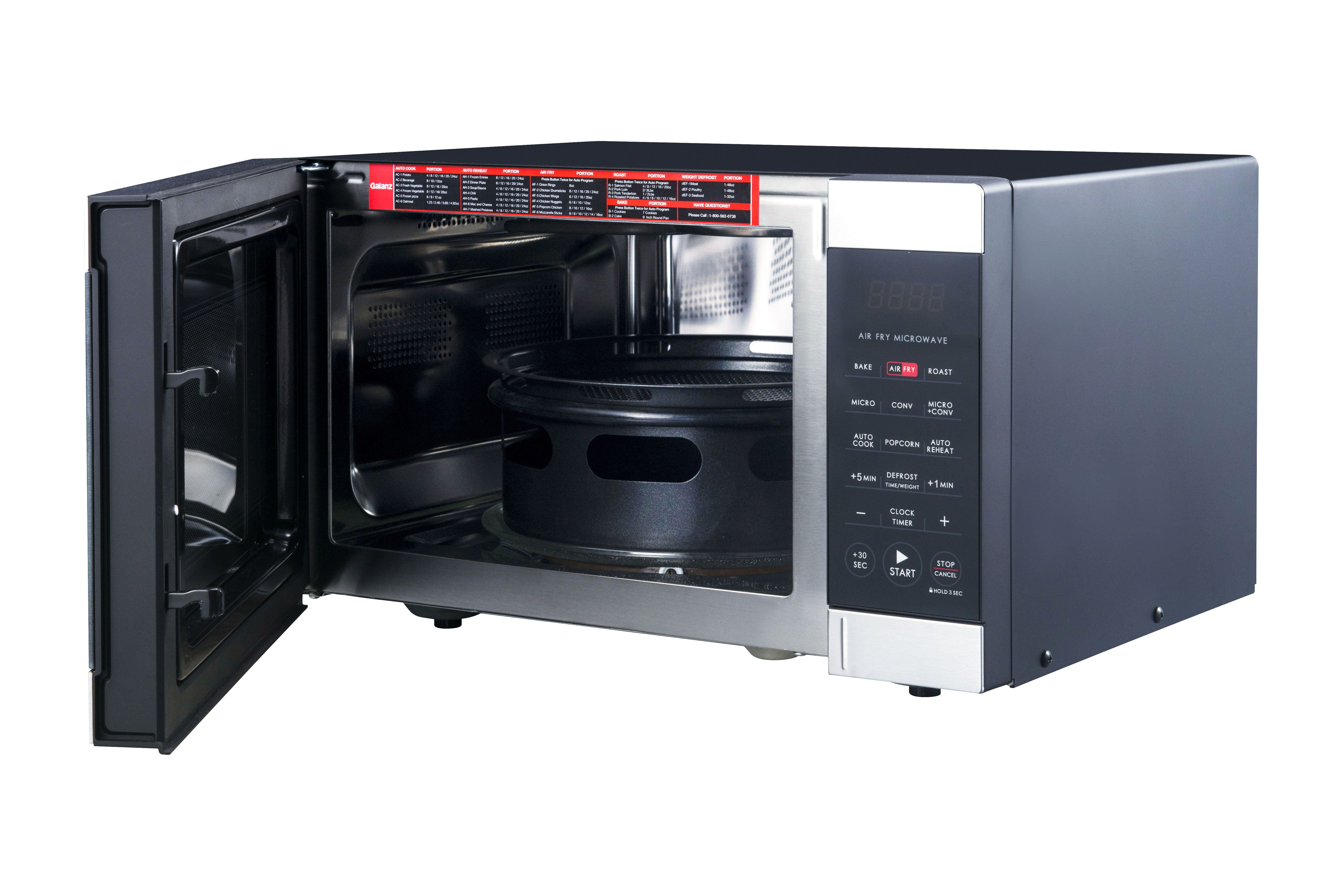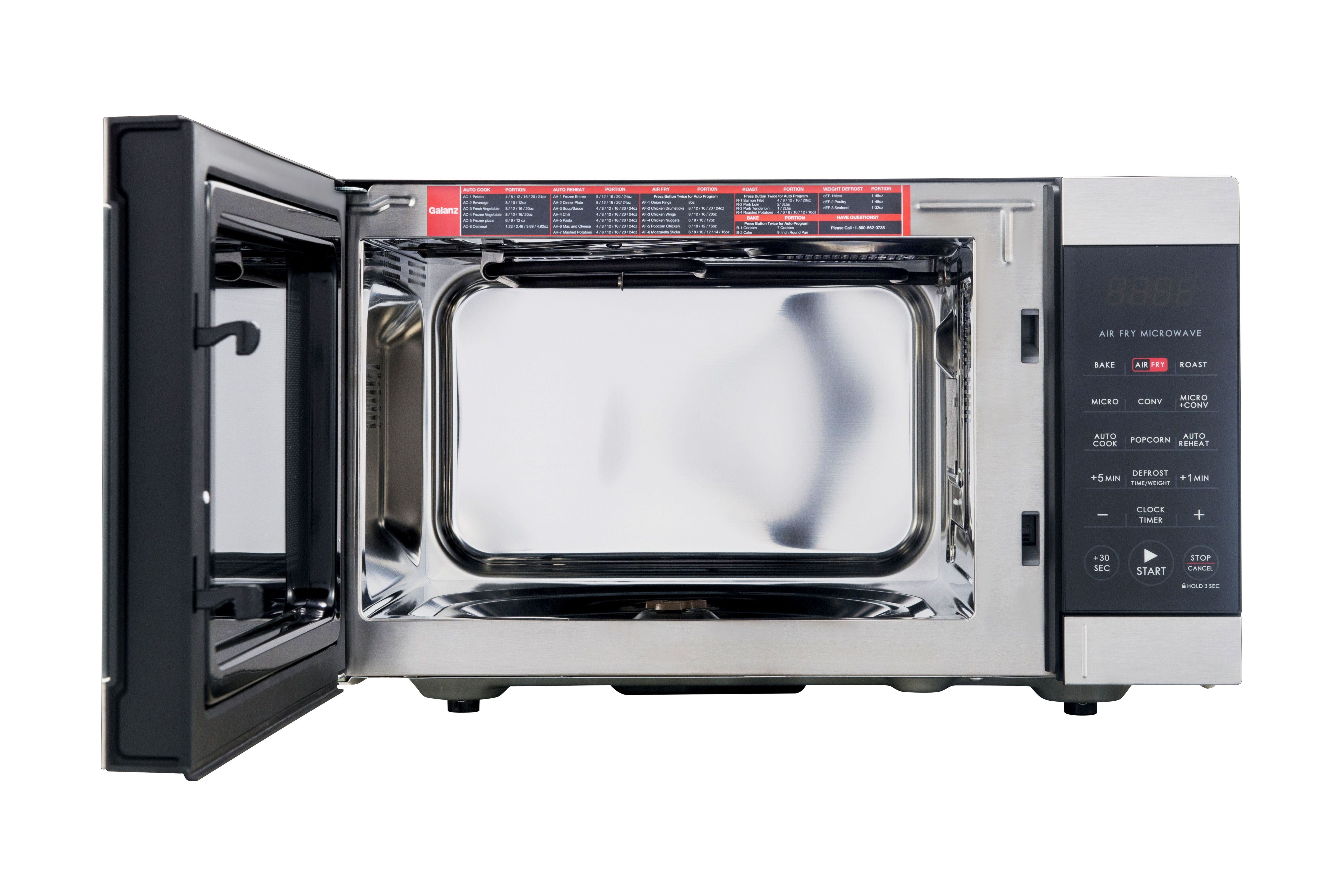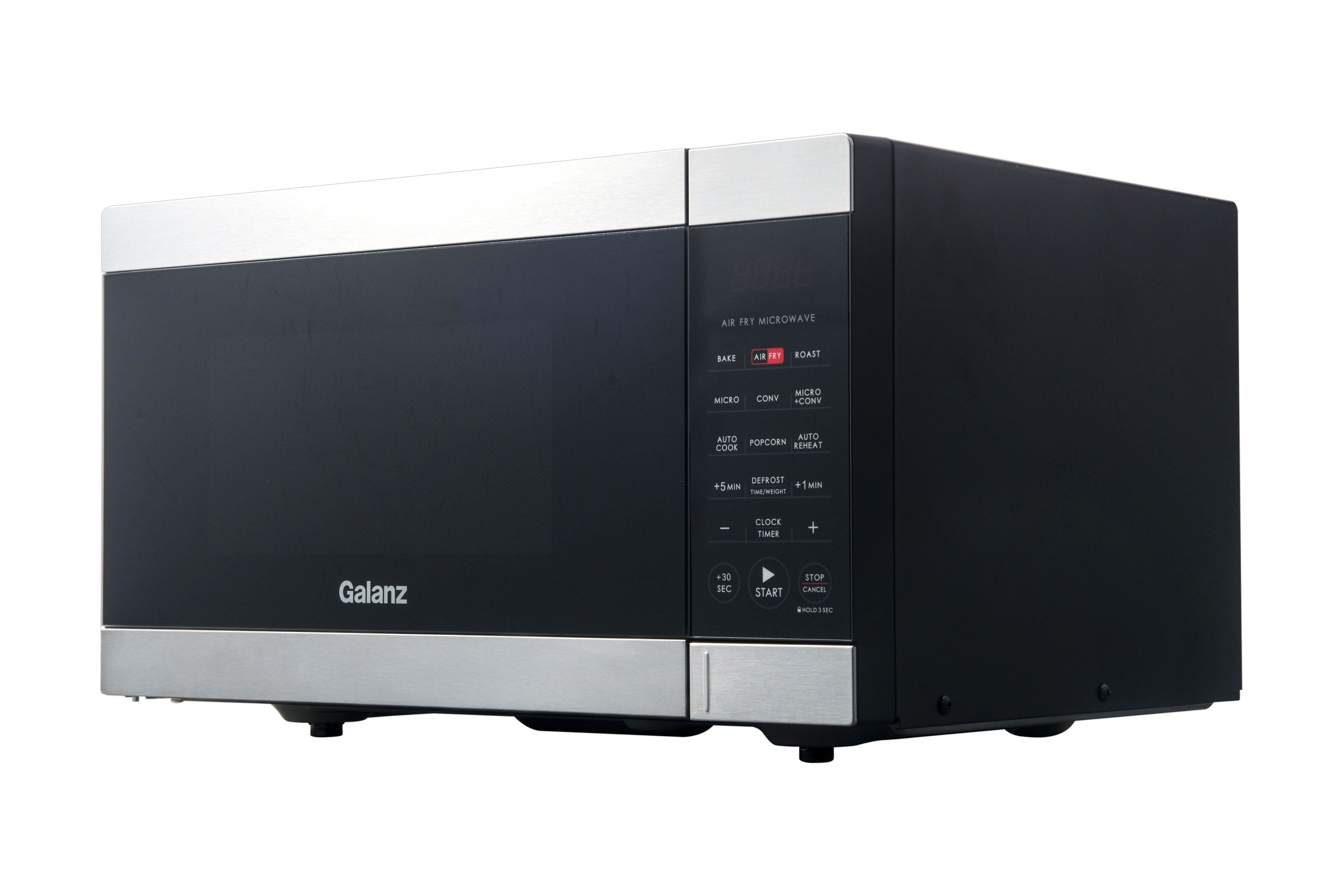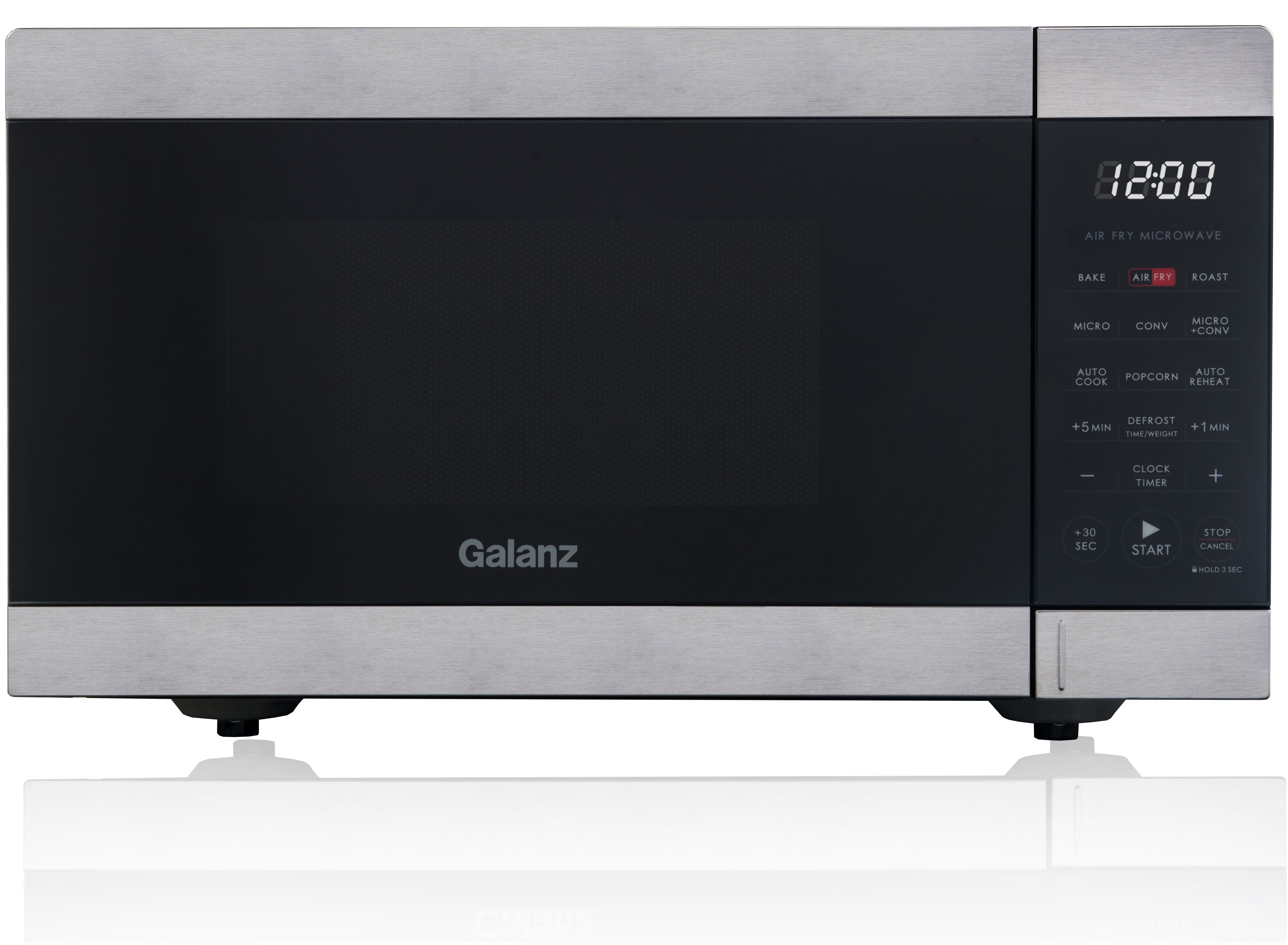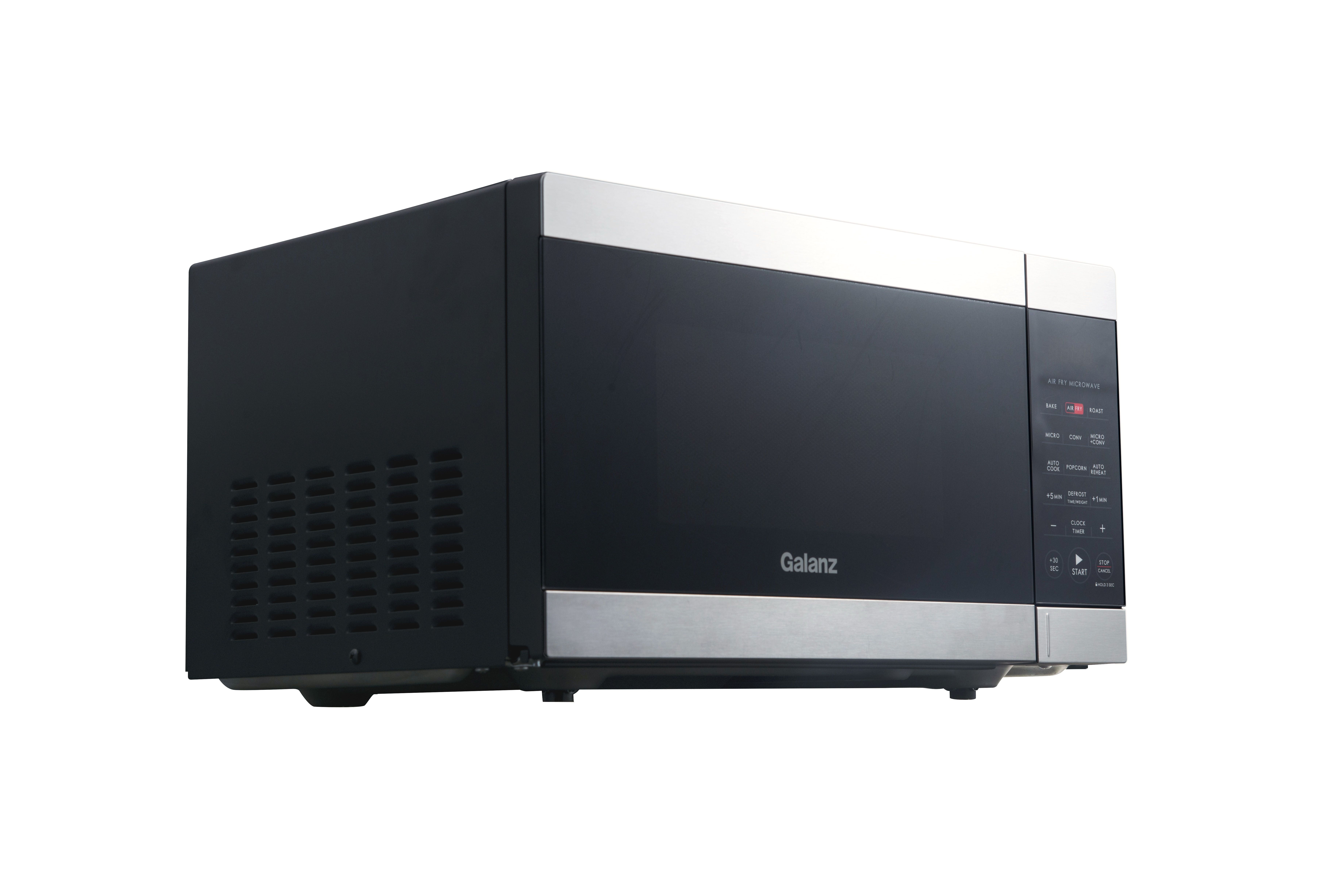 Galanz 0.9 Cu ft Air Fry Microwave Oven in Stainless Steel Multifunctional 3-in1 Air Fryer, Convection Oven and Microwave Saves countertop space Combi-Speed Cooking – combines convection cooking and microwave cooking together 6 Auto-Cook and 8 Auto-Reheat programs True Convection technology circulates heated air as food spins 360° 900 Watts of power Condition: New