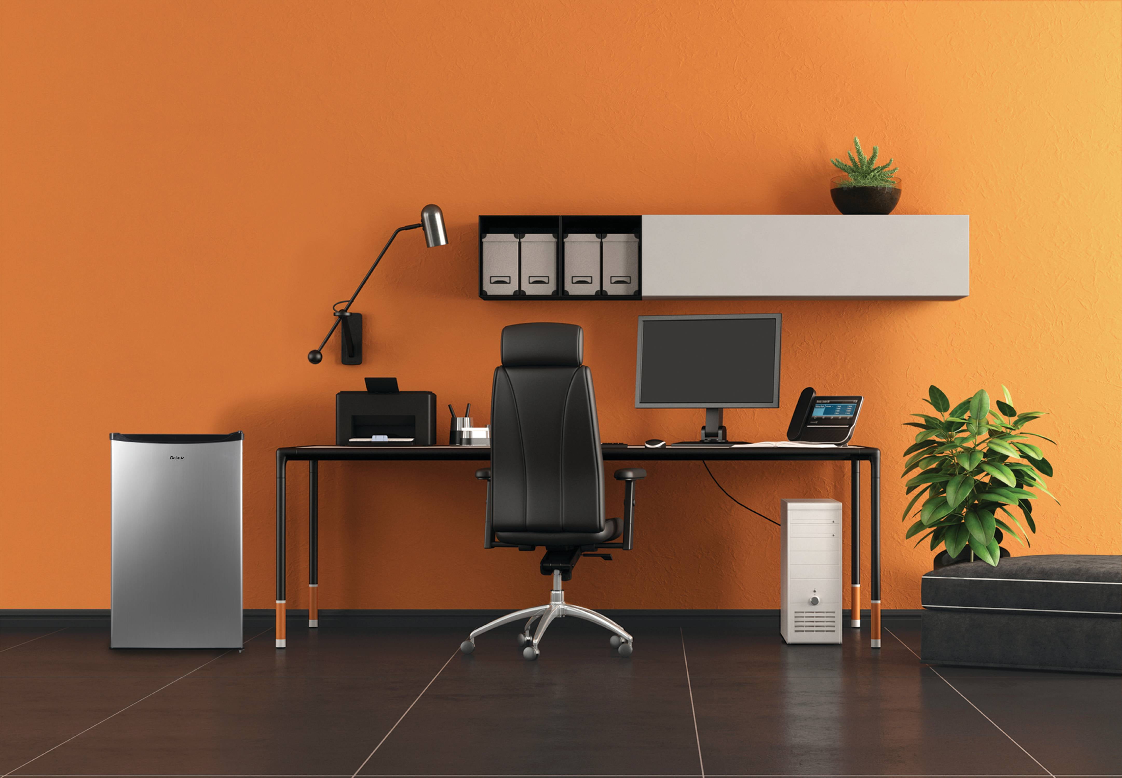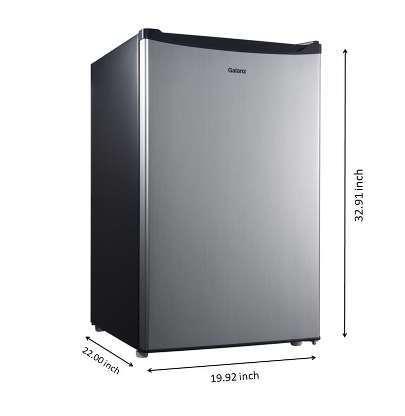 Galanz 4.3 Cu ft Single Door Mini Fridge, Stainless Steel Look, New, Width 19.12″