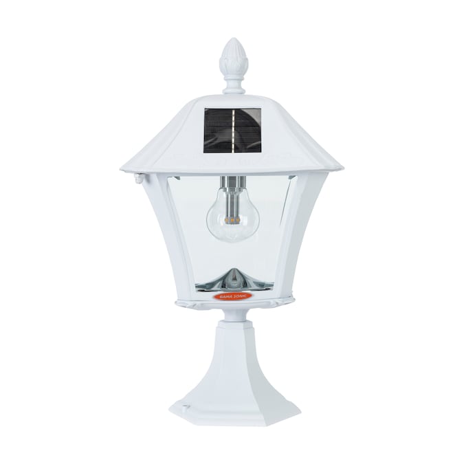 The Gama Sonic Baytown Bulb Solar Lamp is a natural alternative to electric or gas-powered outdoor lighting, featuring three mounting options: post mount that fits in 3” lamp posts, wall mount, or pier/flat mount. This outdoor solar light is a stylish addition to your outdoor space, lighting up walkways, stairways or wherever light is needed in your outdoor living space. Whether throwing a party at night, or spending time with your family outside, have peace of mind with quality solar-powered outdoor solar lights. This single outdoor solar light complements any country outdoor design with its rustic white color and beveled glass panes. Featuring cutting-edge GS solar LED light bulb technology, this outdoor solar solar light has an integrated 2W solar panel that charges during the day and lights up your outdoor living space for up to 12 hours at night. It automatically turns on at dusk after a full charge, and conveniently turns off at dawn. This solar lamp requires no electric wiring for installation and can be placed anywhere with ample sunlight. Enjoy energy and money savings year after year, letting the renewable energy source of natural sunlight do all the work for you. The Baytown solar lamp features weather-resistant cast aluminum construction, lasting for years to come without the need to spend money on a replacement.