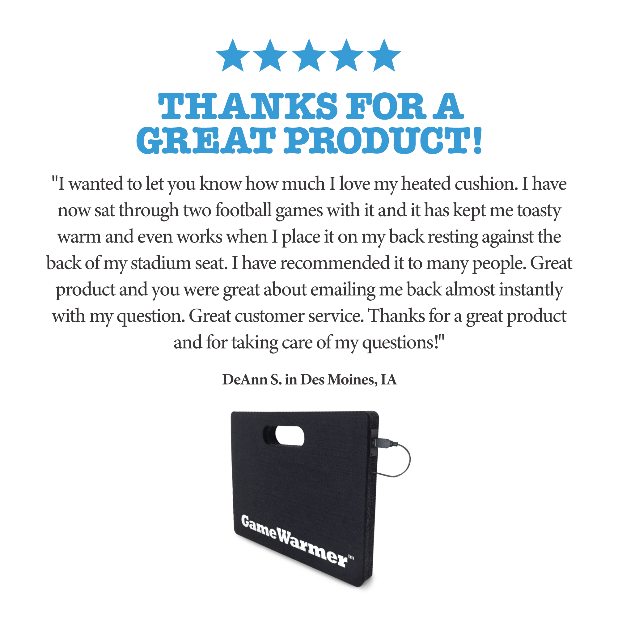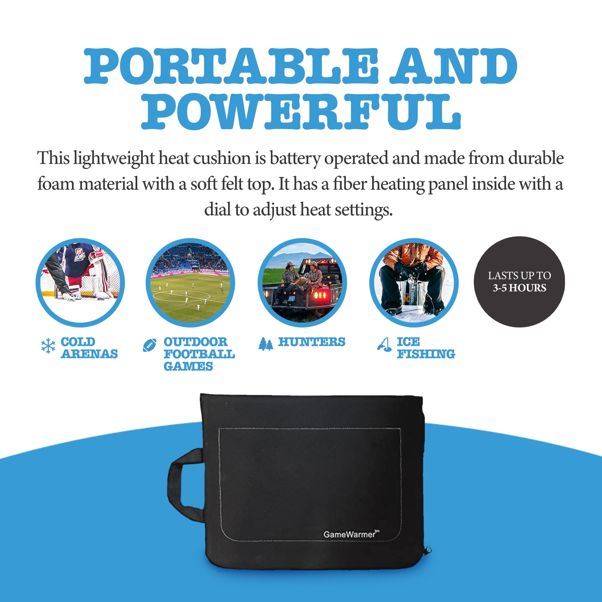GameWarmer: Rechargeable Battery Operated Heated Stadium Bleacher Seat cushion Lasts Up To 5 Hours and Also Recharges cell Phones (includes Battery)