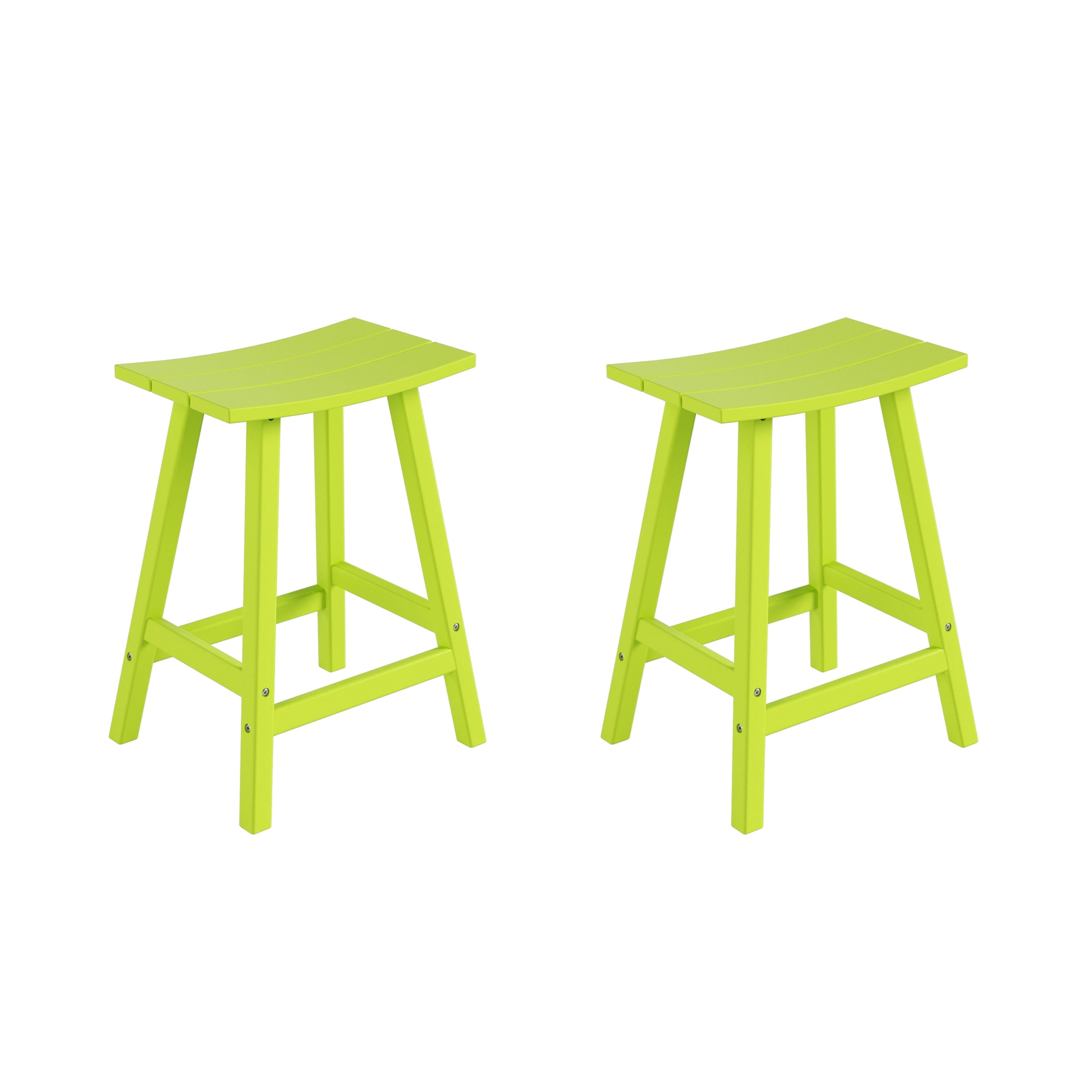 Classic Comfort and style combined into this Lime outdoor plastic Adirondack bar stool. Perfectly crafted saddle seat stool that features solid HDPE poly plastic construction that is made for daily outdoor use. This bar stool is made with UV and Weather resistant materials help keep its vibrant color for many years of use. The outdoor bar stool is a great way to add convenient seating to the kitchen, bar, outdoor patio, and outdoor living area. This set of bar stools is designed to add a classic Adirondack style to your home or outdoor living space. Combines perfectly with other Adirondack style furniture to help complete your outdoor set up in no time. The Stool features a slatted seats that will bring an elegant and comfortable style to any patio bar area. The UV and weather resistant plastic frame material gives them a lasting quality from season to season. UV protected to help keep its true color and weather resistant plastic is rust & rot resistant. Comfortable footrest and wide seating for ultimate comfort. A classic Adirondack Backless Barstools provide stylish comfort that is perfect for your backyard bar or lounge. Available in easy to match color options. Slide them up to a Patio bar or use at a kitchen countertop.