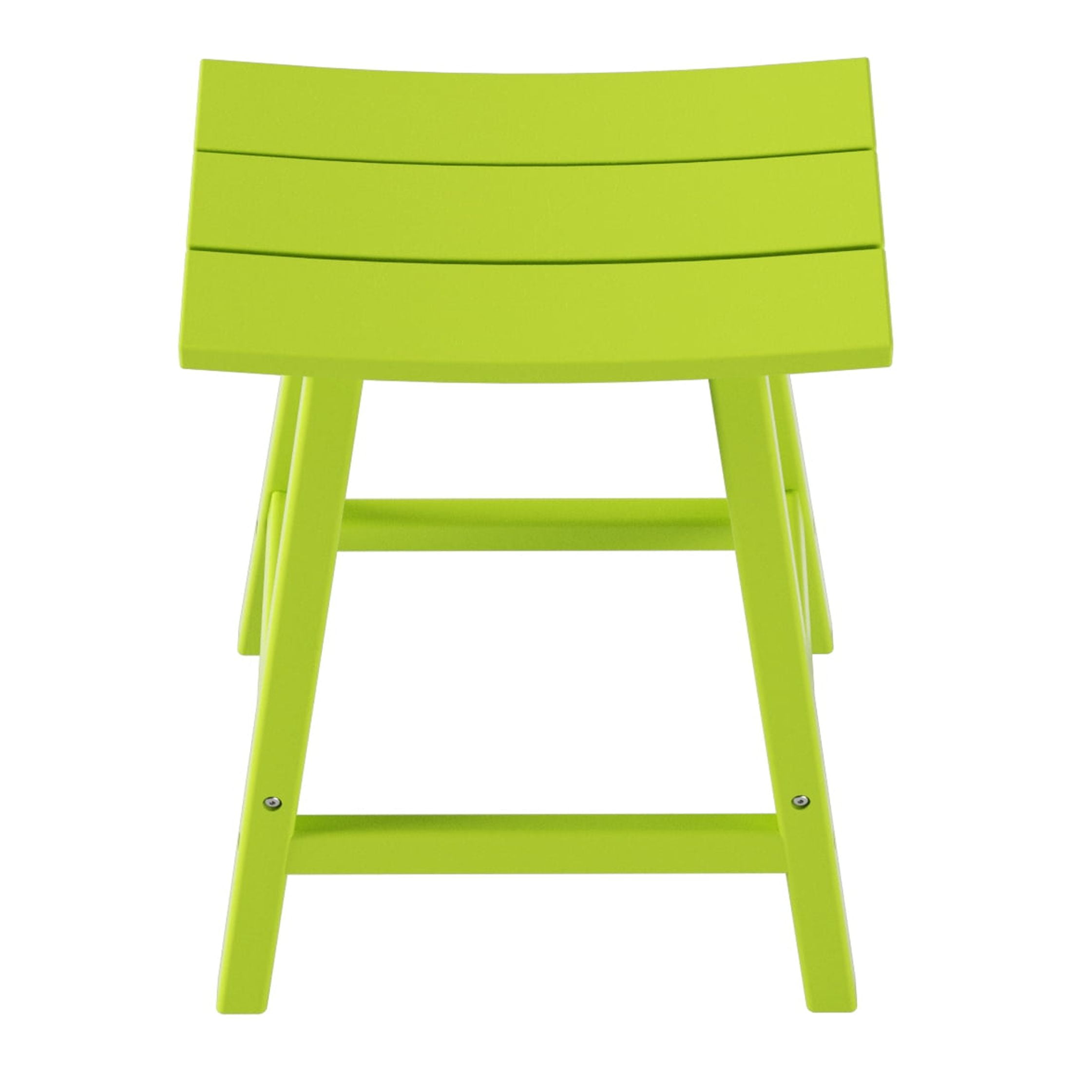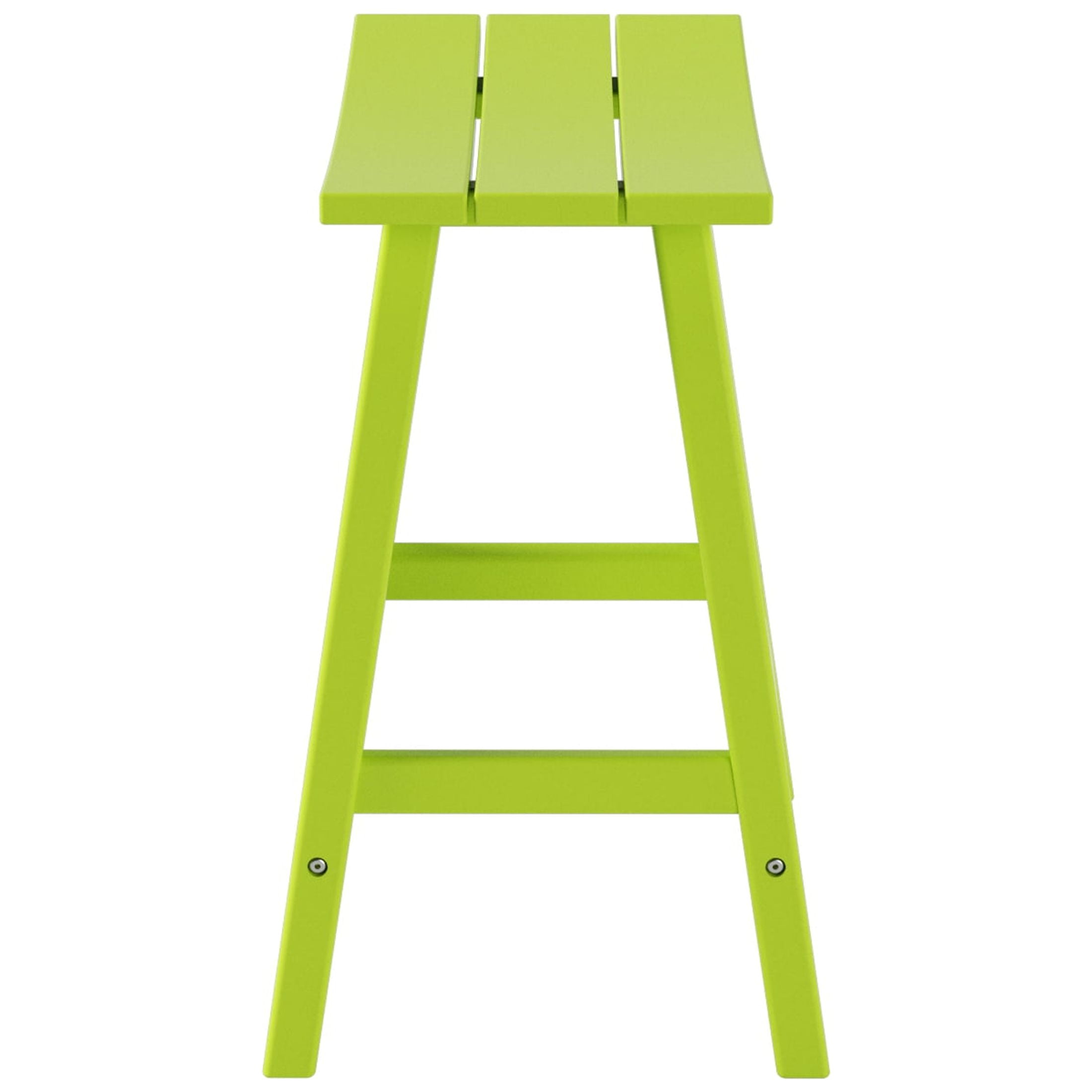 Made with Weather Resistant Materials Seat Height: 24 ” Inches Back Type: Backless Bar Stool Type: Plastic Outdoor Bar Stools Classic Comfortable Adirondack Design Constructed with a durable poly plastic frame Color: Lime Outdoor Bar Stools UV Protected to help keep vibrant color Resistant to rain, sun, snow, and dust Use: Outdoor Bar, Kitchen, Living Room, Bedroom, Restaurant Slatted Seat Footrest provides comfortable sitting experience Bar Stool Type: Outdoor Bar Stool, Patio Bar Stool, Outdoor Bar Furniture Rust Resistant Hardware Minimal Maintenance Needed Simple Assembly Required