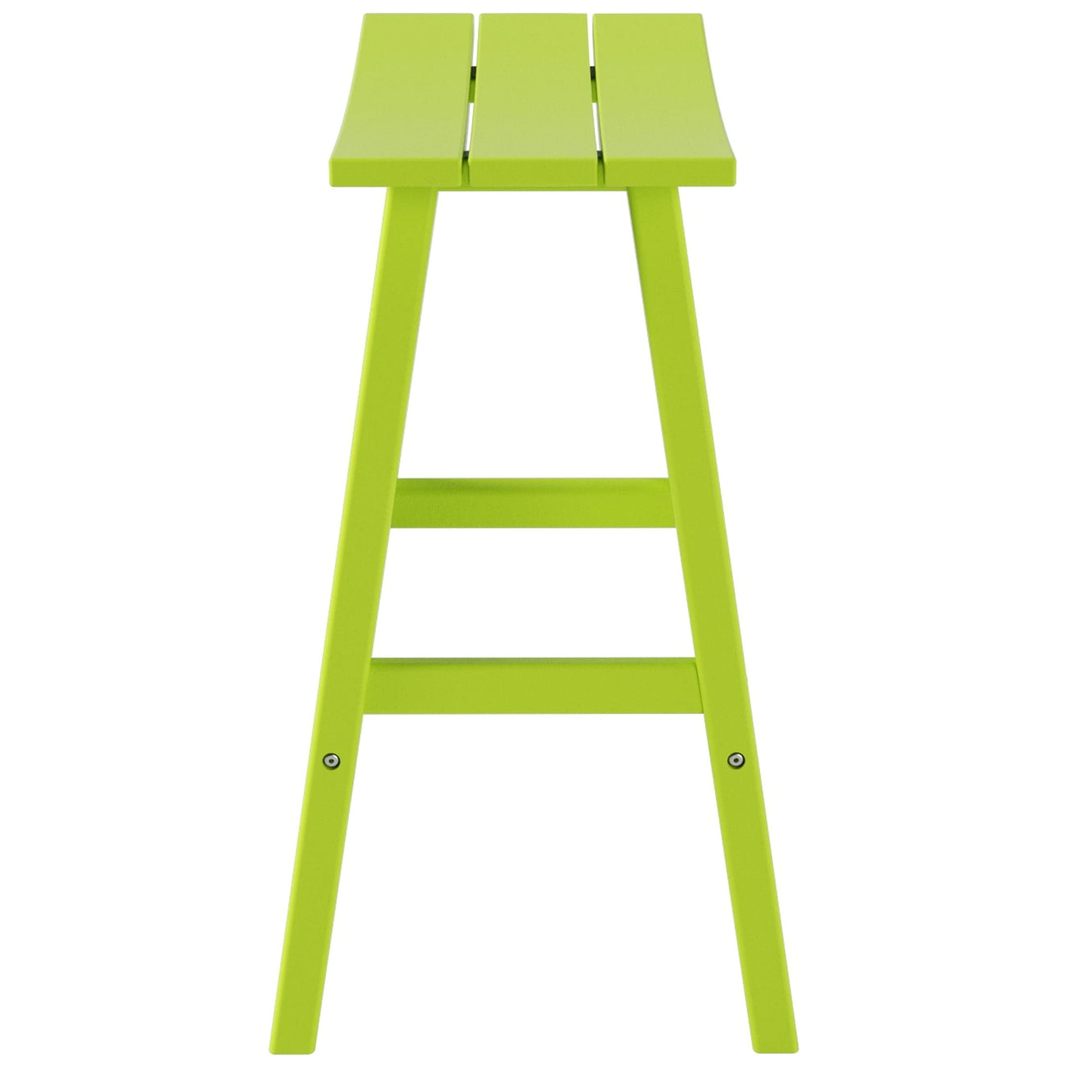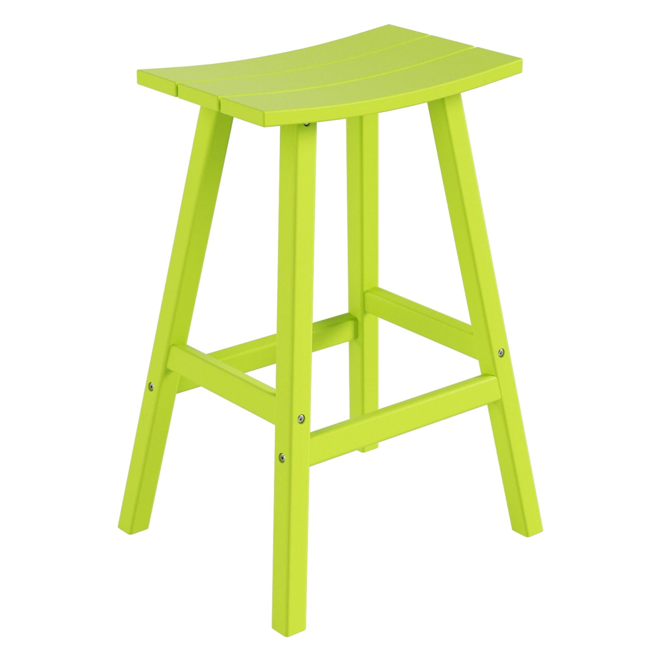 Made with Weather Resistant Materials Seat Height: 29 ” Inches Back Type: Backless Bar Stool Type: Plastic Outdoor Bar Stools Classic Comfortable Adirondack Design Constructed with a durable poly plastic frame Color: Lime Outdoor Bar Stools UV Protected to help keep vibrant color Resistant to rain, sun, snow, and dust Use: Outdoor Bar, Kitchen, Living Room, Bedroom, Restaurant Slatted Seat Footrest provides comfortable sitting experience Bar Stool Type: Outdoor Bar Stool, Patio Bar Stool, Outdoor Bar Furniture Rust Resistant Hardware Minimal Maintenance Needed Simple Assembly Required