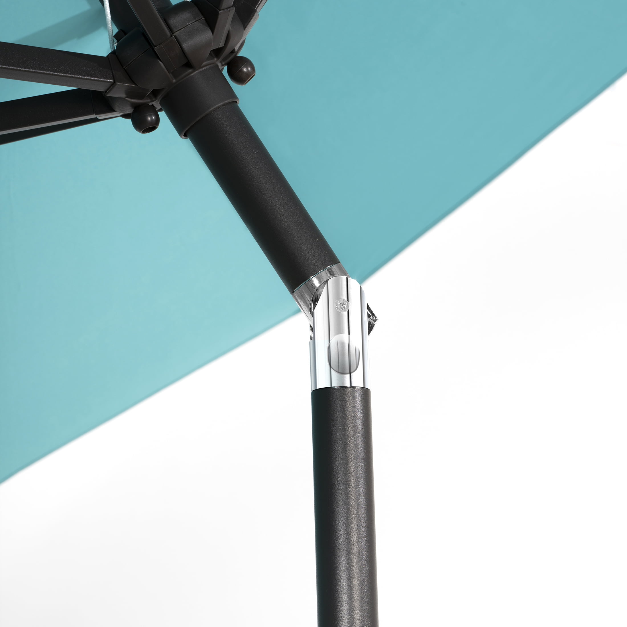 UV Weather & Water Resistant Polyester Canopy Manual Push Button Tilt to help cover the sun in any position Easy to use Crank Lift Mechanism Air Vented Canopy designed to facilitate Air Flow & Maximum Comfort Durable Powder Coated Pole and Steel Canopy Ribs Available in Multiple Color options Color: Turquoise Umbrella Recommended Location: Patio & Garden, Outdoor Shade, Outdoor, Backyard, Lounge, Restaurant, Poolside Style: Modern, Classic, Traditional, Beach Minimal Maintenance Simple Assembly Required