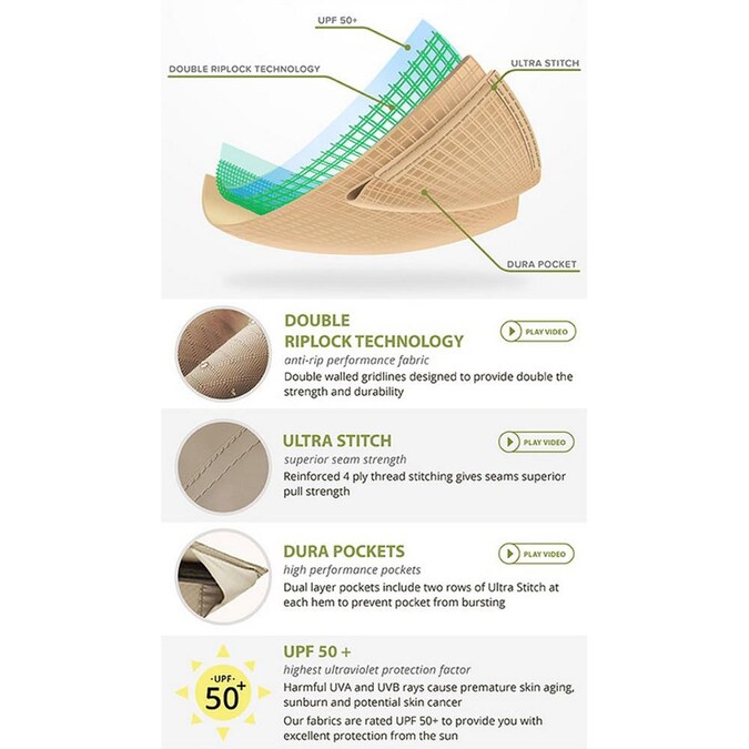 - Riplock performance fabric, ultra stitch and durable pocket technology