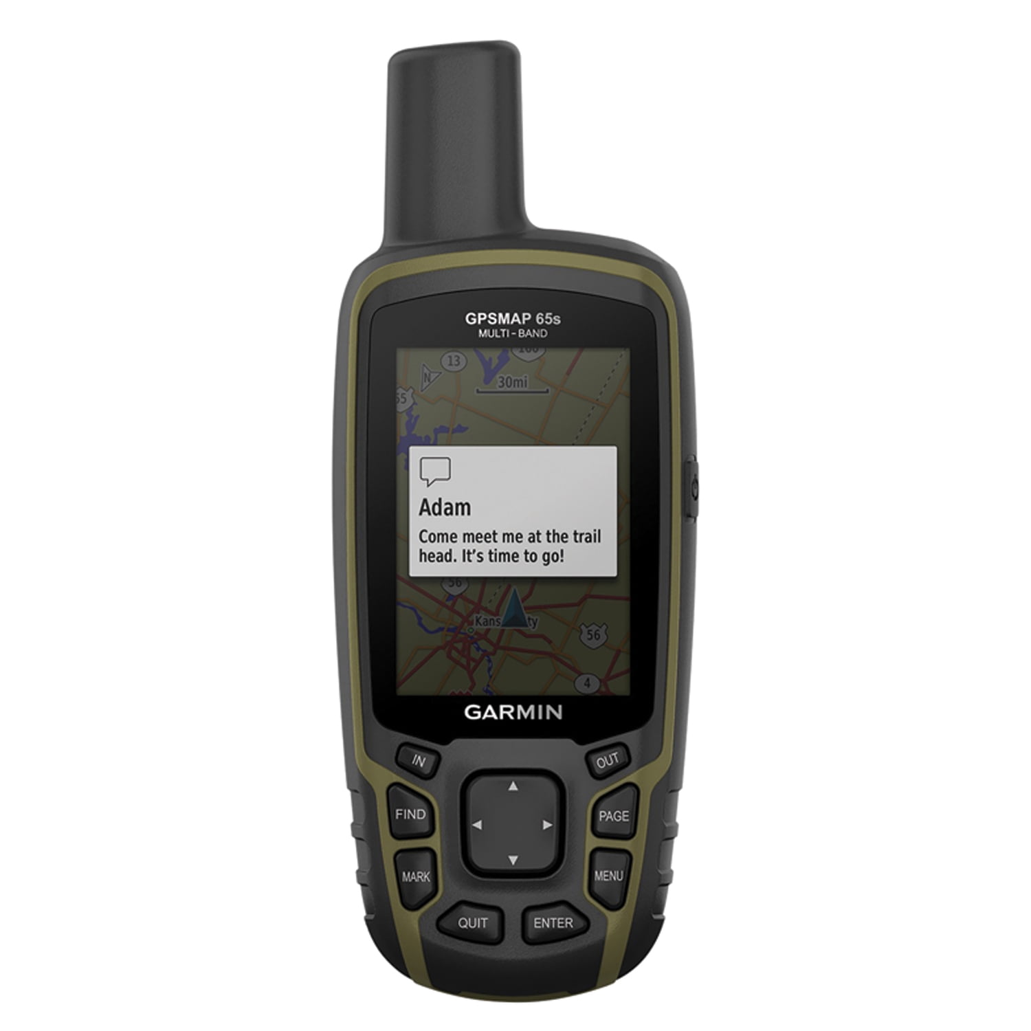 GRGPSMAP65SGPSMAP 65sUSB cableCarabiner clipDocumentationFind your way in this big, wide world with GPSMAP 65s. This rugged handheld offers multi-band technology