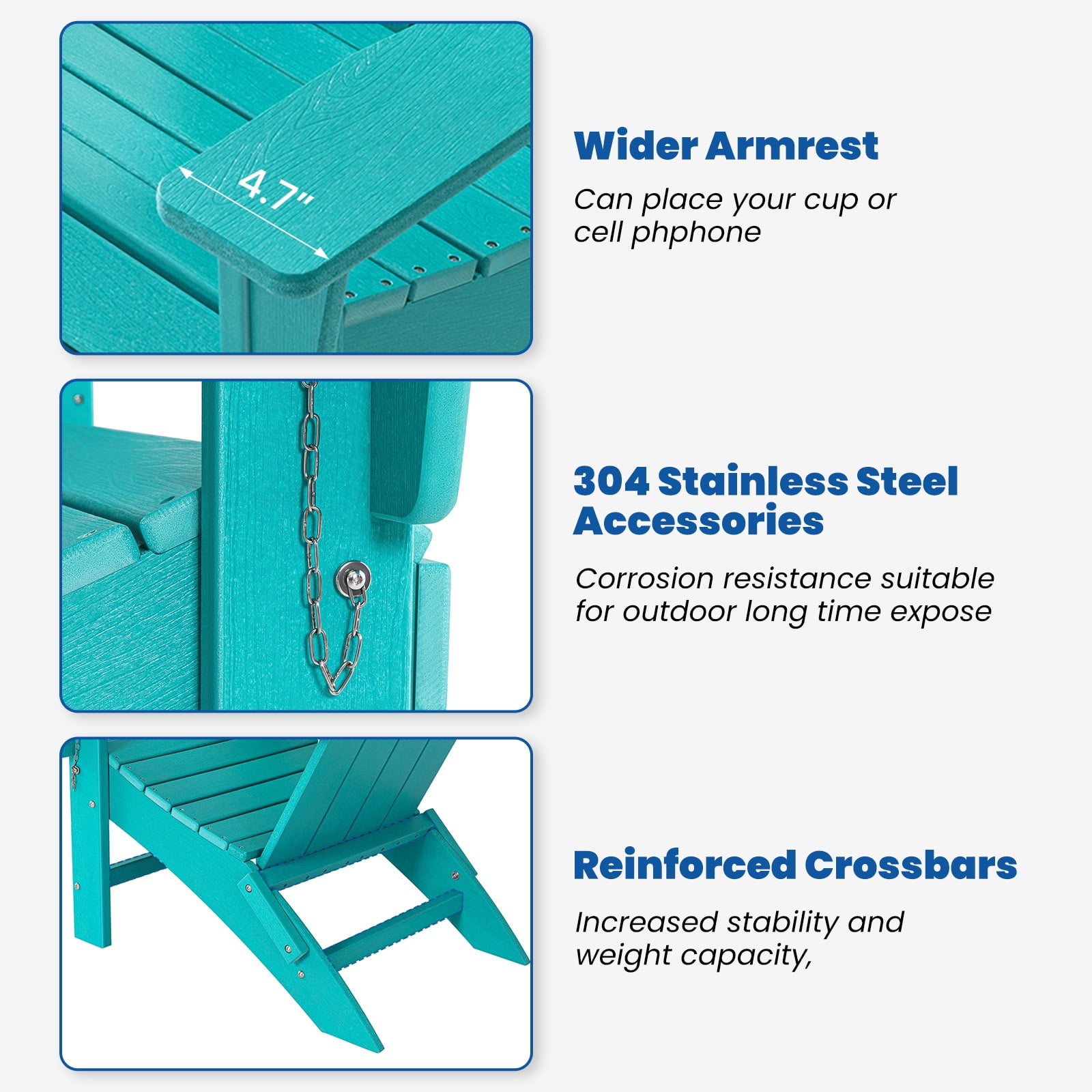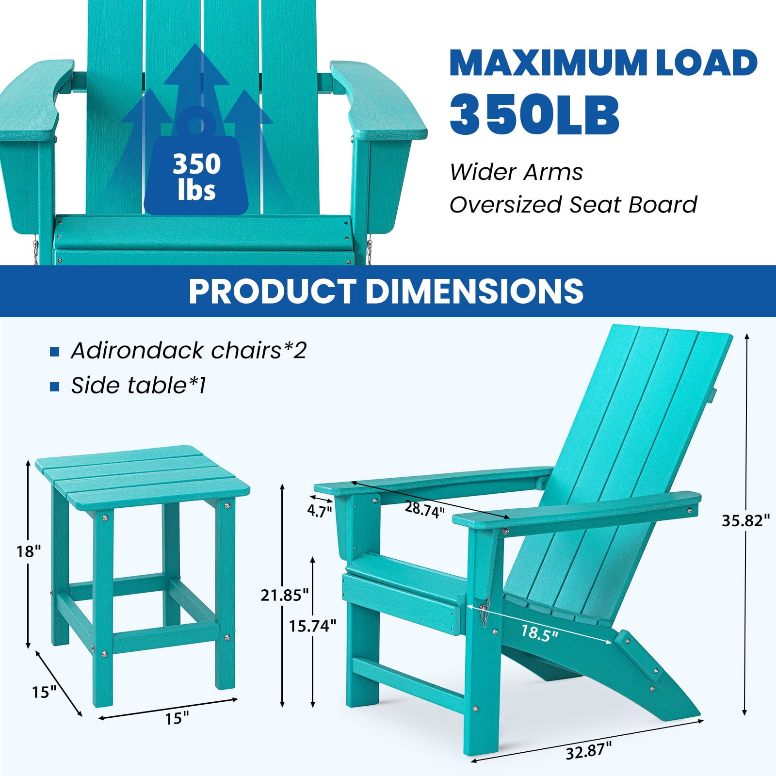 ▶KEY FEATURES ????Weatherproof Durability for Year-Round Use Built from rugged HDPE, Garpans adirondack chairs stand up to rain, snow, and sun without fading, cracking, or splintering. Ideal for front porches, fire pit setups, or poolside lounging, they offer maintenance-free resilience—just wipe clean with soap and water. ????Portable & Space-Saving Design Foldable for easy transport and storage, these chairs are perfect for camping trips, beach days, or small balconies. Their lightweight, collapsible build lets you take comfort anywhere—no hassle, even in tight outdoor spaces. ????Classic Comfort Meets Timeless Style Sink into the 106° angled backrest and deep seat with wide armrests, designed for hours of relaxed reading, sunbathing, or chatting with friends. The smooth, classic design adds natural charm to gardens, patios, or lakeside docks, blending seamlessly with any outdoor aesthetic. ????Versatile Seating for Every Occasion Whether around a backyard fire, on a deck, or at an outdoor dining table, Garpans adirondack chairs adapt to any space. Their timeless appeal and sturdy build make them a go-to for casual gatherings, quiet mornings, or evening stargazing—your all-in-one outdoor seating solution. ????Perfect for Pairing & Sharing This set of two foldable adirondack chairs and a matching table is made for intimate outdoor gatherings. The table holds snacks and drinks, while the chairs’ easy-to-fold design simplifies storage. Whether sipping morning coffee together or sharing stories around a fire pit under the stars, the combo lets you relax and connect effortlessly. ▶SPECIFICATIONS Brand: Garpans Material: HDPE Weight Capacity: 350 lbs Arm Width: 4.7 inch Seat Width: 28.74 inch Seat Depth: 18.5 inch Product Weight: 85 lbs Product Dimensions: 32.28″ × 20.47″ × 11.42″ ▶PRODUCT NOTES 1. Slight variations of 0.5-1 inch may occur due to hand measurement. 2. Colors may appear slightly different depending on screen calibration. ▶CUSTOMER SUPPORT Our customer care team is available 24/7 via email or chat. Rest assured, we’re committed to providing prompt solutions and personalized assistance for any product-related inquiries.