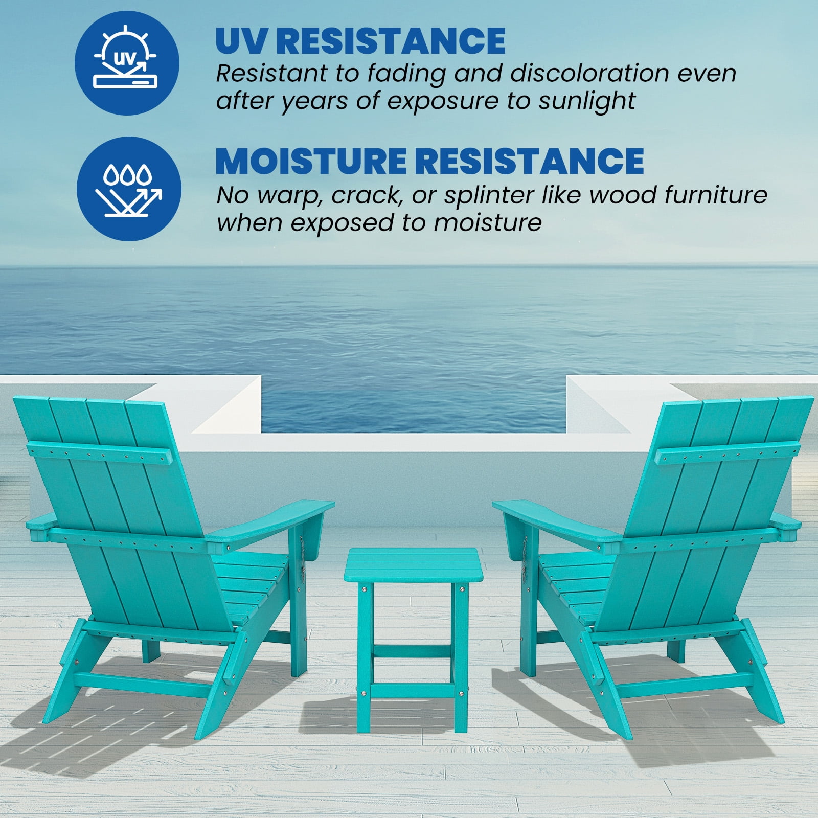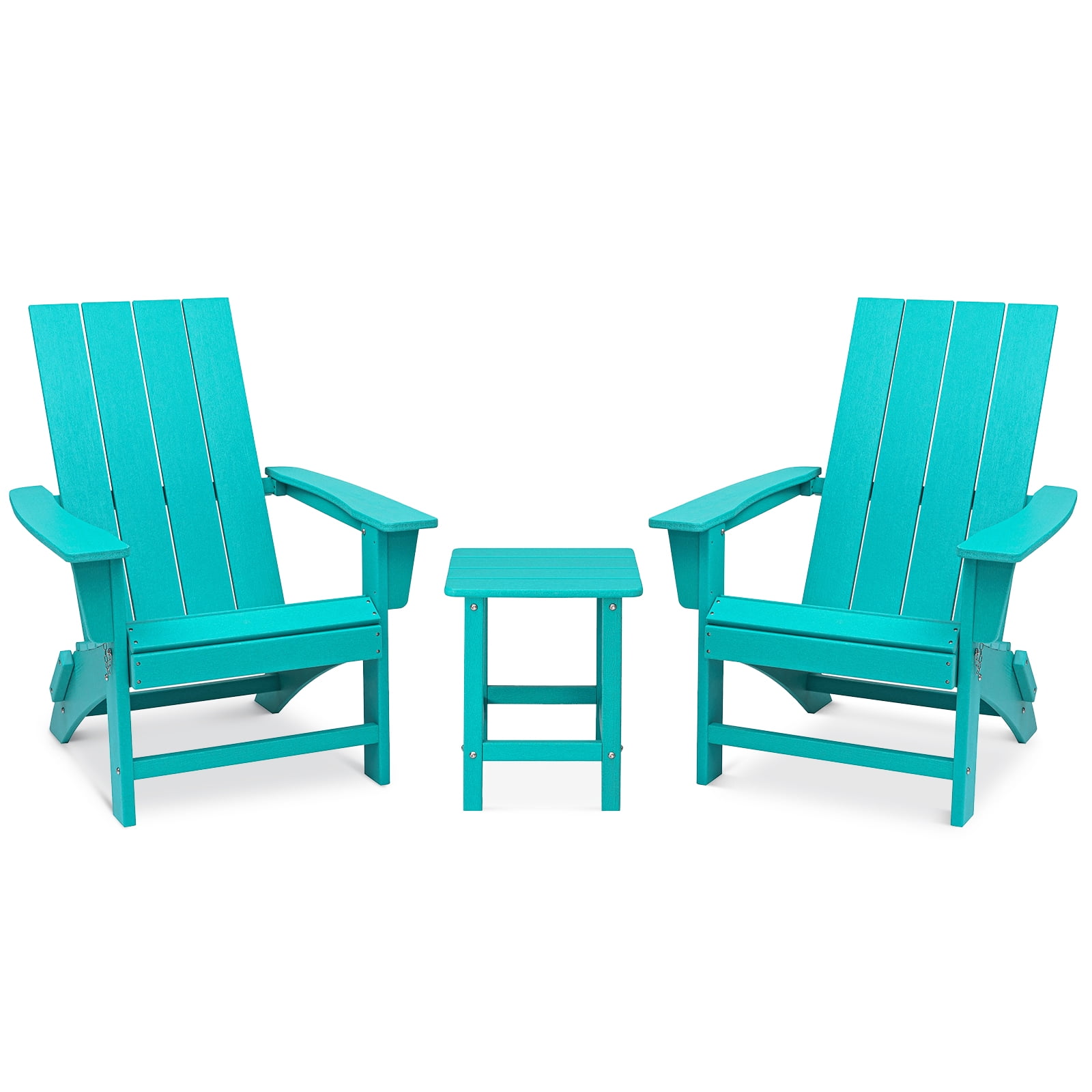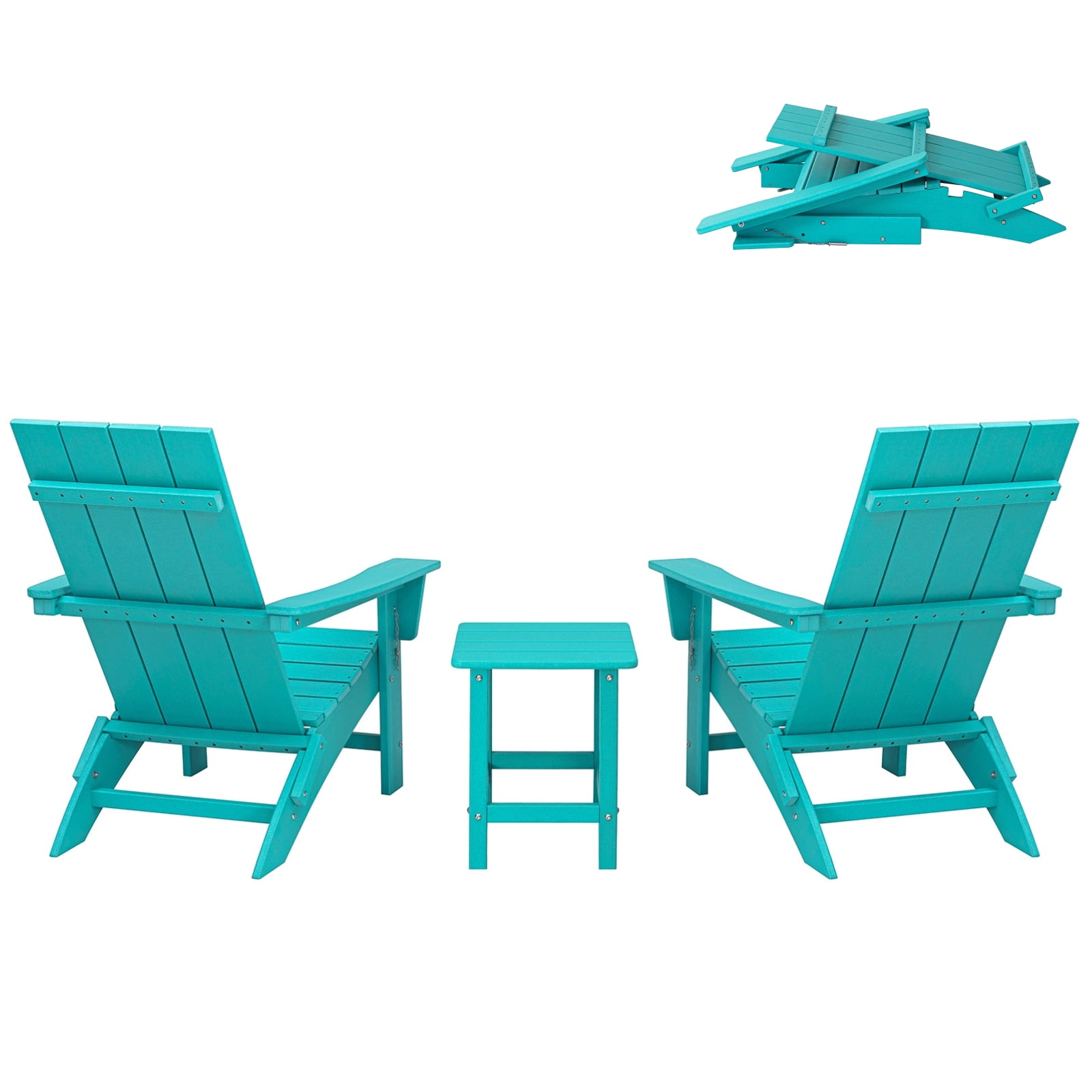 Garpans Folding Adirondack Chair Set with Side Table HDPE All Wheather Outdoor Foldable Adirondack Chair Table Set Patio Chairs with Table for Outside Garden Pool Front Porch Deck Fire Pit