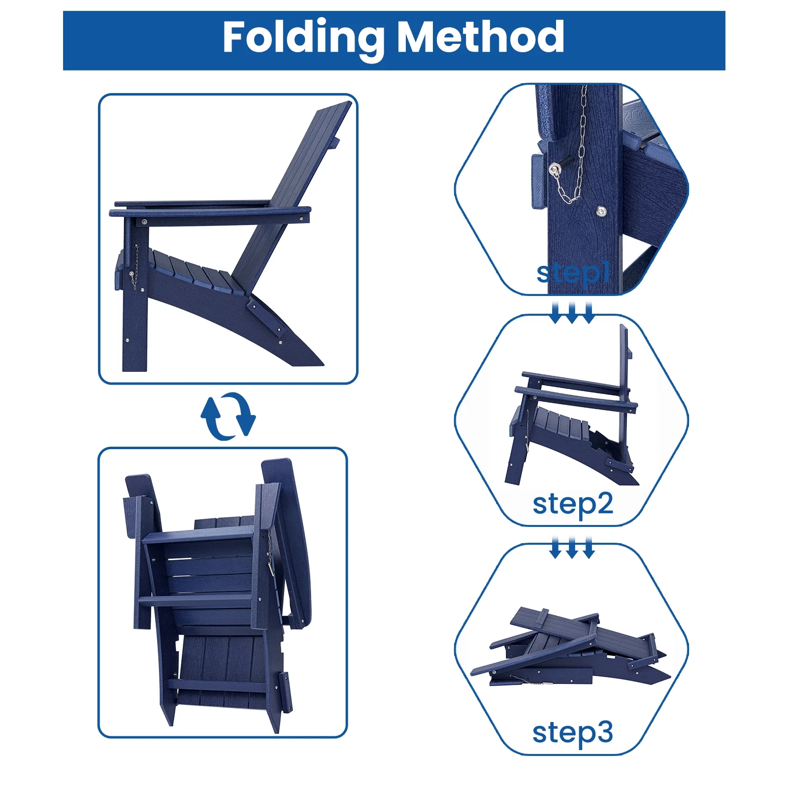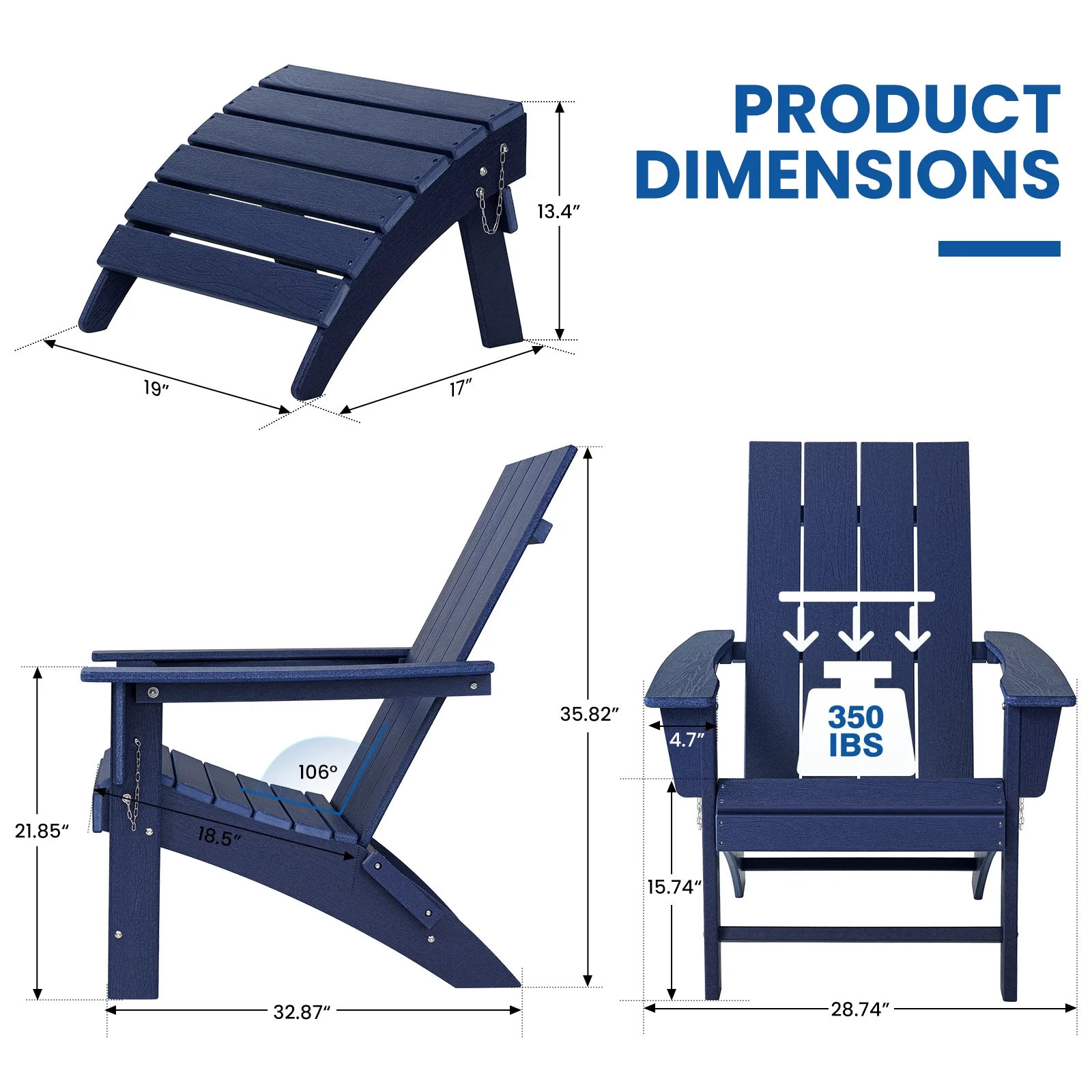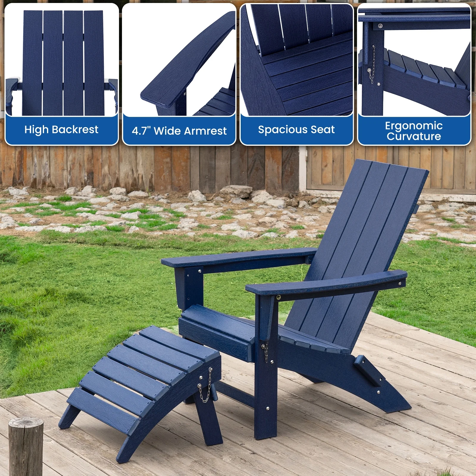 Garpans Folding Adirondack Chair with Ottoman HDPE All Weather Outdoor Foldable Adirondack Patio Chair with Footrest for Outside Pool Garden Deck Front Porch Fire Pit