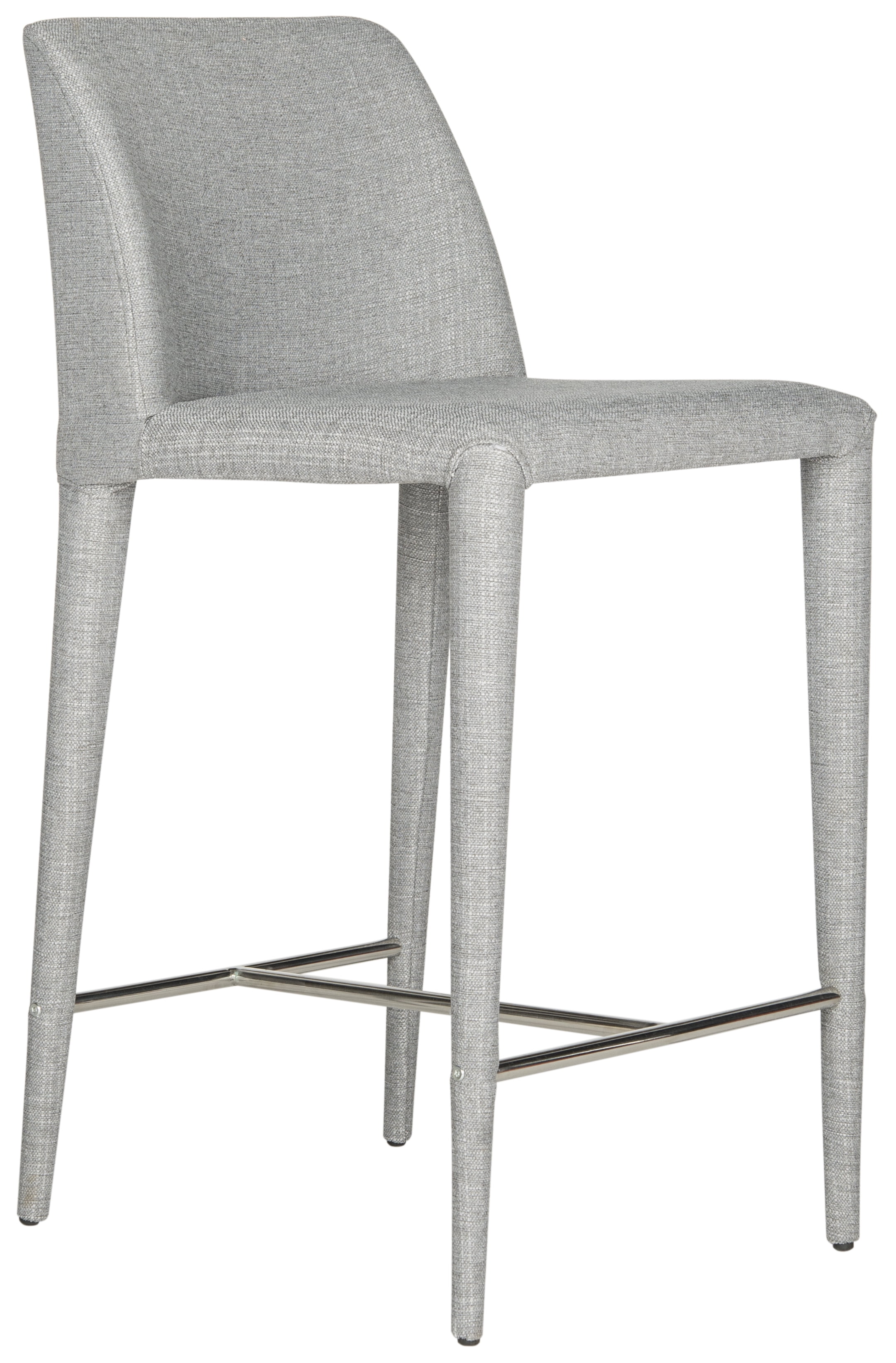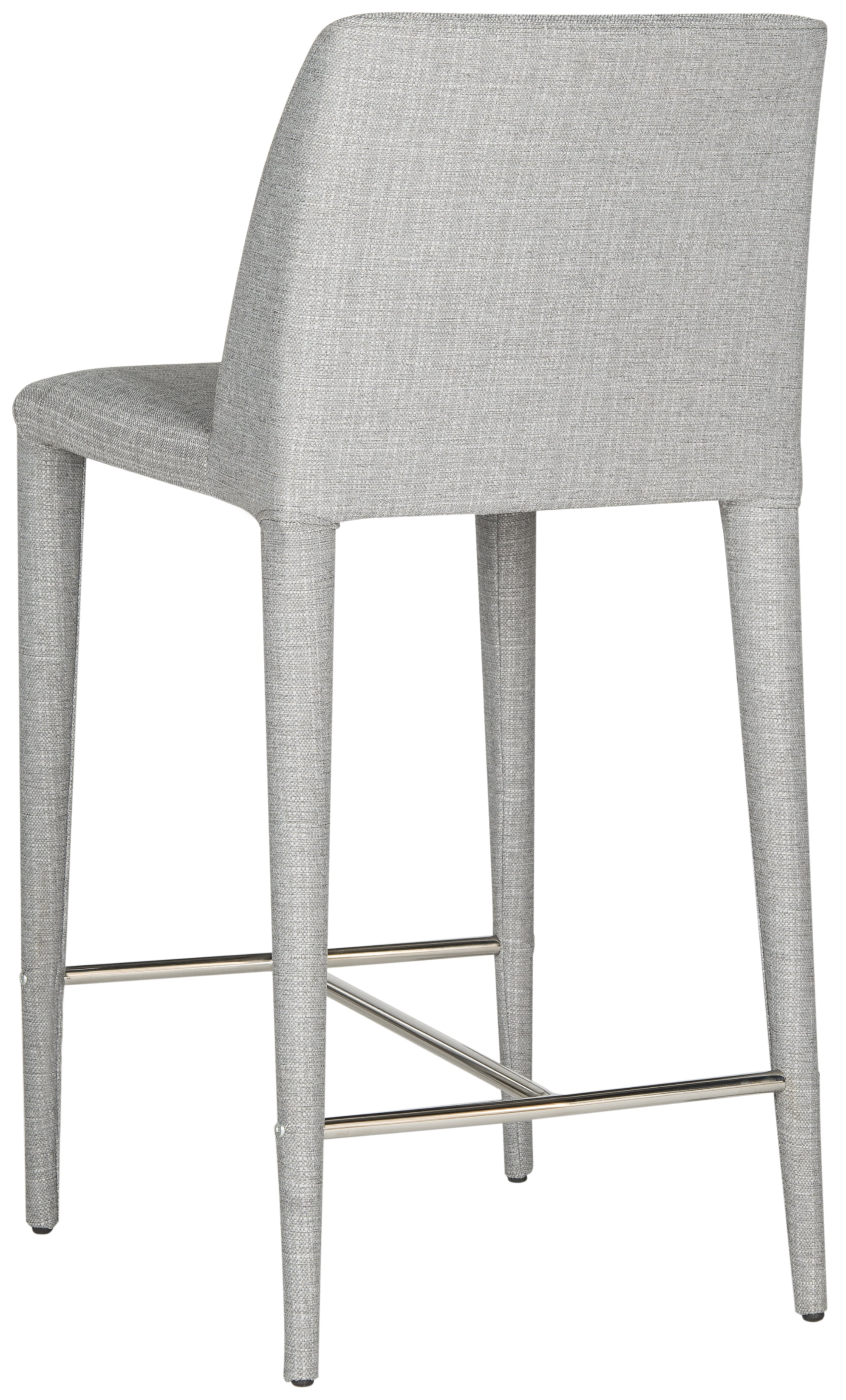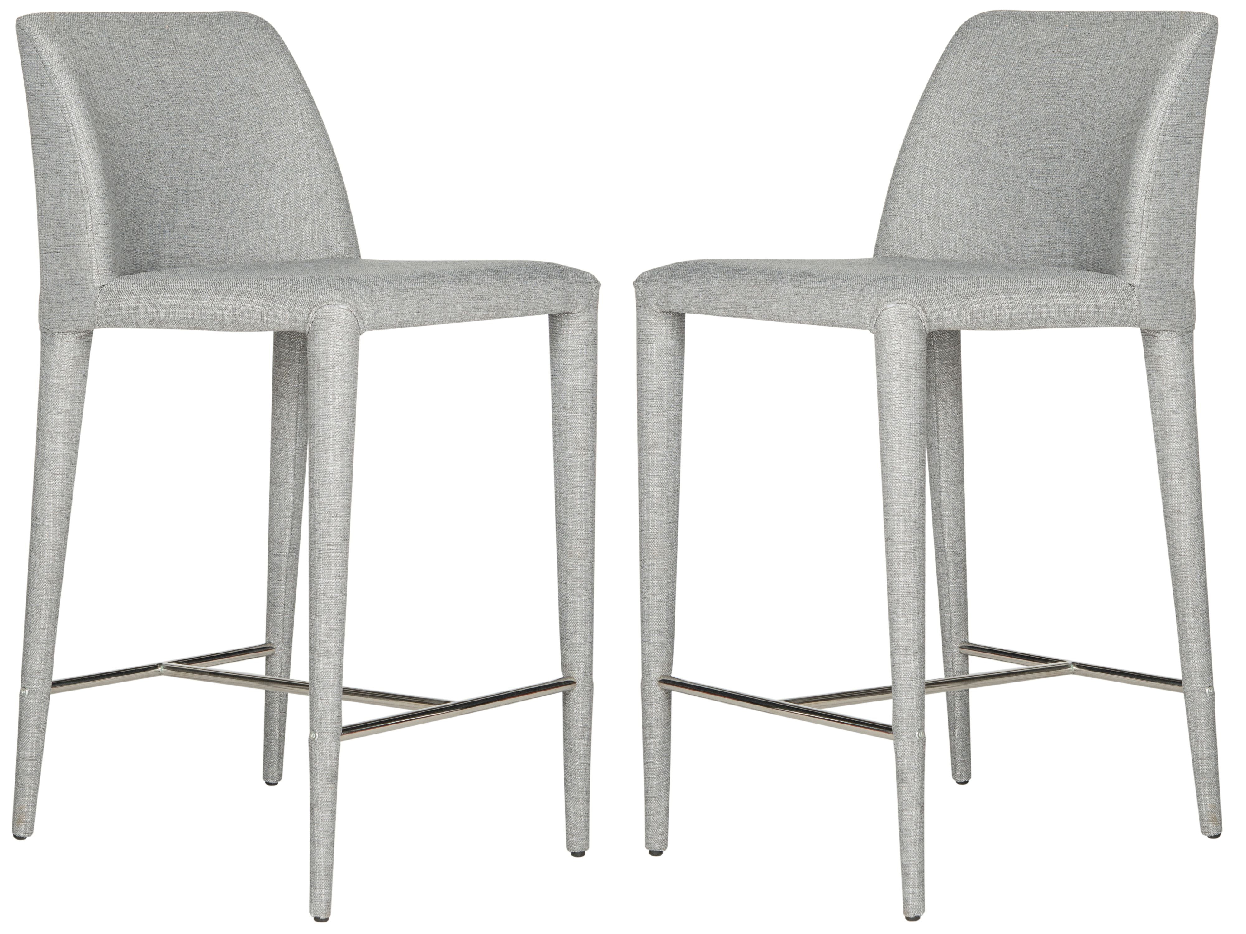 Contemporary design adds a chic look to your home Durable iron frame for long lasting longevity No assembly needed Color: Grey Linen/Chrome Item Dimension: 22.6 in. W x 17.4 in. D x 36.2 in. H Upholstered with 100% Linen Seat Dimension: 17.1 in. W x 17.1 in. D x 26 in. H Backrest Height: 12 in. Footrest Height: 18.1 in. Sold in a set of 2 Item Weight: 28.6 lbs. Weight Capacity: 275 lbs. each chair Accessories in life style photo(s) not included Please note: The images and product dimensions on our website are as accurate as possible. Due to differences in computer monitors, some furniture colors may vary slightly. Lengths and widths may vary from the published dimensions. We do our best to provide you with an exact measurement, but please be advised that some variation exists. To prevent overall soiling, frequent vacuuming or light brushing is recommended. Cushions and pillows should be turned on a weekly basis. Down-filled cushions should be brushed rather than vacuumed. Spot clean, using a mild water-free solvent or dry cleaning product. Only a professional cleaner should undertake a complete overall cleaning. The use of steam or water-based cleaners may cause excessive shrinking or staining.