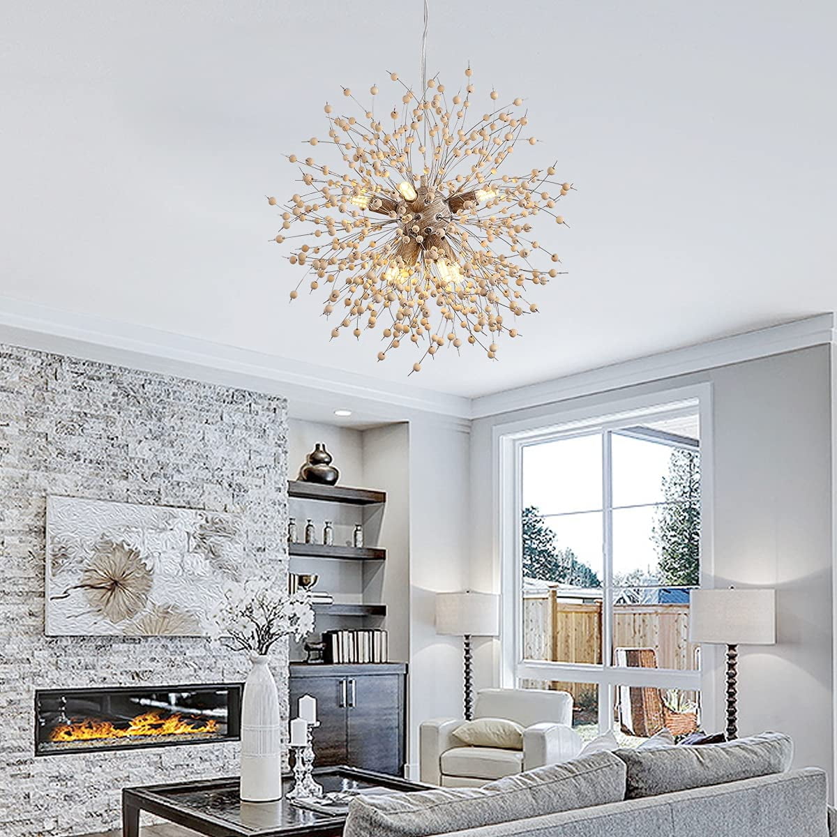 Garwarm Firework Chandeliers Lamp, Modern Sputnik Chandelier Pendant Lighting, 8-Lights Dandelion Ceiling Hanging Light Fixture for Living Room Dining Room Bedroom Kitchen Foyer(G9 Bulb Base)