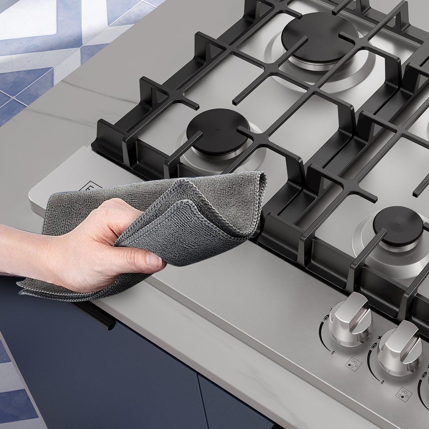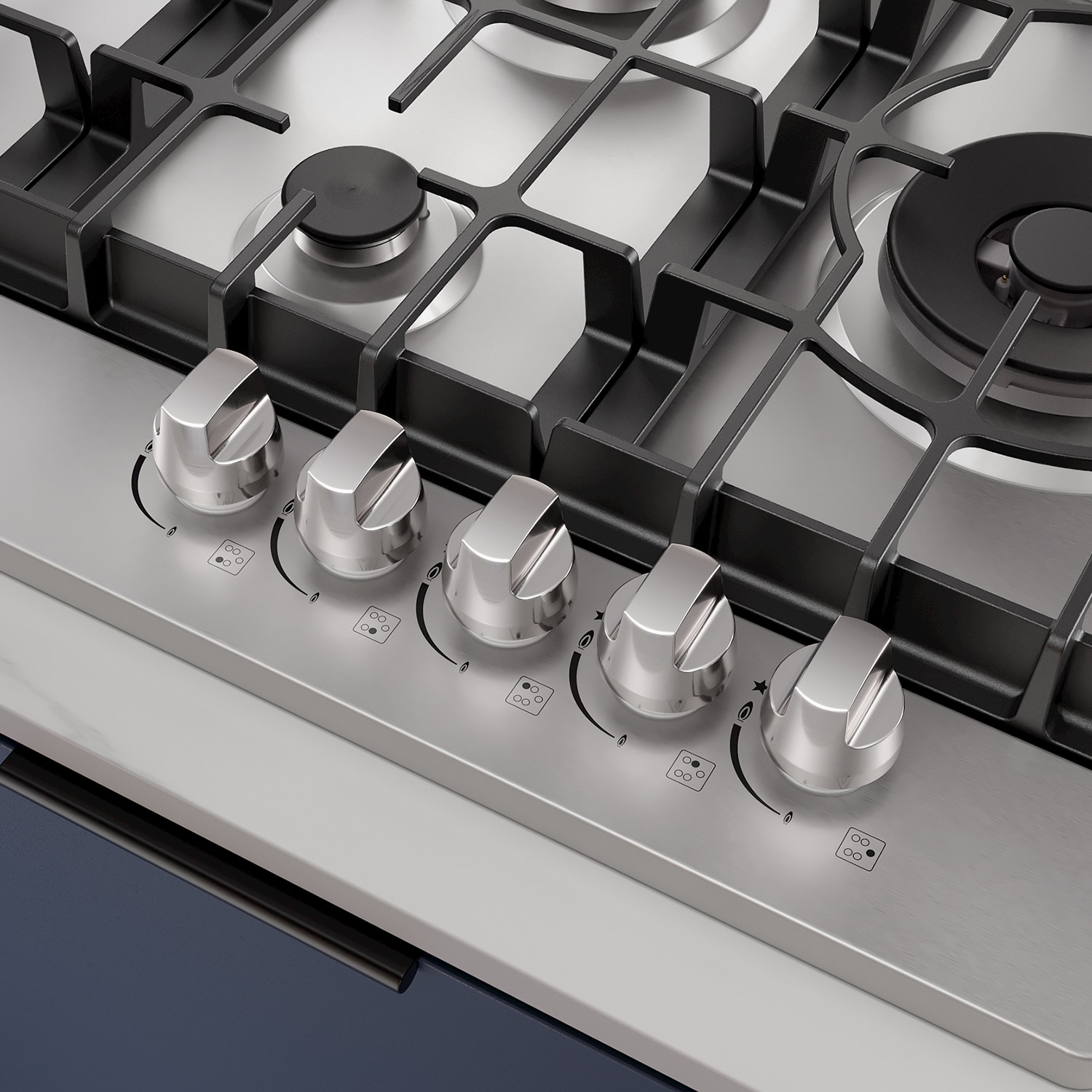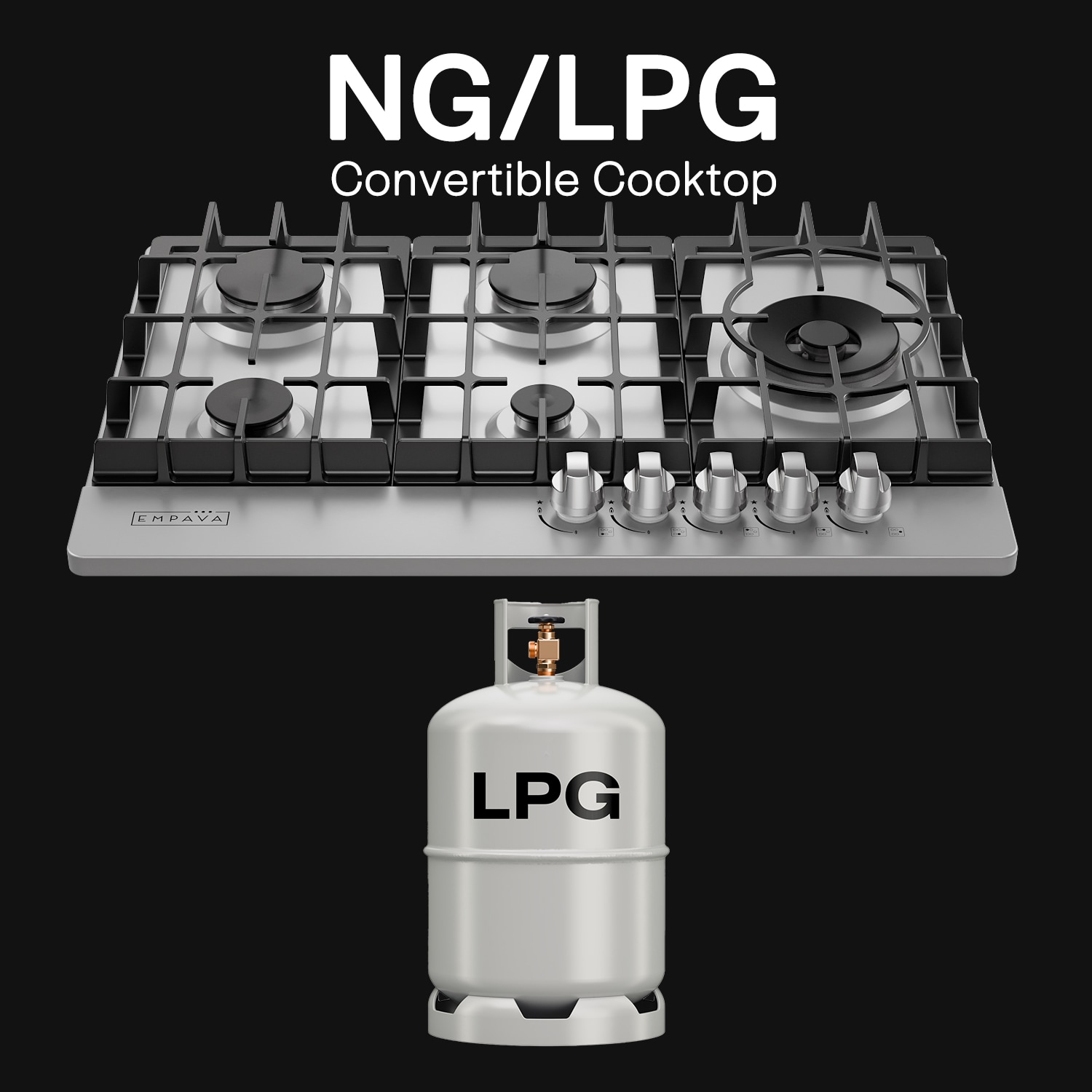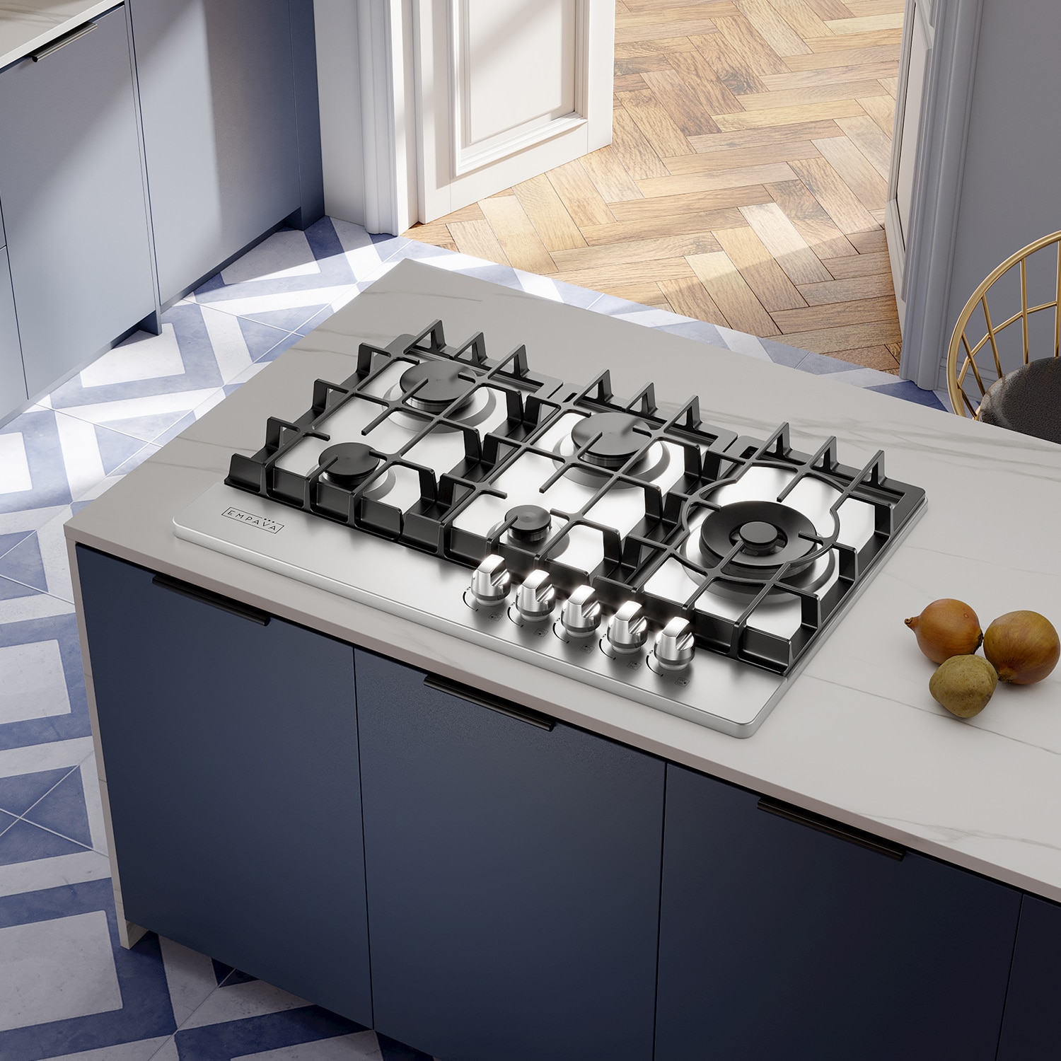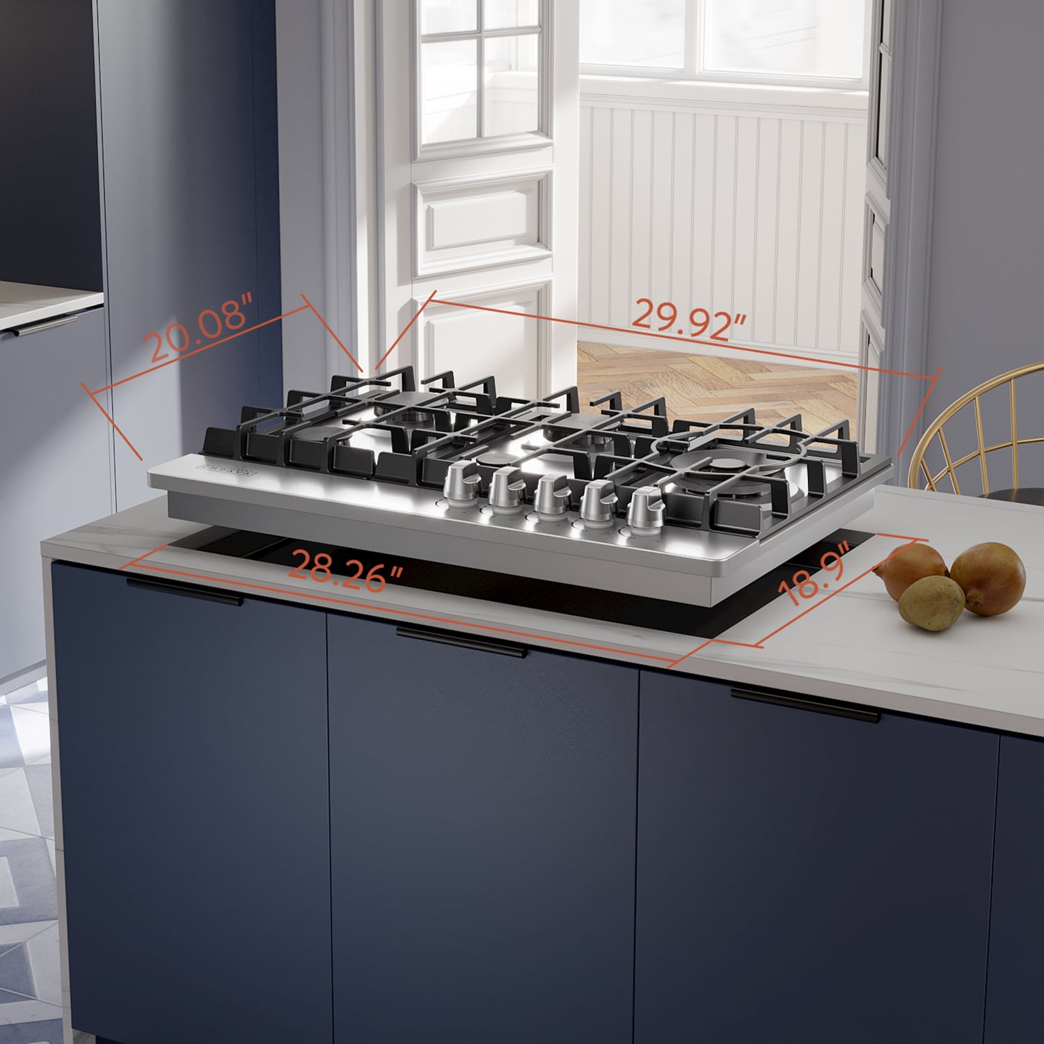 The Empava 30-inch gas cooktops with the CSA certified is a perfect combination of style and practicality. Constructed with 18-gauge stainless steel for exceptional resistance to corrosion and rust. Handcrafted brushed satin finish to prevent dents and scratches for long lasting use in your busy kitchen. The gas cooktops feature commercial-grade components (1x 18,000-BTUs, 2x 12,000-BTUs, 1x 9,500-BTUs and 1x 6,000-BTUs, total 57,500-BTUs), the power burner designed to reach maximum temperatures quickly as well as a simmer burner for more delicate, controlled heat. The knobs and the heavy-duty cast iron grates can be cleaned in the dishwasher. During the past years, gas cooktops by Empava appliances have been a very popular choice for kitchen upgrades and new builds, allowing you to cook restaurant quality meals from the comfort of your own home.