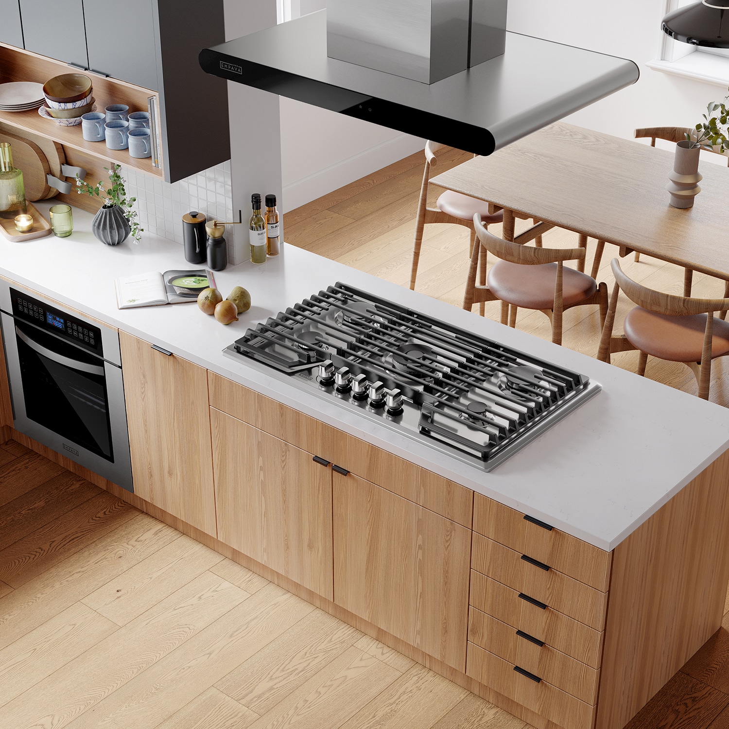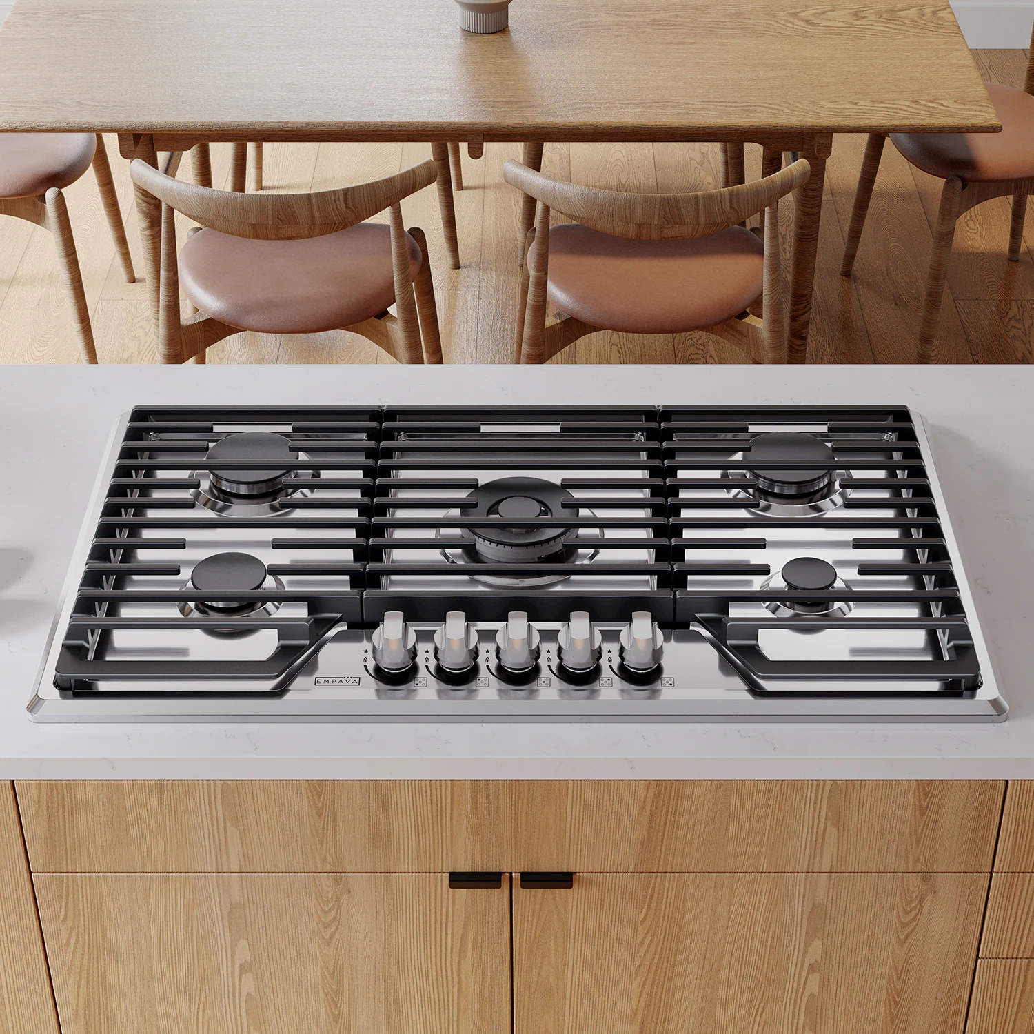 The Empava 36-inch gas cooktops with the CSA certified is a perfect combination of style and practicality. Constructed with 18-gauge stainless steel for exceptional resistance to corrosion and rust. Handcrafted brushed satin finish to prevent dents and scratches for long lasting use in your busy kitchen. The gas cooktops feature commercial-grade components (1x 18,000-BTUs, 2x 12,000-BTUs, 1x 9,500-BTUs and 1x 6,000-BTUs, total 57,500-BTUs), the power burner designed to reach maximum temperatures quickly as well as a simmer burner for more delicate, controlled heat. The knobs and the heavy-duty cast iron grates can be cleaned in the dishwasher. During the past years, gas cooktops by Empava appliances have been a very popular choice for kitchen upgrades and new builds, allowing you to cook restaurant quality meals from the comfort of your own home.
