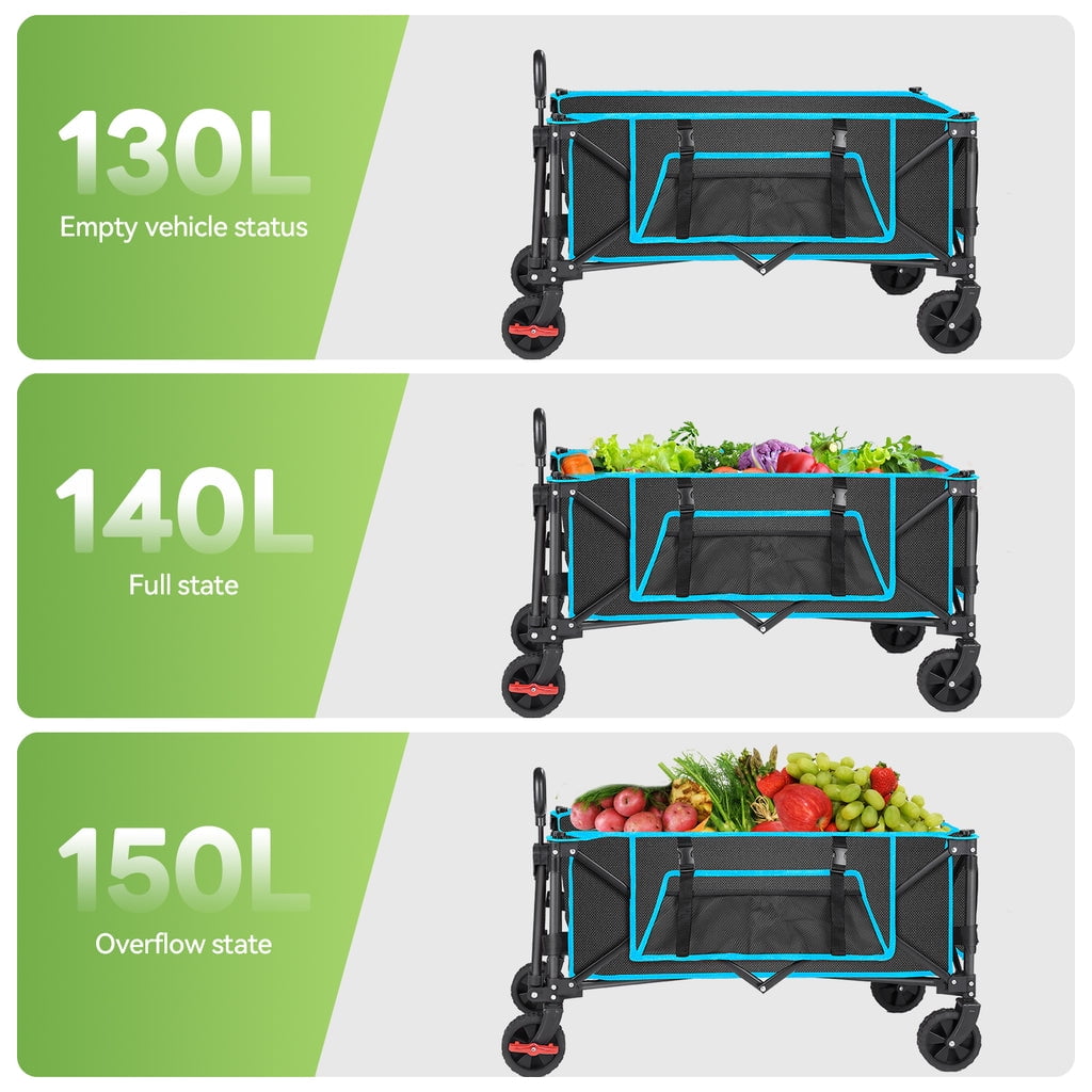 VECUKTY! Feel the Charm!Vecukty Portable Collapsible Mini Camp Wagon Cart with Trakes.This Vecukty wagon cart constructed of a heavy-duty metal frame can load up to 150lbs to meet all your needs. This collapsible folding wagon made of 600D oxford fabric is durable and waterproof. Perfect for outdoor activities like beaches, garden work, parks, camping, fishing, shopping or just moving items. Overall dimensions: 36.22″ x 17.72″ x 36.66″. Folding size: 5.9″ x 9.1″ x 23.2″. Net weight only 11.9 pounds. [Mini Wagon Mini Folding Size] This mini camping wagon can be picked up with one hand when it is in folded state and put it in any corner of the car trunk, it only takes up a little bit of space, which makes it convenient to use it whenever you need it. [Multi-Purpose Mat] Function 1: Serves as a floor mat for minivan, convenient for placing any items. Function 2: Used as a tailboard for wrapping the wagon in folded state, no more space is needed to put this mat. [Sturdy Steel Bar – Small Heavy Duty Wagon] Folded utility Wagon base adopts a thickened metal steel frame – which can hold up to 150 lbs,the bearing capacity is SO Good! [360° Rotate Solid Front Wheels Trolley] The Small Folding Wagon is equipped with 4pcs solid wheels (front solid wheels with brakes),You can safely drive and park on all terrains, such as shopping and outdoor activities. [Grocery Wagon-Flexible Adjustable Handle] Wagons Heavy Duty Foldable handle can be adjusted up to 70°, the height of the handle can be adjustment space is 8.46in! [Side & Rear Pockets] Side pockets allow for longer items such as umbrellas as well as fishing rods.The end of the trolley is equipped with a storage mesh pocket, which is convenient for you to store cups/cell phones/small toys, etc. [Large Removable Capacity] Foldable Wagon Cart is made of double-layer 600D Oxford cloth, which provides maximum tear resistance, easy to remove for cleaning. The largest storage space can reach 150L. Brand:VECUKTY Product Name: Multifunctional mini camping wagon Color: Black/Red/Brown Frame Material: Steel carbon Car bag material: 600D Oxford cloth Load bearing: 150LBS Capacity: 130L-150L Applicable scenarios: Camping /Courtyard / Beach / Picnic / Travel / Supermarket shopping