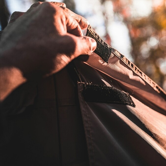 - Additional flaps secure to the top of the optional wind panels to help keep moisture out