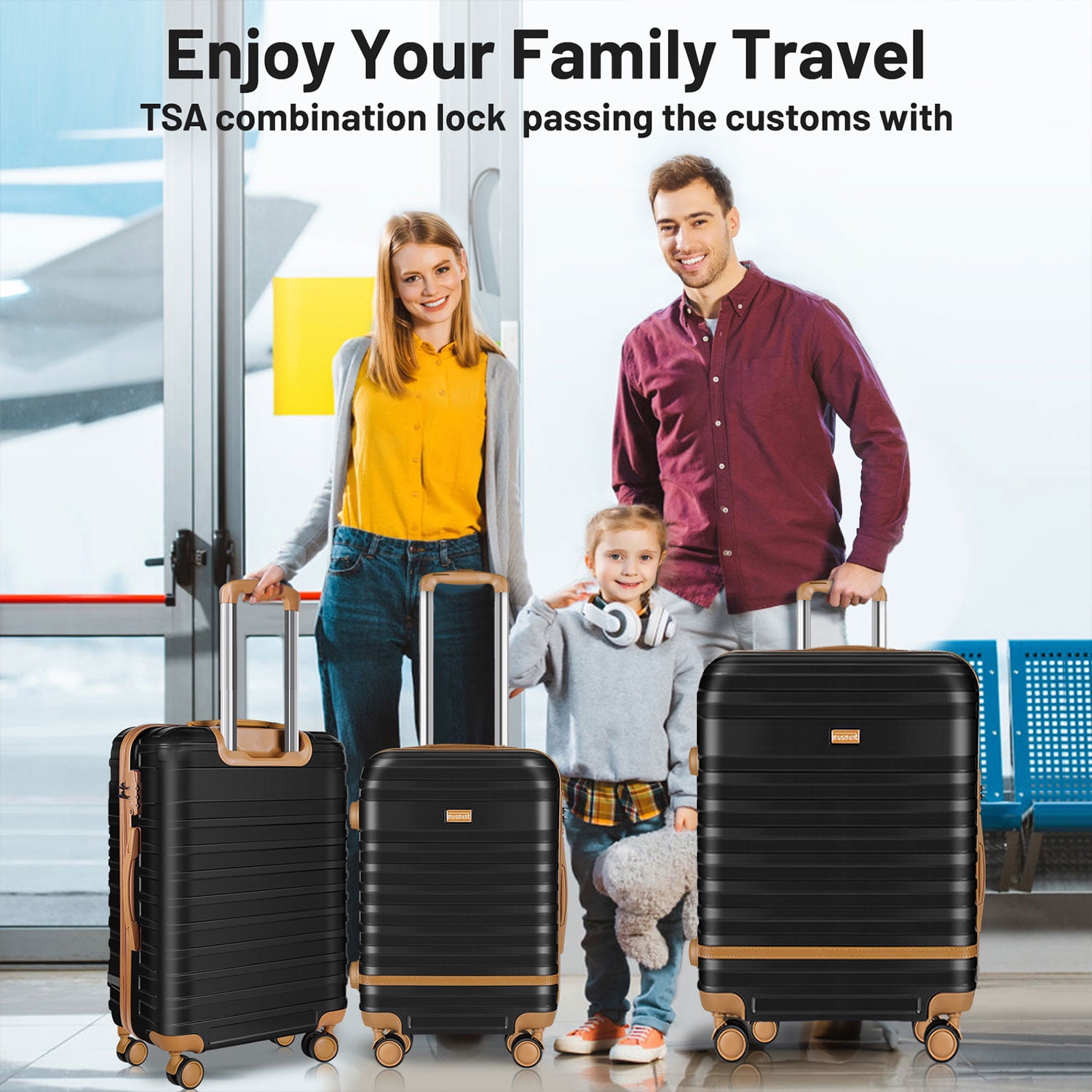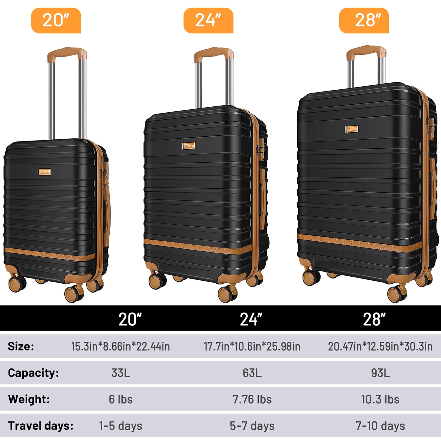 GAZILY 12.00″ 3 Piece Hardside Spinner Lightweight Luggage Set, Black 3-Piece Luggage Set: Includes 20″ carry-on (for domestic travel), 24″, and 28″ spinners. Each suitcase nests inside the other for easy storage High Quality Suitcase: Made from strong, lightweight ABS with a textured finish to resist scratches Easy Maneuvering: 4 silent multi-directional double spinner wheels for smooth, effortless movement in any direction Double TSA Lock & Adjustable Handle: 3-digit TSA lock for security, with an ergonomic 3-step telescoping handle for comfortable use Brand: GAZILY