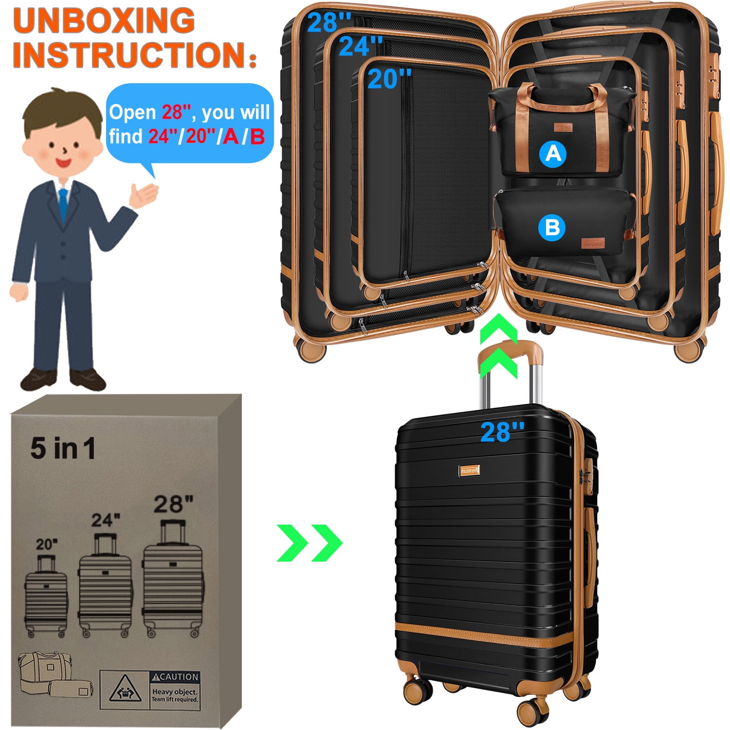 5 Piece Luggage Sets ,Carry on Luggage/Hard Side Luggage and Checked Luggage ABS Hardshell Lightweight Suitcase with TSA Lock and Double Spinner Wheels GAZILY committed to providing high quality and affordable luggage sets and Satisfy customers service, Professional fashion designs and bright colors make suitcase stand out in the crowd. Durable lightweight, and water-resistant ABS hardside shell, adjust freely handle, smooth 360°double wheels, TSA lock, and large storage space design help you bring easy, convenient and happy travel life. 【Strict Quality Control】 Luggage are manufactured with strict quality control standards. Each Luggage and its components undergo extensive testing for optimal performance and to pass laboratory performance tests. As long as you use our Luggage, we are responsible for you. All of this is just to give you a better shopping experience.
