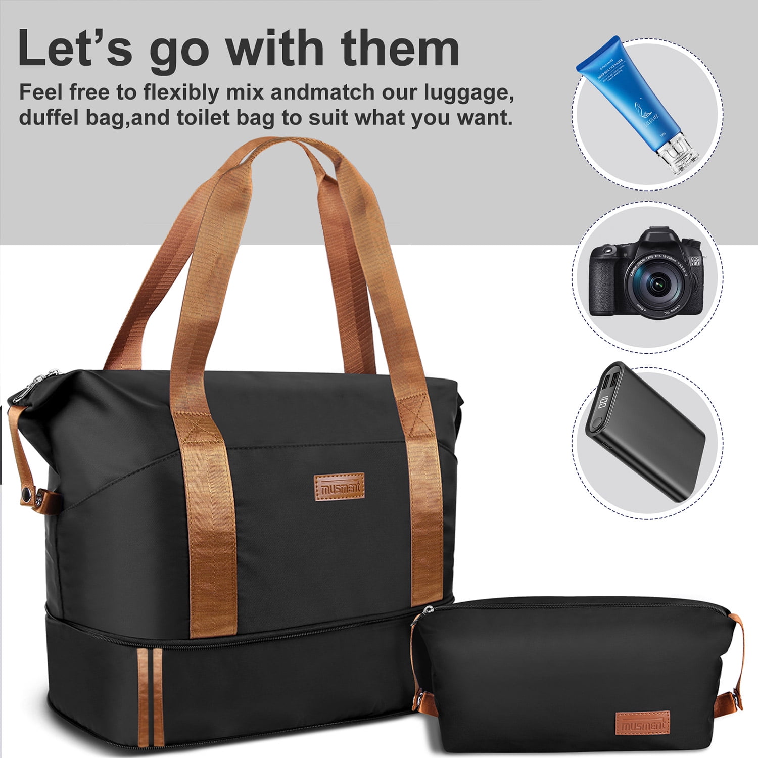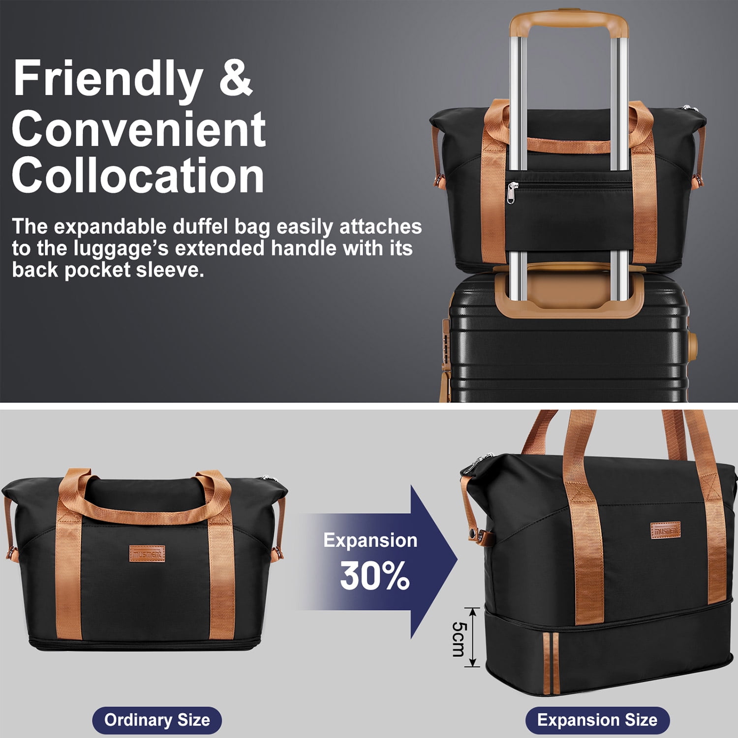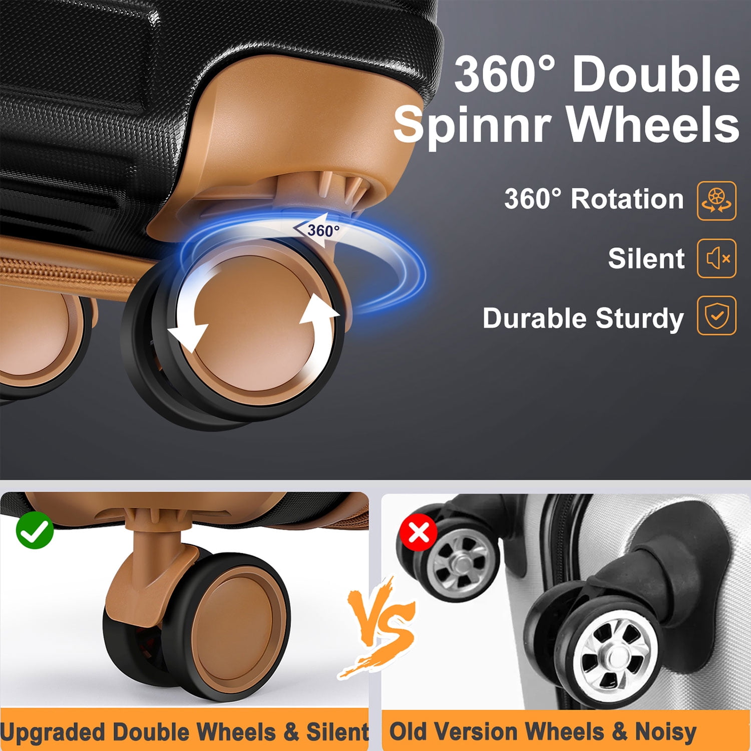 ????Perfect set :includes a 20’’ luggage, a travel duffel bag and a toiletry bag,Provide convenience for travel. ????20’’ luggage Mounted TSA-approved lock, and fully-lined interior divider with organization pockets, keep your belongings secured and organized in the luggage. ????Crafted with ABS for durability and versatility, the luggage is lightweight and built to last. Slide or glide with the retractable handle and four multi-directional spinner wheels that move at your pace. ????The duffel bag and toiletry bag are all made of polyester fabric which is mild water-resistant. The duffel bag is designed with the back sleeve, so you can conveniently attach them to the retractable luggage handle.