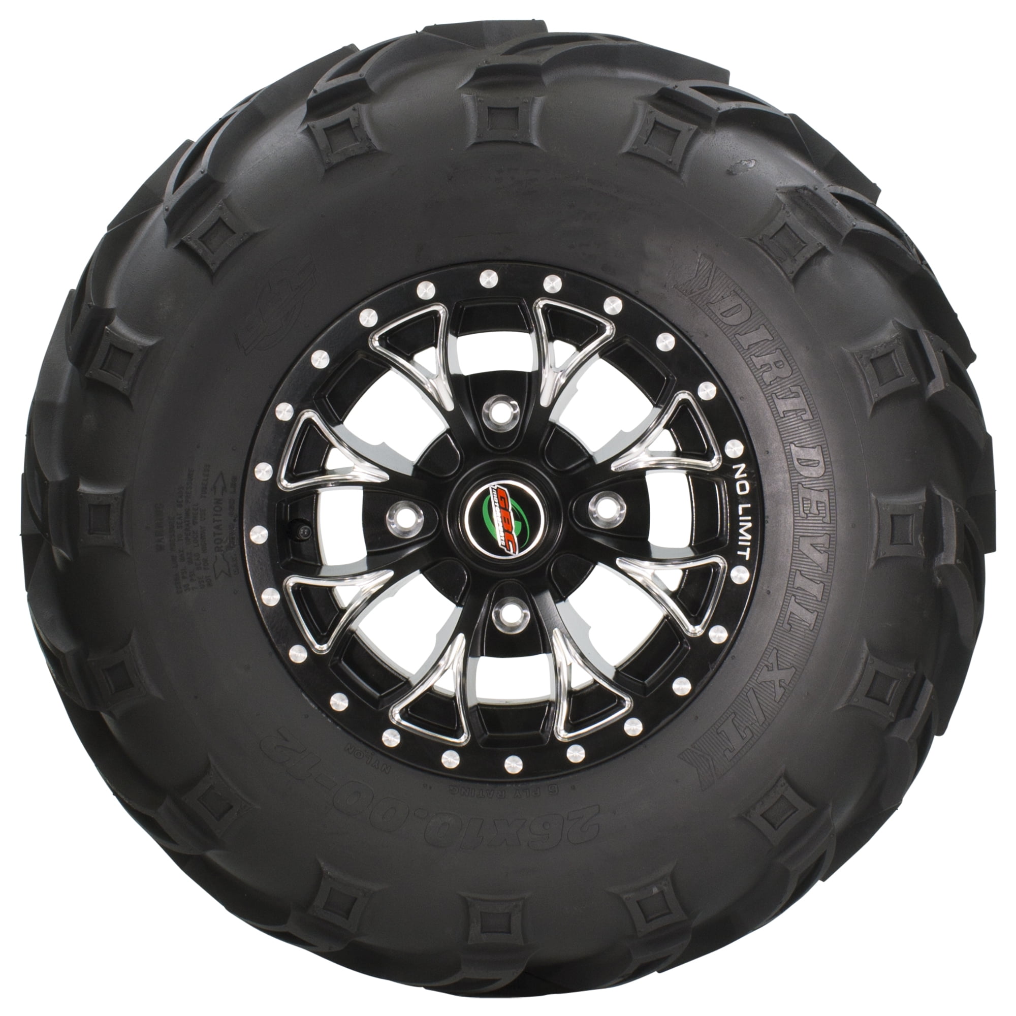 The GBC Dirt Devil is GBC top selling ATV/UTV tire of all time. Backed by over 20 years of proven performance, the Dirt Devil is well suited for all types of terrain. It can handle dirt, gravel, hard pack and light mud with ease. It has a deep V-type tread that digs in terrains, but yet the ride is still smooth and comfortable. Carried in 22 sizes, it fits a wide range of ATVs and other utility vehicles used in industrial, farm, hunting, parks and recreation, and other service industries.