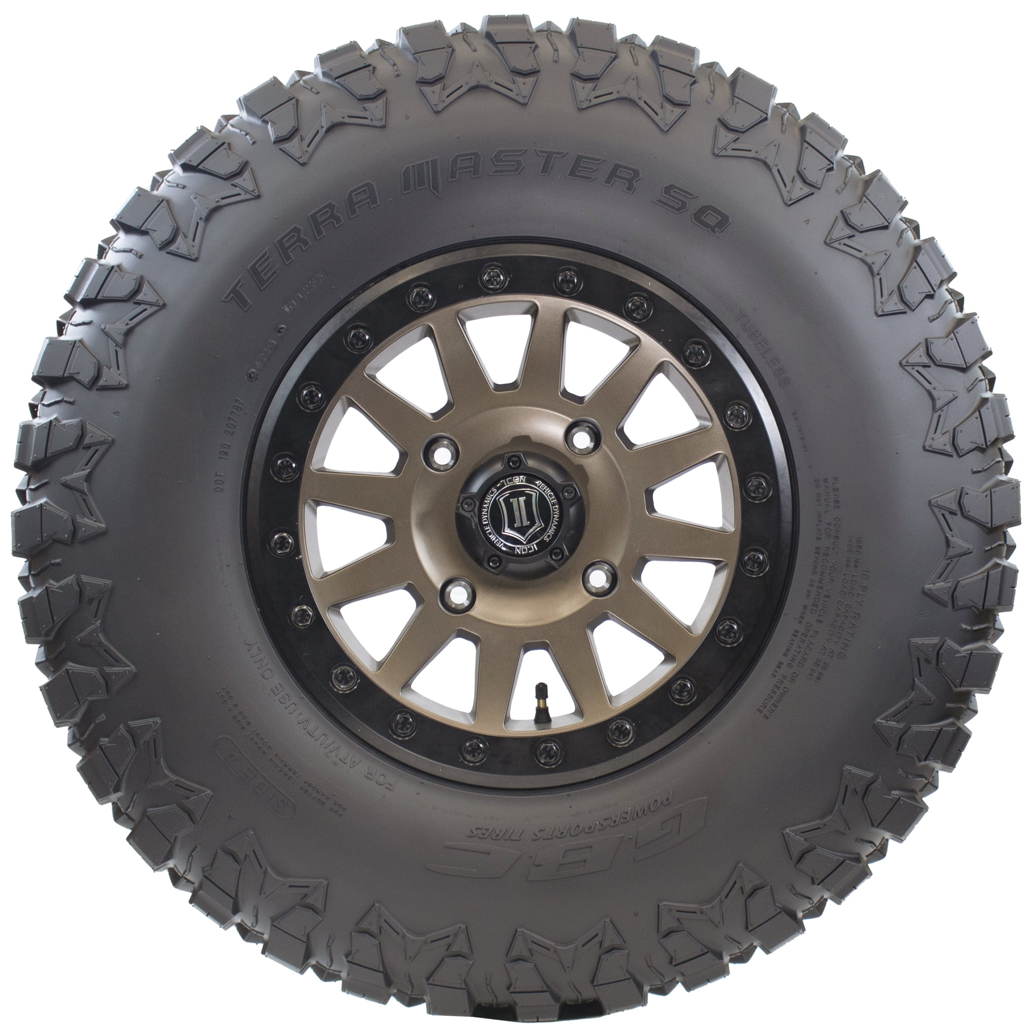 Select the Perfect Tread for Your Driving Style – For soft to intermediate terrain, we recommend mounting Side A outward. When tackling intermediate to hard surfaces, mount Side B outward for optimal performance. Greater Acceleration Power – By featuring a square profile, the tire’s contact patch receives even torque distribution, allowing for optimal engine power transmission to the ground. This translates to a significant improvement in acceleration performance. Redesigned Tread Lugs – Improves tread wear for a longer tire life. Enhanced Lightweight Nylon Build- the Terra Master SQ now features a 10-ply rated nylon construction, replacing the previous steel-belted design. This update offers drivers a speed advantage by reducing overall weight. High Load Carrying Capacity – The 10-ply rated construction allows these tires to handle heavier loads with ease. Perfect for today’s larger and heavier machines.