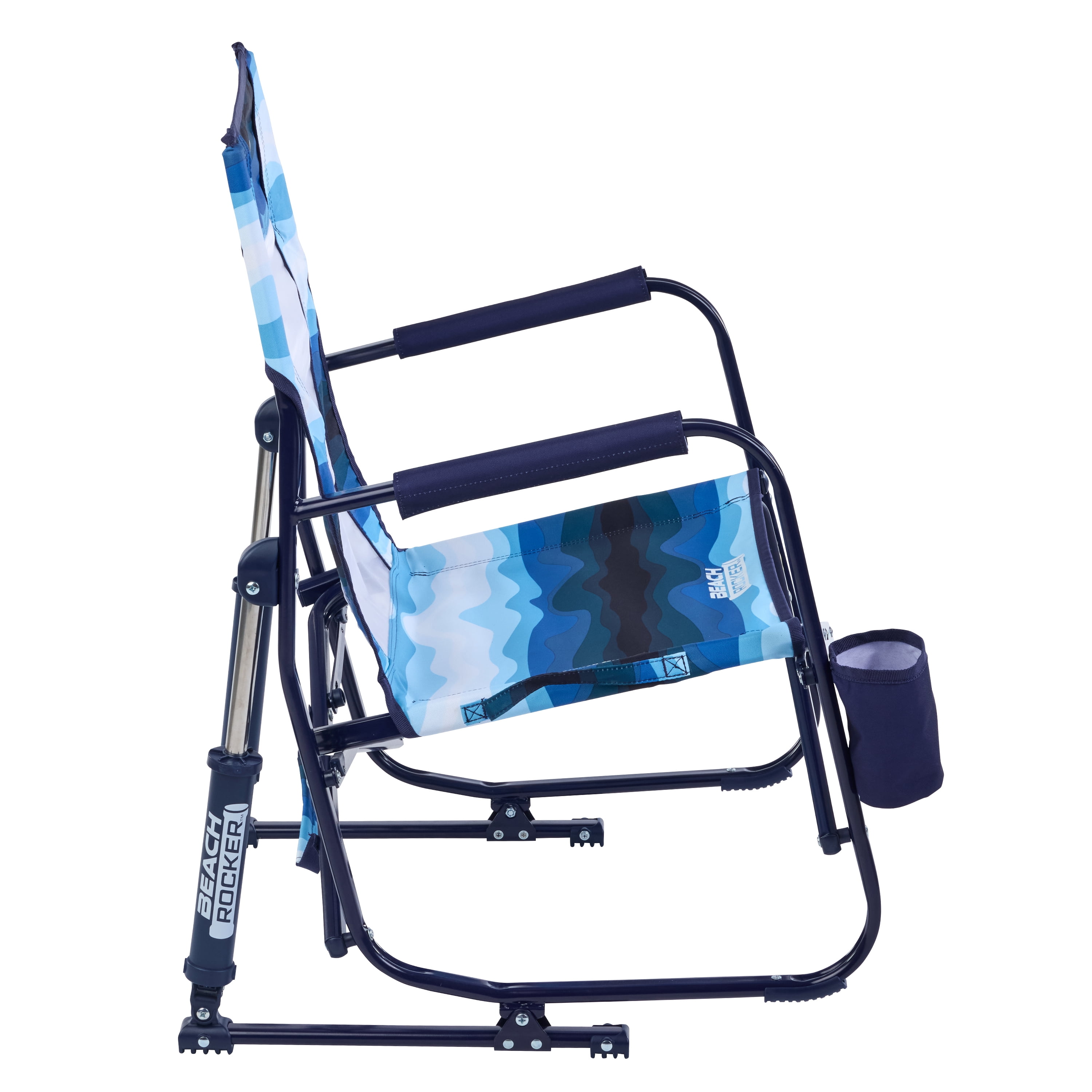 GCI Outdoor Beach Rocker Foldable Rocking Low Profile Chair Full-size rocking beach chair Patented spring-loaded shocks for a smooth rocking motion Eazy-Fold Technology for safe and simple opening and closing Padded armrests for extra comfort and support when sitting down or standing up Durable, nylon mesh backrest for continual airflow to keep you cool Sturdy, aluminum frame provides durability Fold-flat design for storage and transporting Carry handle offers easy portability Convenient beverage holder Supports 250 lbs Seat Height: 14.8 in Item Weight: 10 lbs Adult chair