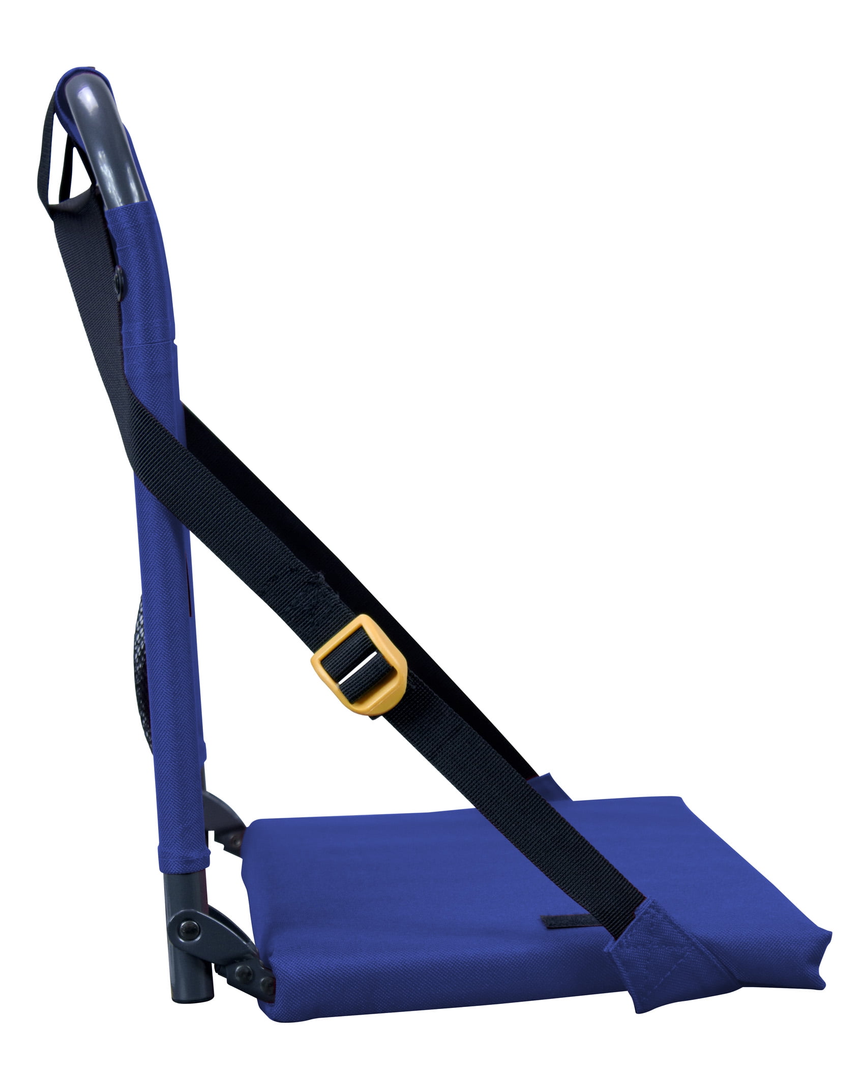 Lightweight, padded seat for all-day comfort Protects against hot, cold, and hard bleacher surfaces Adjustable backrest for customizable support and comfort Shoulder carry strap enables easy, hands-free portability Single buckle strap securely fastens to stadium benches with one click Mesh storage pocket to hold small essentials Auto-Fold Technology for quick and easy folding when packing up Folds-flat design for convenient, space-saving storage Ideal for indoor and outdoor use Weight capacity: 250 lbs. Item weight: 2.9 lbs.