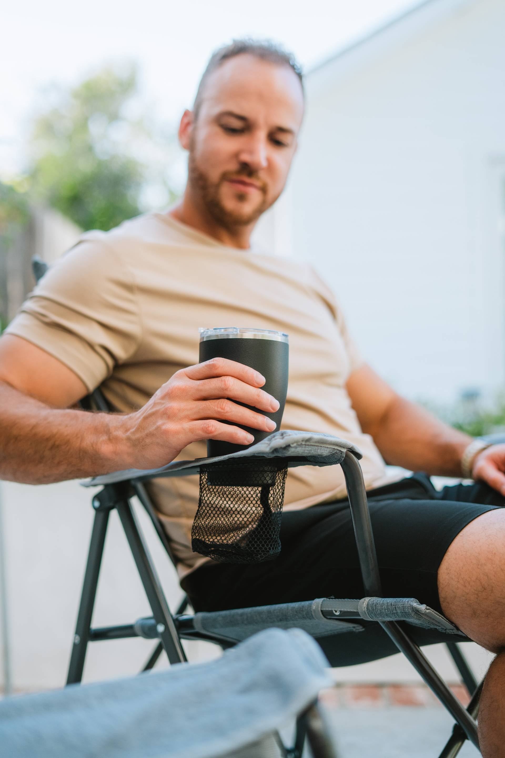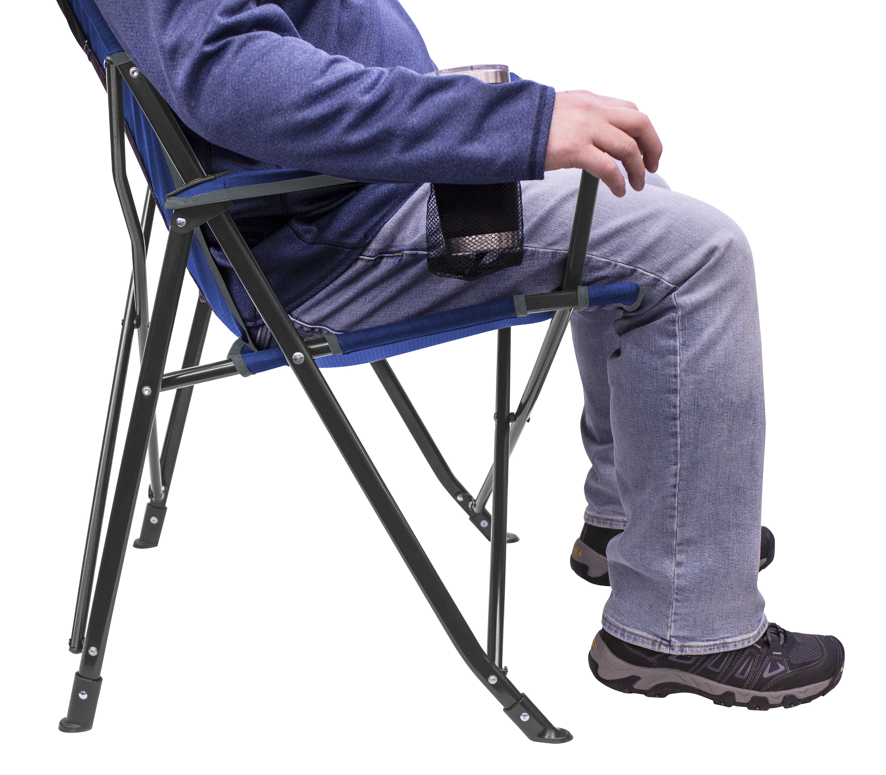 Tall, angled backrest provides extra neck and shoulder support for all-day comfort Built-in beverage holder for your favorite drink Integrated side pocket to keep your phone within hand’s reach Mesh back panel adds ventilation, helping to keep you cool and dry Sturdy, powder-coated steel frame for years of enjoyment Easy transport with the included carry bag Weight capacity: 250 lbs. Item weight: 7.7 lbs.