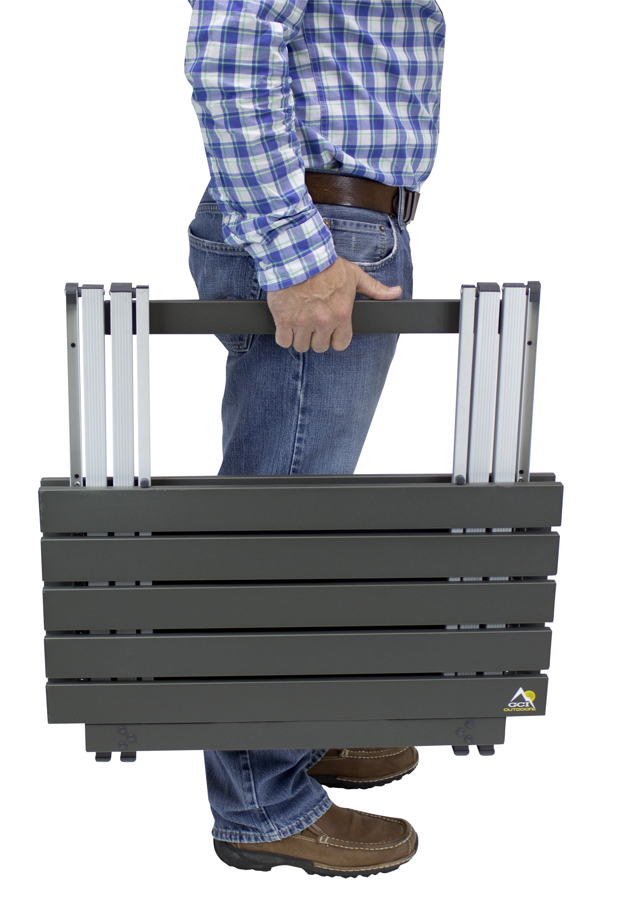 From morning coffee by the fire to evening meals under the stars, the GCI Outdoor Compact Camp Table 25 provides a stable surface for any outdoor occasion. Designed for both portability and durability, this lightweight table features a heat-resistant aluminum top that supports up to 60 lbs. of food, drinks, and gear—making it a versatile workspace for cooking, prepping, and casual dining. Its one-piece, square design comfortably seats up to four people, ideal for small gatherings. With a patented quick-folding mechanism, setup and takedown are effortless, giving you more time to enjoy your favorite activities. When it’s time to pack up, Squeeze Telescoping Technology ensures smooth collapsing—simply press the folded tabletop to release the locks, push up the legs, and you’re ready to go.