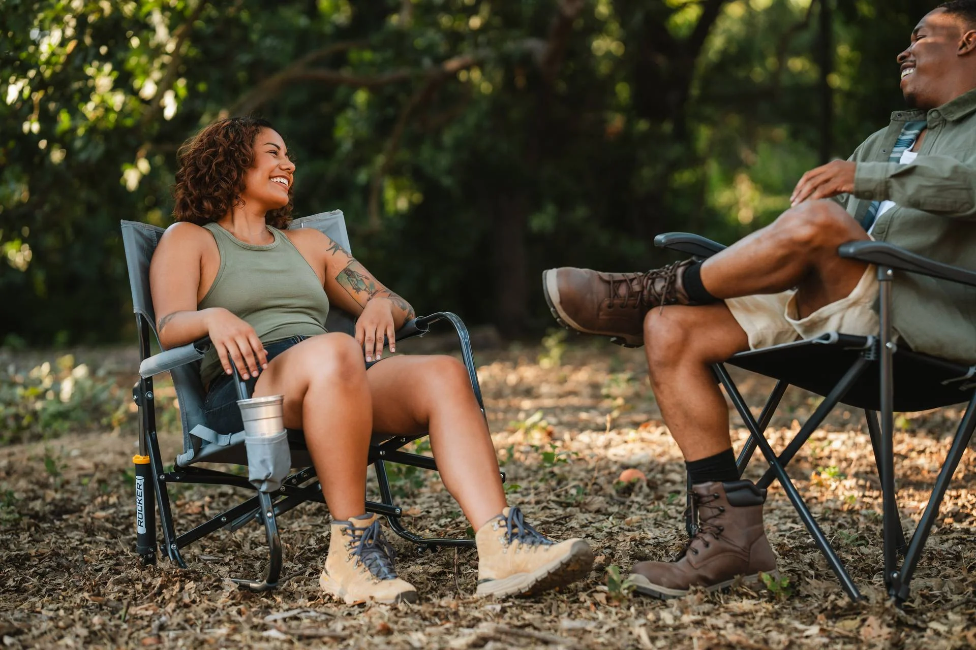 Feel the warmth, hear the crackle, and settle into the comfort of the GCI Outdoor FirePit Rocker. With its low-profile design and patented Spring-Action Rocking Technology, this chair provides a smooth rocking motion and a relaxing fireside experience. Designed with Eazy-Fold Technology for quick setup and storage, you’ll be toasting marshmallows in no time. Padded armrests provide extra comfort and support, making it easier to sit and stand, while the breathable mesh backrest allows for refreshing airflow on warm summer nights. Keep your favorite drink within reach with the convenient beverage holder, perfectly placed for sipping as you sway. Crafted from stainless steel, the durable frame supports up to 250 lbs and is built to withstand years of outdoor adventures. When it’s time to pack up, the easy-to-grip carry handle makes transport a breeze—so you can take comfort wherever you go.