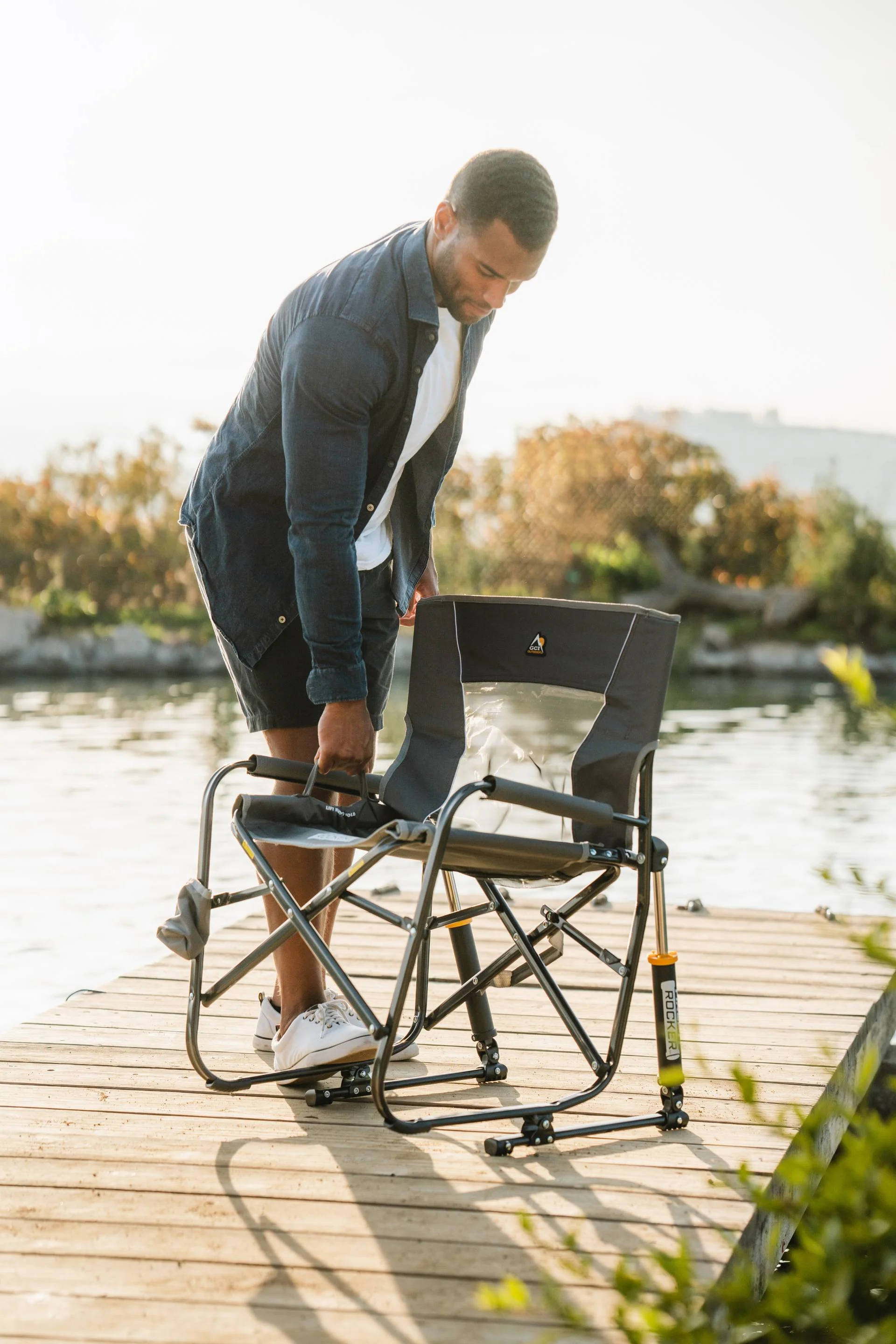 GCI Outdoor FirePit Rocker Low Profile Rocking Camping Chair, Pewter Gray