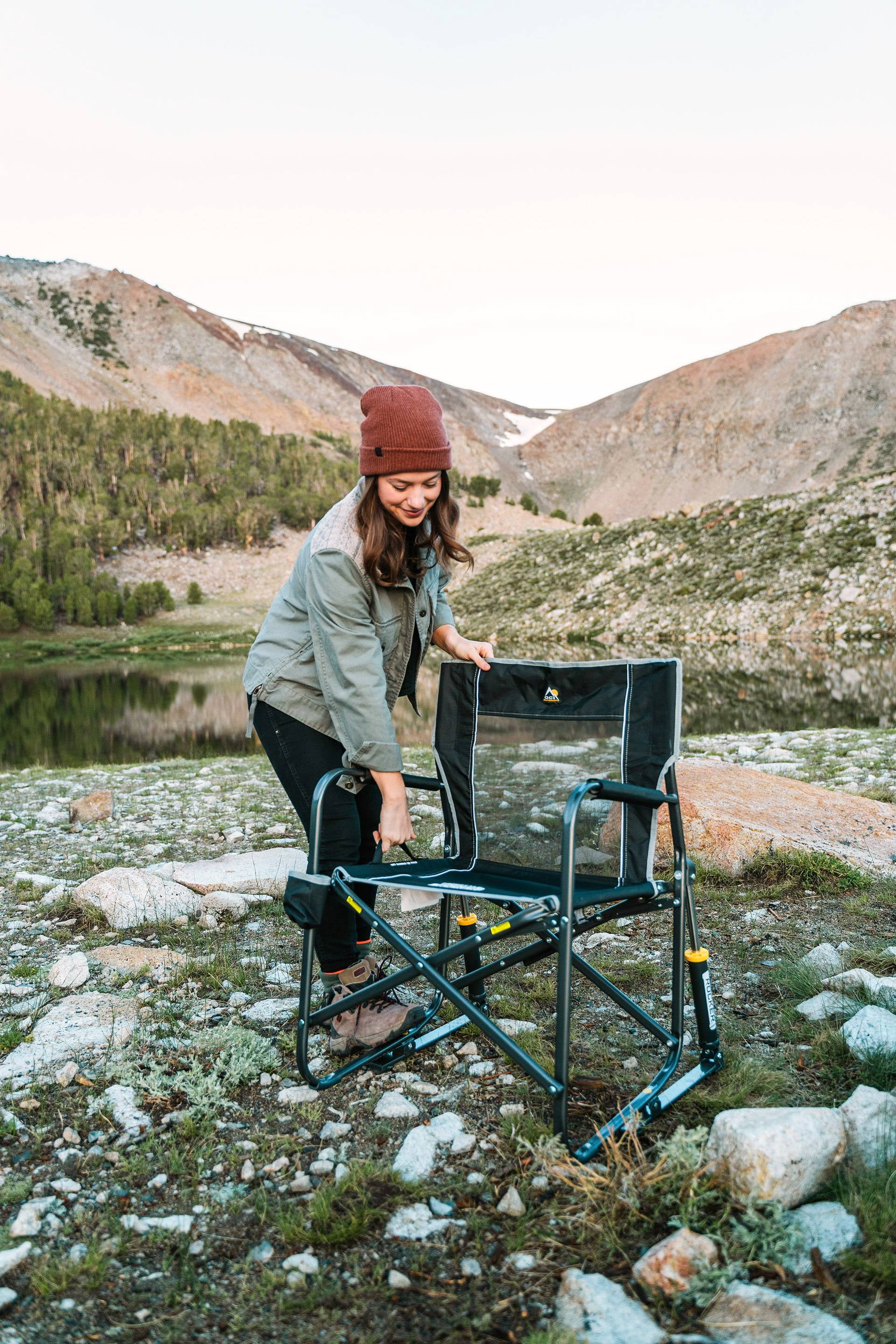 GCI Outdoor Freestyle Rocker Foldable Rocking Camping Chair, Black
