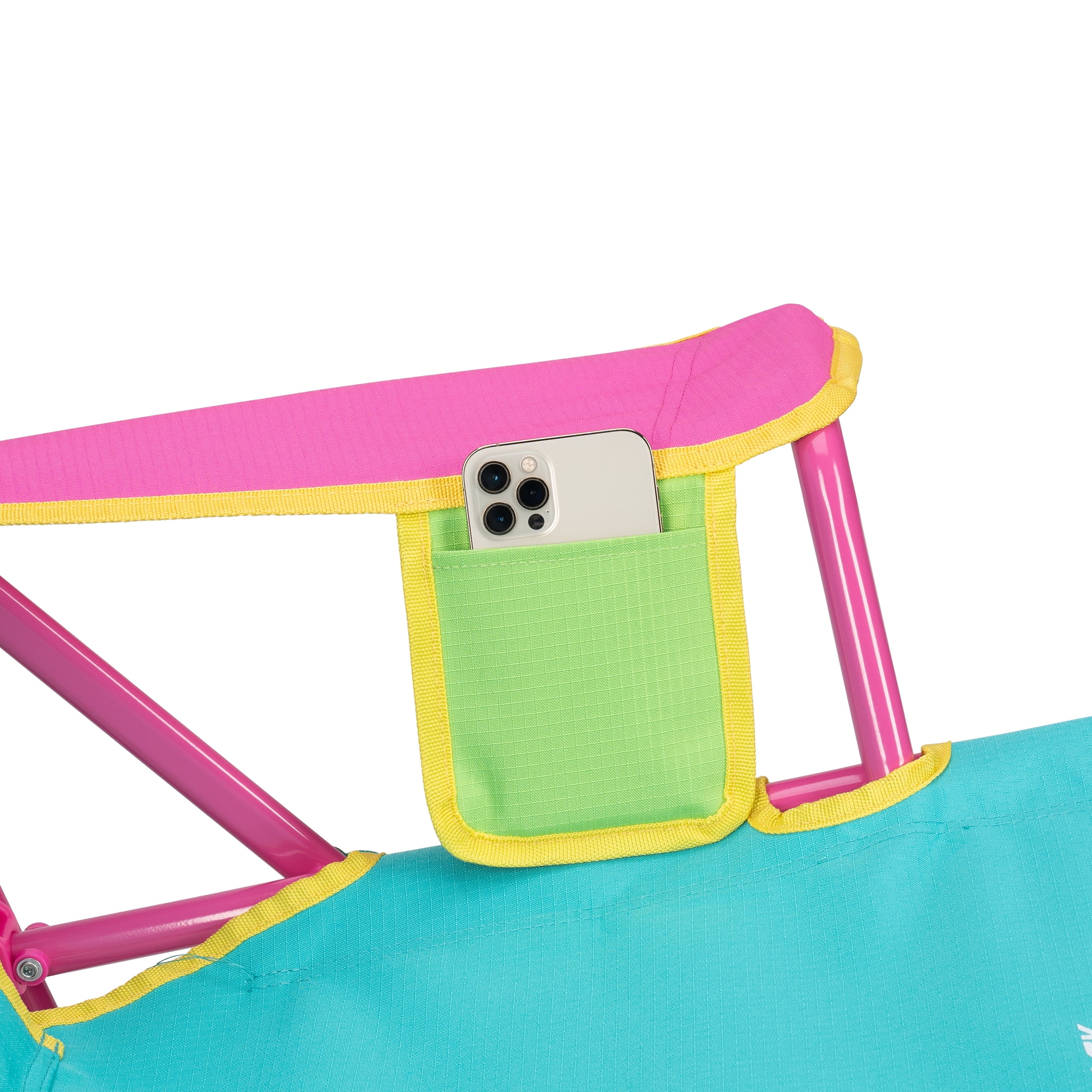 Patented Spring-Action Rocking Technology delivers a smooth rocking motion Mid-size profile with a lowered seat and angled backrest for a relaxed seating position Built-in beverage holder keeps your favorite drink within reach Integrated side pocket securely holds your phone for easy access Convenient carry strap allows for hands-free transport to and from your destination Weight capacity: 250 lbs Item weight: 10.6 lbs