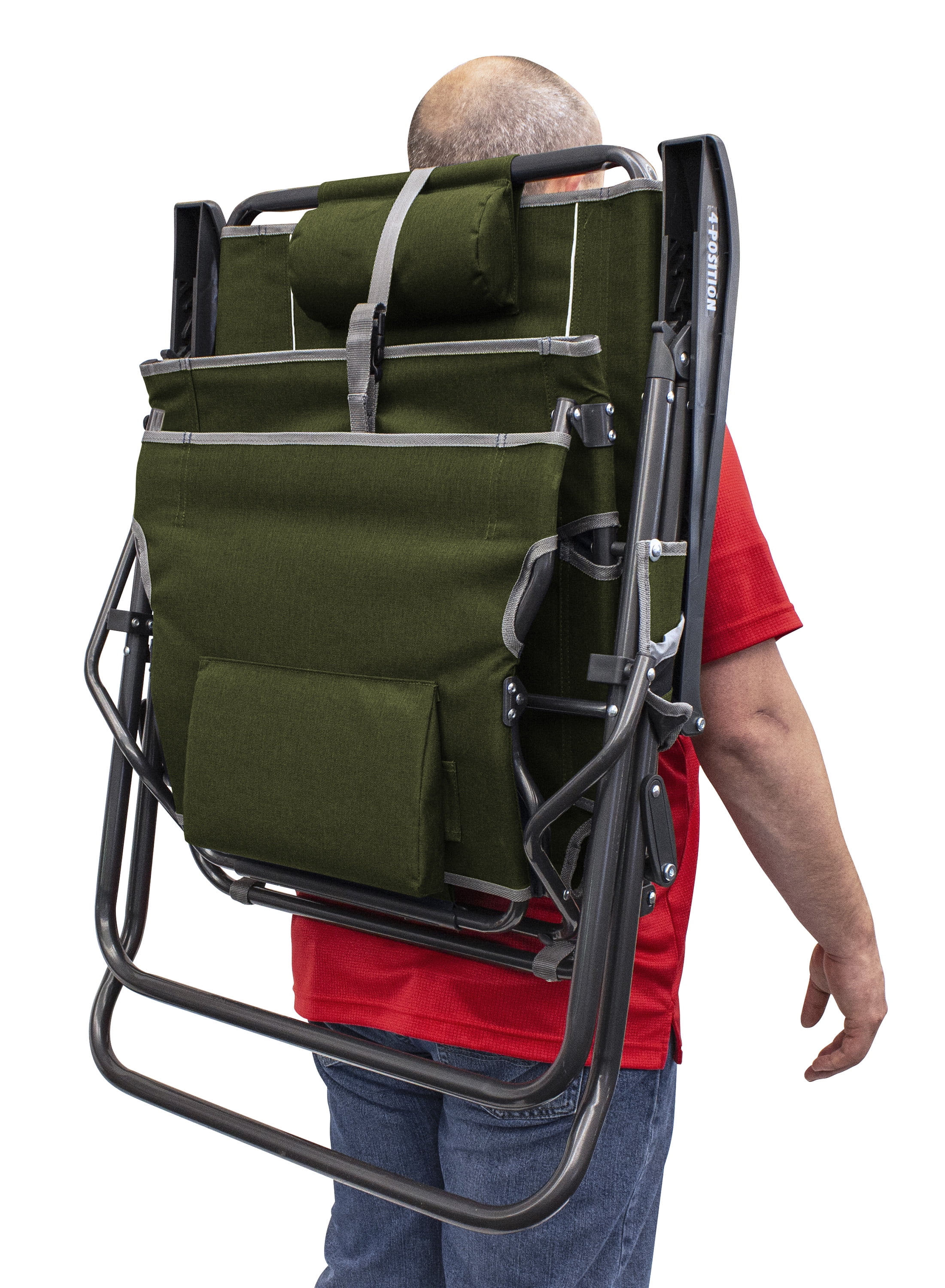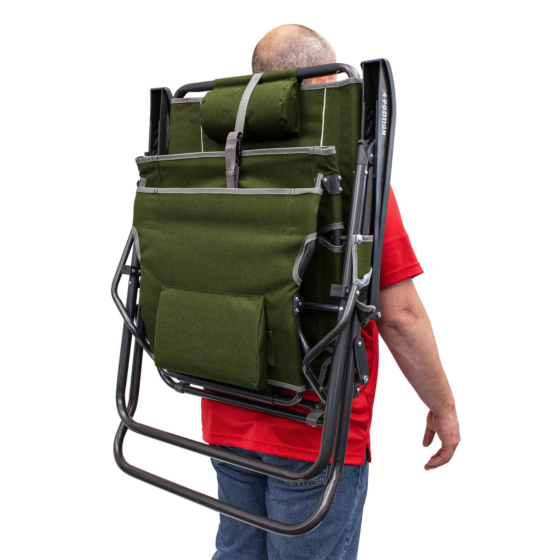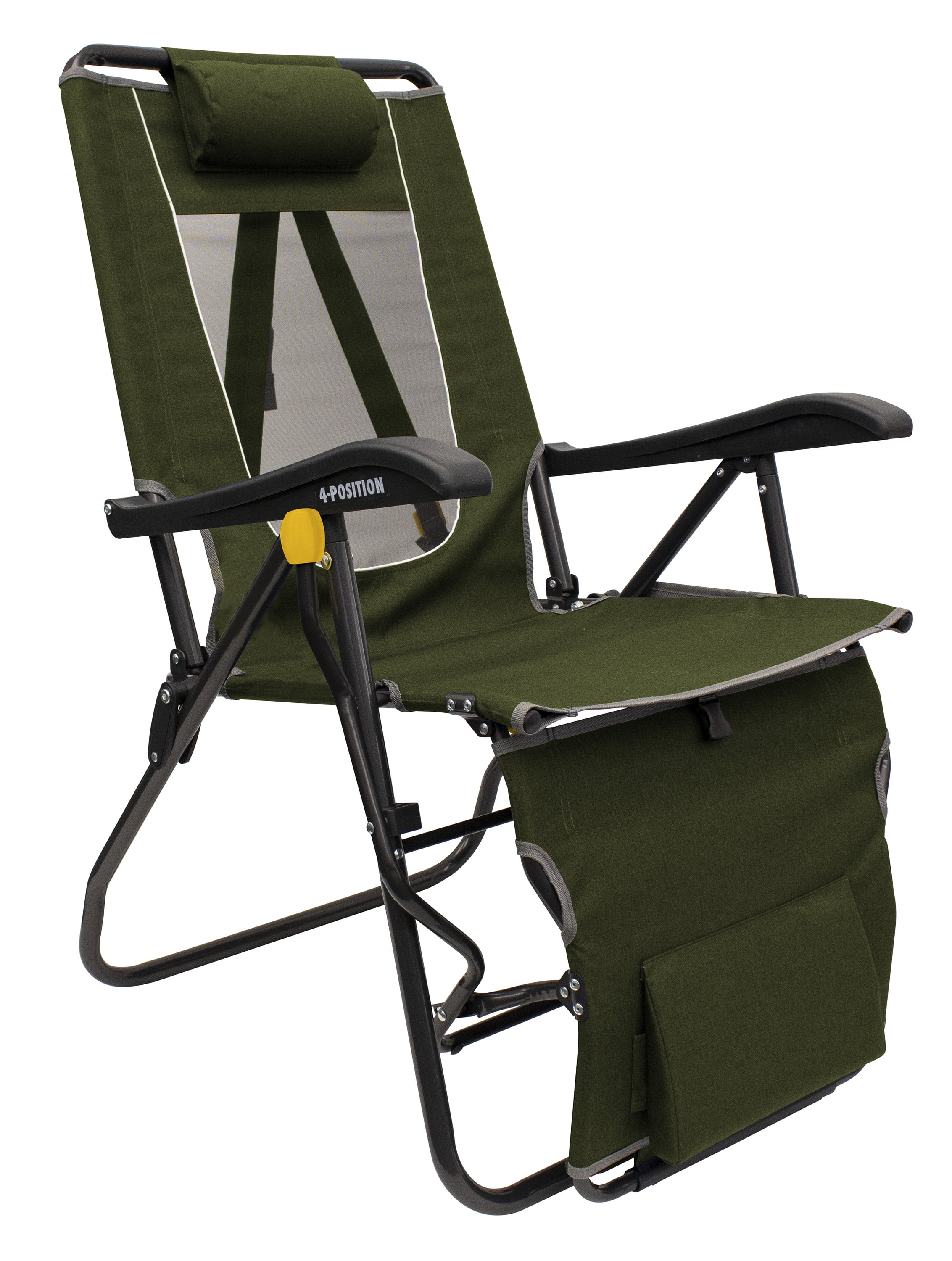 Innovative, lounge chair perfect for camping, tailgating and backyard BBQs Legz Up Technology for seamlessly raising the leg rest up or down Durable steel frame to last for years Solid armrests for extra support when sitting down or standing up Mesh backrest for continual airflow to keep you cool in warmer weather Backpack straps for hands-free carrying Convenient beverage holder and phone pocket Weight capacity: 250 lbs. Item weight: 11.6 lbs.