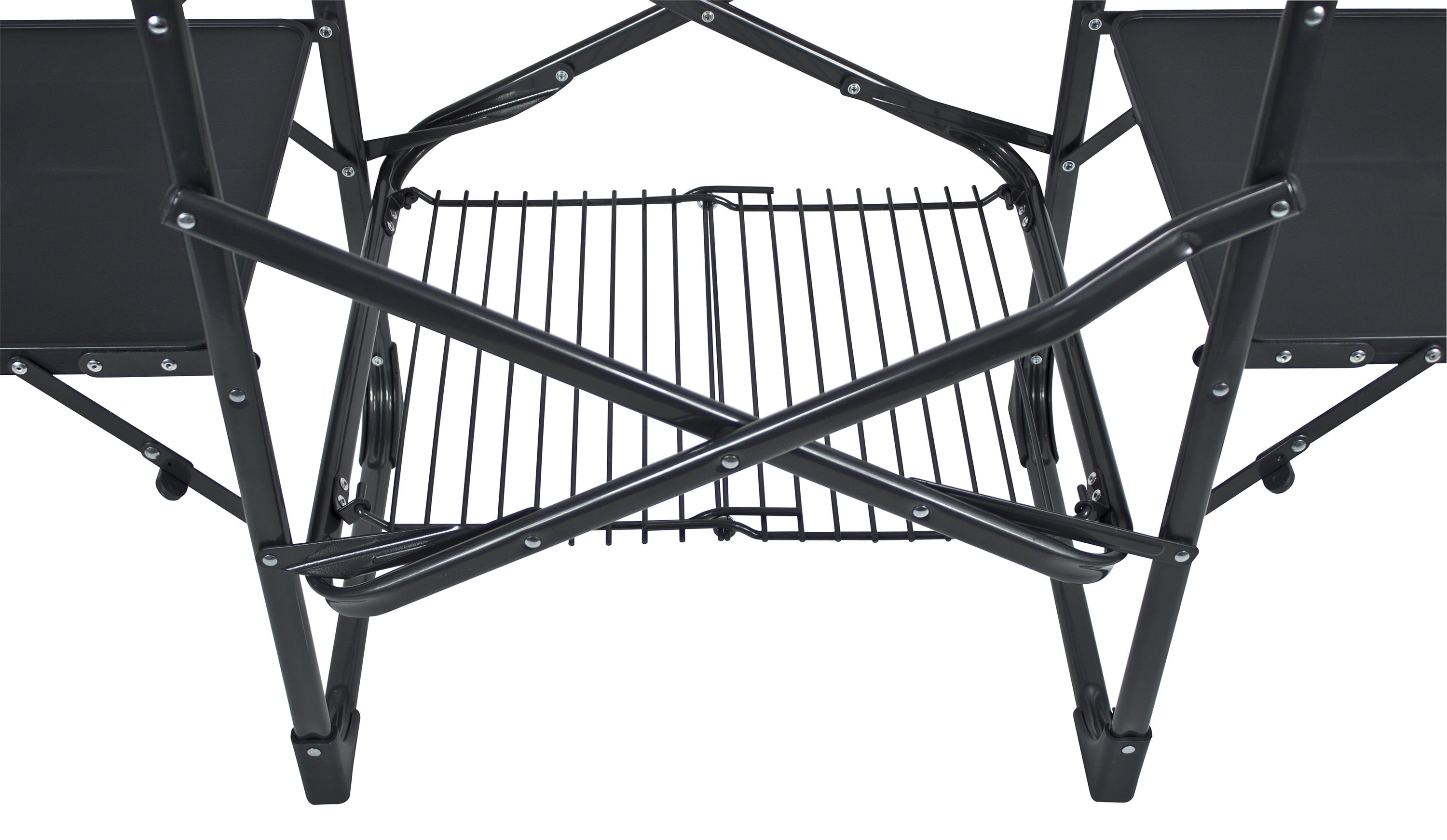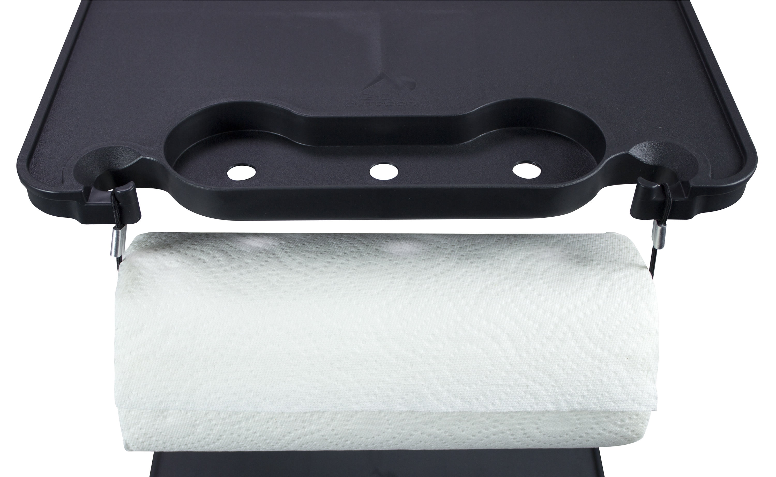 Heat-resistant, aluminum tabletop supports up to 48 lbs of food or cooking equipment Four side tables with built-in beverage and stem glass holders, each supporting up to 30 lbs Lower storage rack holds up to 35 lbs, perfect for a cooler or extra supplies Built-in hooks for garbage bags, paper towels, or cooking utensils Space-saving, folding design for compact storage Sturdy steel construction for years of outdoor use Quick and simple setup and takedown Open dimensions: 21” L x 52” W x 32.3” H Item weight: 18.9 lbs