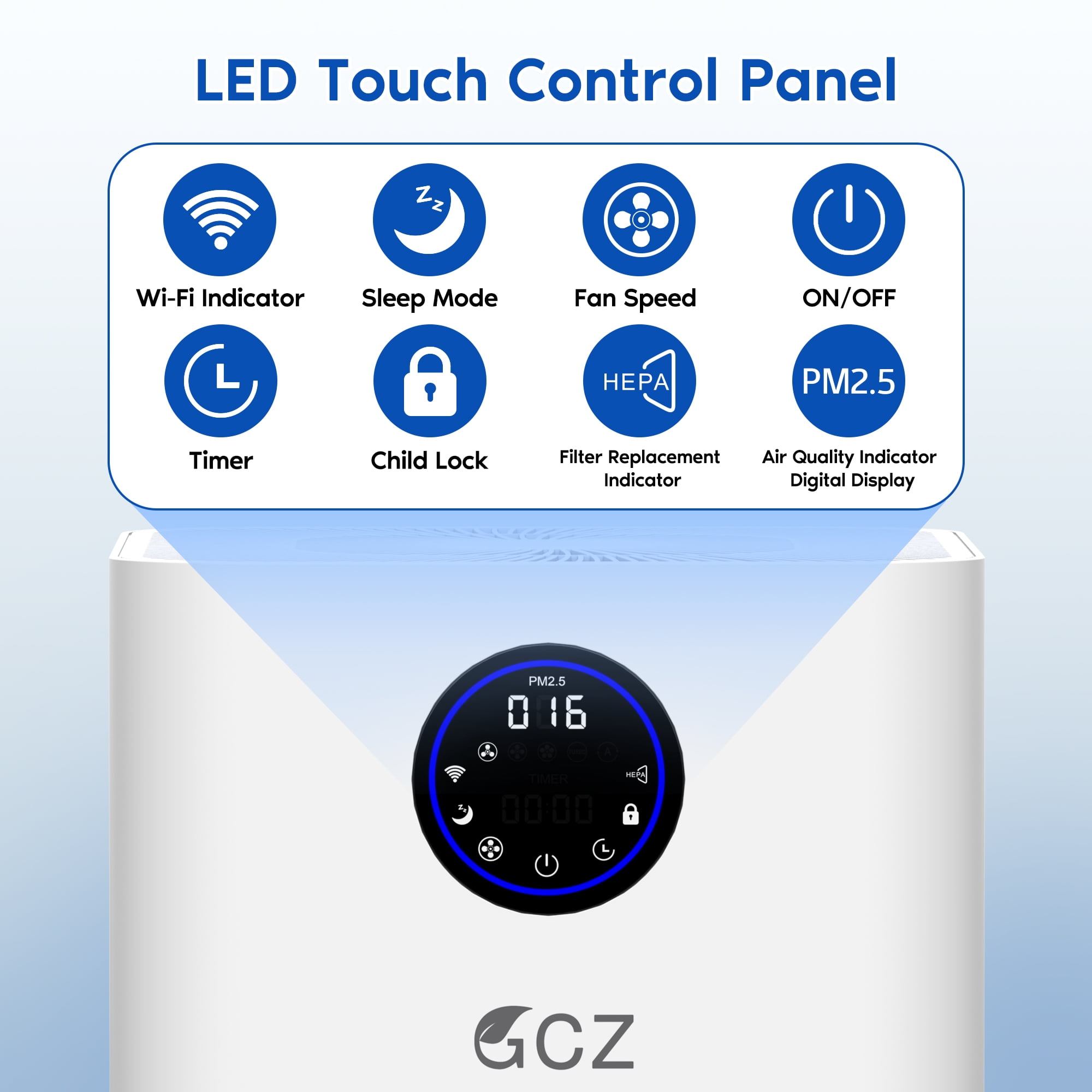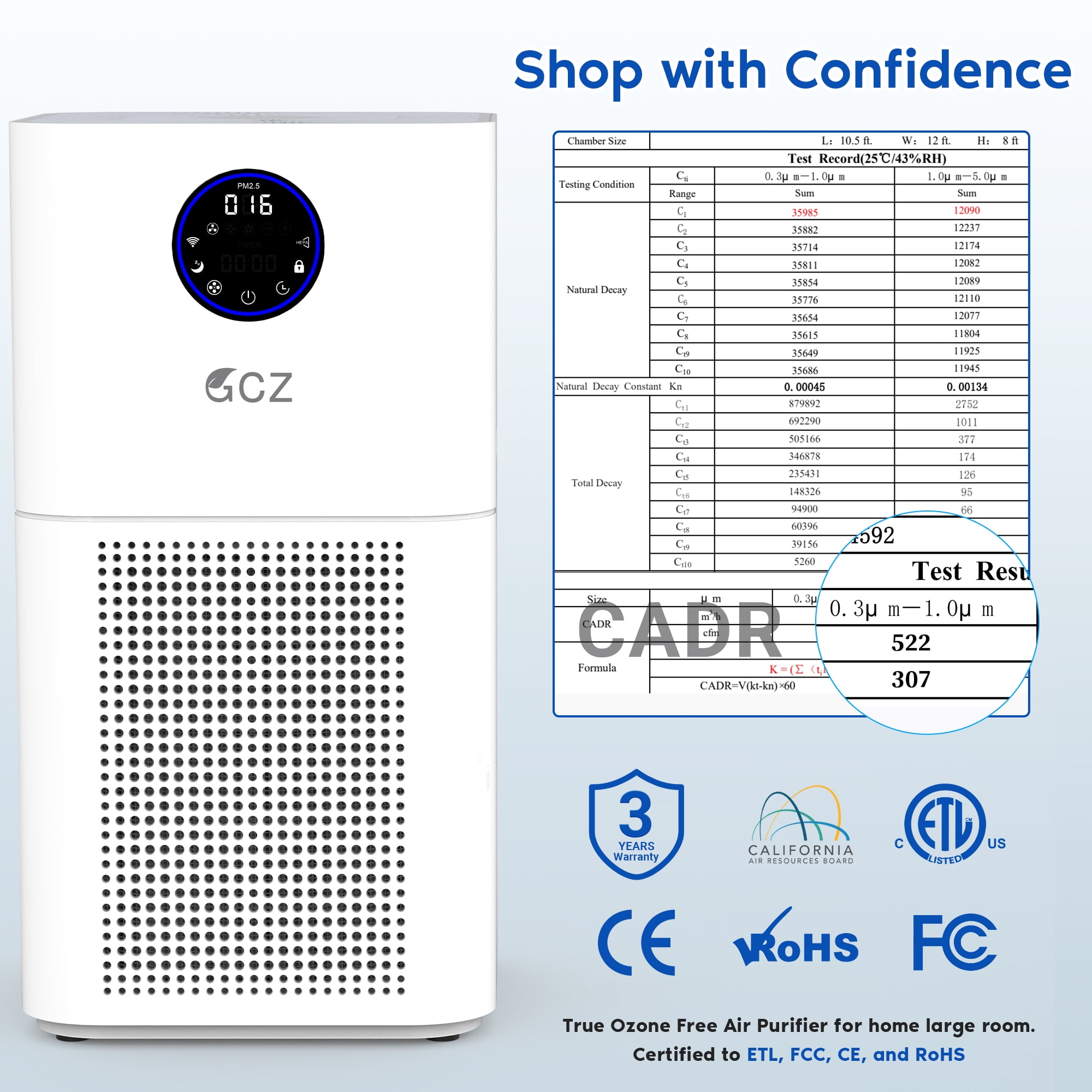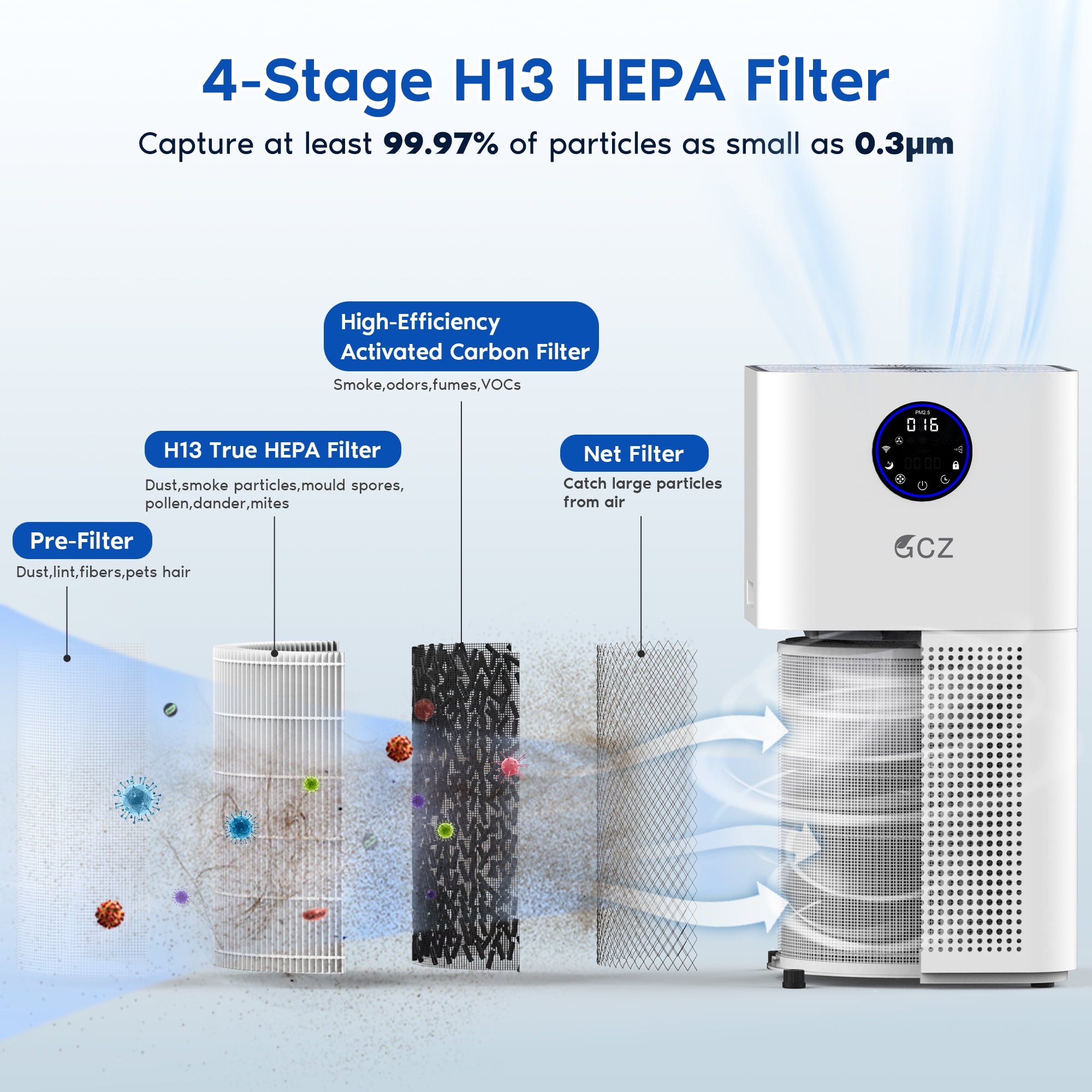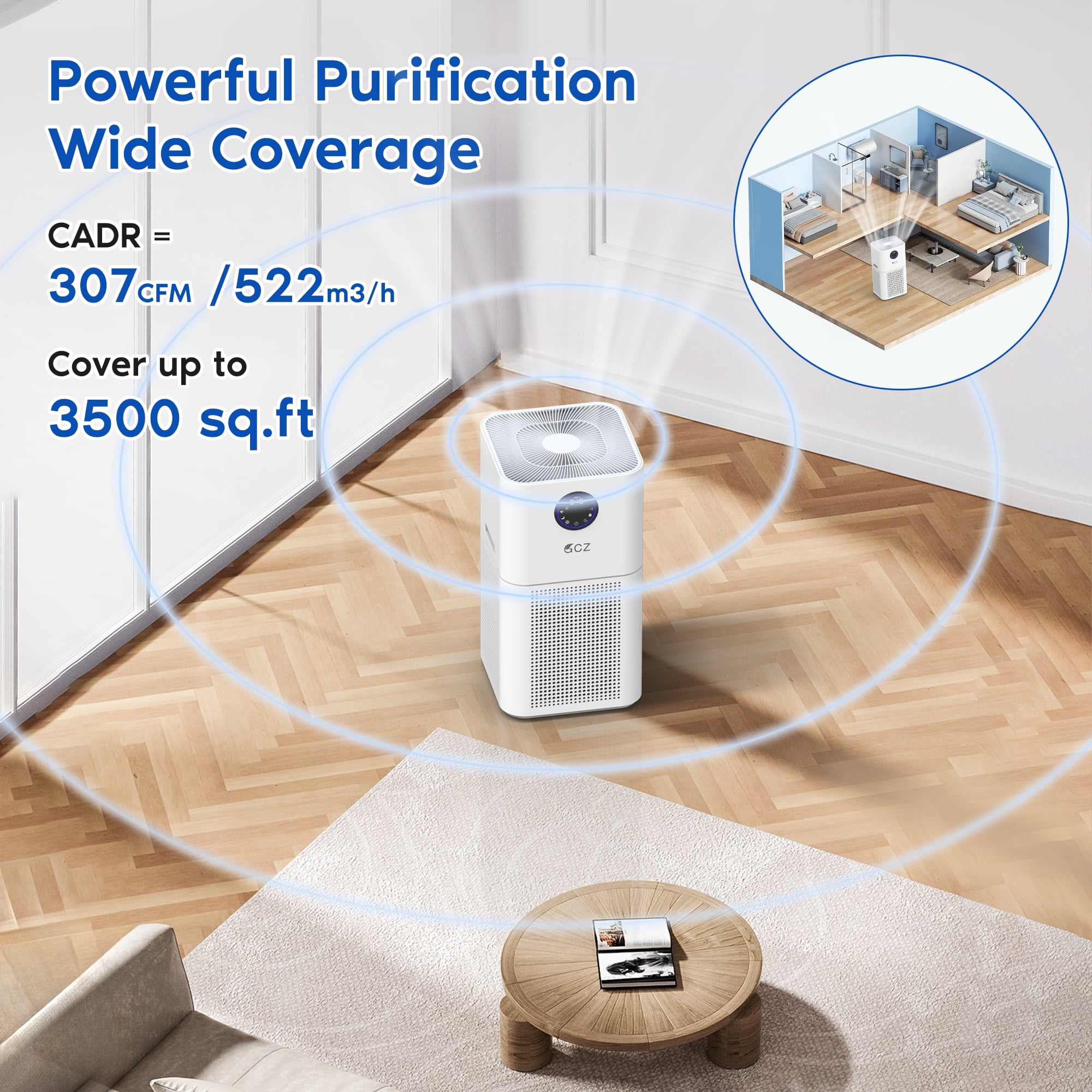 GCZ AP404 HEPA Filter Air Purifier for Home Large Room up to 3500 Sq. Ft, H13 True HEPA Filter for Pet Hair, Allergens, Dust