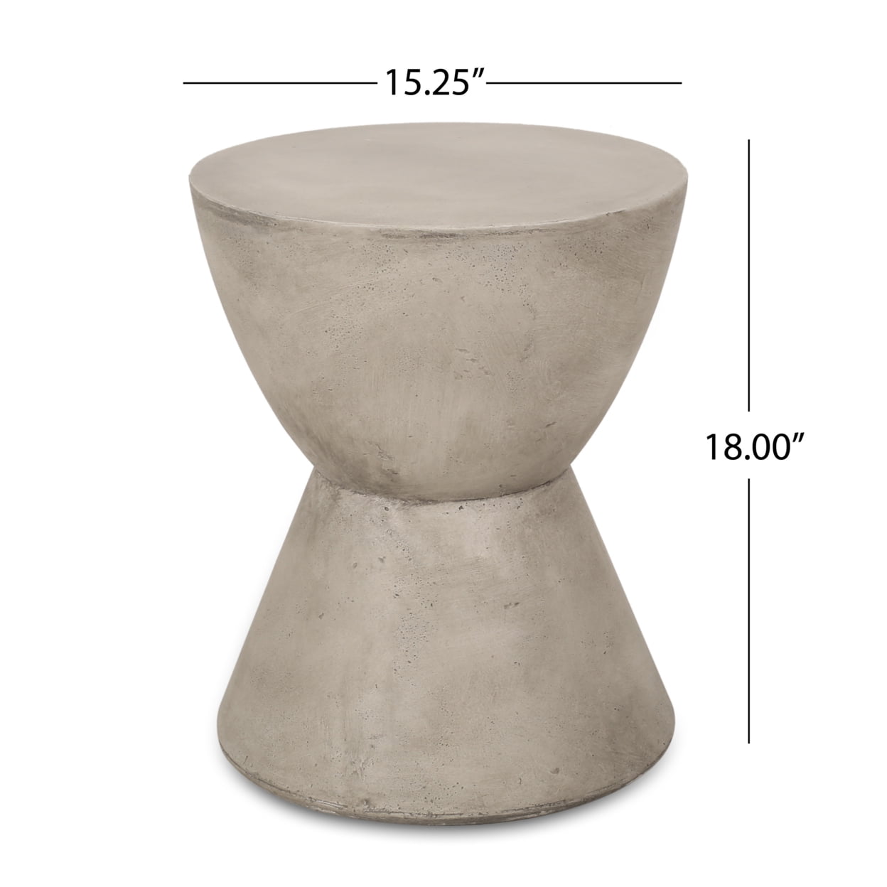 Set your outdoor space up for immediate success with a perfect accent to your seating ensemble. With a smooth lightweight concrete structure and modern design, this side table offers high durability and stunning looks for your backyard or patio. Perfect as an end table next to your chat set or sectional, this piece will hold any snacks or chilled drinks in sophisticated grace. Finished with an hourglass shape and pedestal structure, this table is a seamless addition to any space. TOUCH OF PERSONALITY: Bring your outdoor space to life with our end table that features a solid structure with a smooth hourglass design. With charming aesthetics, this side table will be sure to enliven any backyard or patio. CONTEMPORARY DESIGN: Featuring a simple pedestal shape, this side table offers the look, feel, and design of a truly contemporary piece. With a minimalistic yet refined structure, this table brings out a simplistic style that emphasizes functionality. LIGHTWEIGHT CONCRETE: This side table is constructed with lightweight concrete for a smooth look. This provides a highly durable structure that can hold a substantial amount of weight. DIMENSIONS: Choose an accessory that is the perfect size for you and your furniture. This accent table is 15.25″W x 15.25″D x 18.00″H. You will love how much your space can transform with the simple addition of this charming table. NO ASSEMBLY: This side table comes ready to use straight out of the box. No assembly is required.