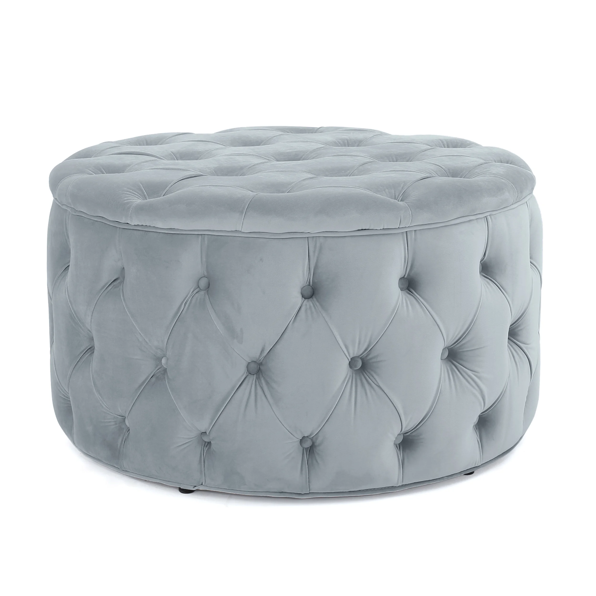 Stunning style and luxurious textures are just a click away from transforming your home. Featuring smooth velvet upholstery and button-tufted diamond stitching, this ottoman is a guaranteed win in any room. This ottoman offers a variety of versatile functions including extra seating for that unexpected guest or acting as a coffee table to hold a tray of snacks. Finished with a brilliant, jewel-like color, our ottoman offers a modern glam touch that easily enhances your decor in both convenience and style. MODERN GLAM: Our ottoman showcases soft textures and jewel-like colors that pair seamlessly with gracefully curved lines for a luxurious modern glam look. Complemented with deep tufting and minimalistic structure, this ottoman brings a sleek touch to any decor. BUTTON TUFTED DIAMOND STITCH: The button-tufted stitching offers an extra touch of sophistication that enhances its contemporary design. The diamond stitch pattern adds a bit of texture without sacrificing any comfort. VELVET: Our velvet is 100% polyester, featuring a featherlike softness and unique sheen. With a built-in resistance to wrinkles and outstanding durability, this velvet is hands down the best option amongst velvets. VERSATILE: Whether this is used as a cocktail ottoman, casual seating, a coffee table, or purely for decorative purposes this piece can be used in a multitude of ways. Designed to match any room of your home, this ottoman will blend seamlessly with your existing decor. DIMENSIONS: Choose an accessory that is the perfect size for you and your furniture. This ottoman is 29.50” W x 29.50” D x 18.00” H. You will love how much your space can transform with the simple addition of this charming ottoman.