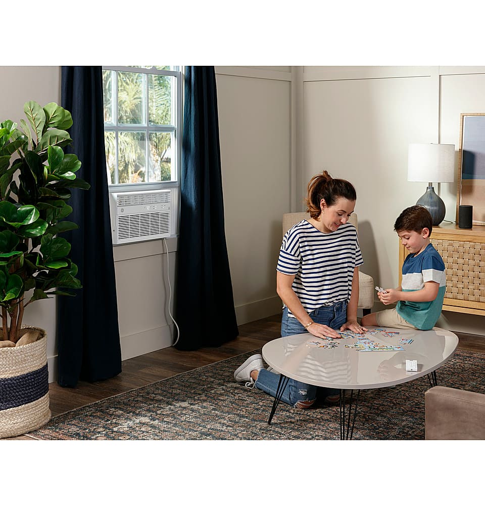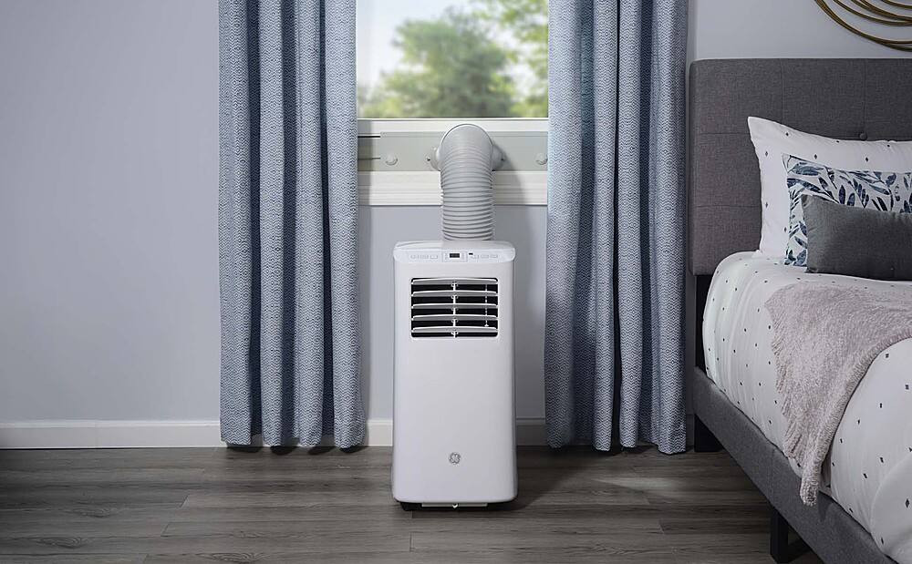 GE Appliances is dedicated to providing the right solutions for rooms of any size. Our portable air conditioners are designed to provide exceptional comfort with quiet operation, and the 3-in-1 functionality with built-in air conditioning, two fan speeds and dehumidifying capabilities provide ultimate flexibility and convenience. This 115V GE Portable Air Conditioner cools small rooms up to 150 square feet and is perfect for a bedroom or small office. The auto-evaporation technology evaporates any water the portable unit collects under most room conditions, eliminating the need to drain excess water. LED controls with included remote make it easy to clearly see and manage your settings from anywhere in your room. This portable AC installs easily in double hung or sliding windows with no cutting required and comes with easy-roll wheels for effortless mobility. Additional features like a washable filter, 24-hour on/off timer, and auto restart offer ease of use and maintenance. Portable units must be vented out of a window.