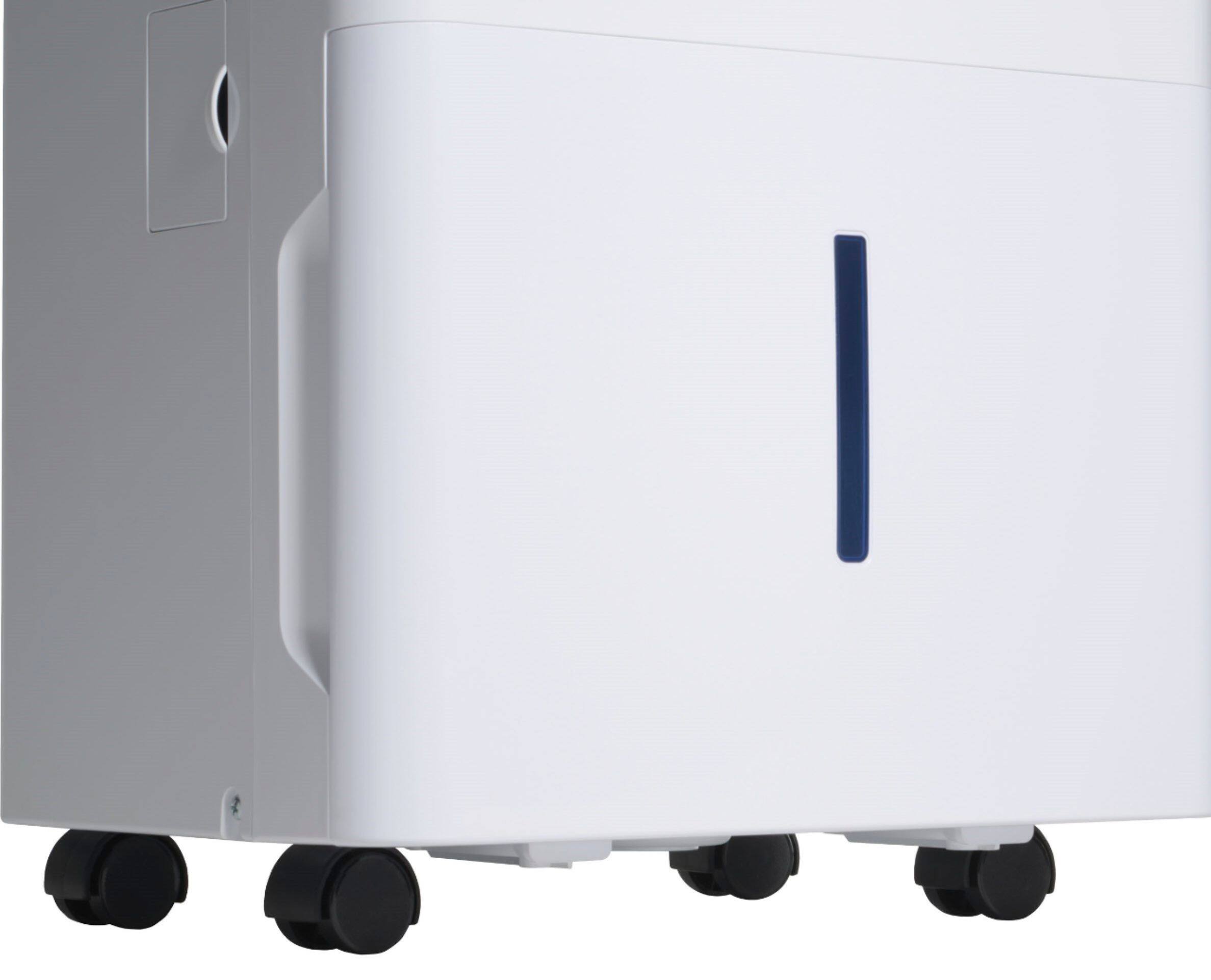 This Dehumidifier removes 35 pints of water from the air per day. It is ideal for use in very damp spaces, home, or basement. LED controls let you clearly see and manage your settings. The Smart Dry feature compares the set humidity level with the actual humidity in the room and automatically adjusts the fan speed accordingly. The adjustable humidistat allows you to set your desired humidity level anywhere between 30-70% (40% is recommended for maximum comfort). Three fan speeds, auto restart and auto defrost provide ease of use and excessive moisture removal, while pocket handles and easy-roll wheels allow effortless mobility between rooms. This unit comes with a external hose connection for continuous drain option, or simply empty the bucket when it’s full. The unit works best with a clean filter, so we’ll remind you when it’s time to clean it, ensuring maximum performance and efficiency.