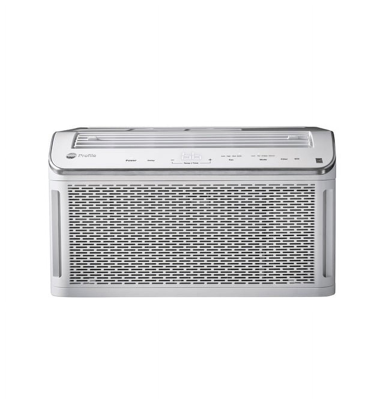 Ultra Quiet This quiet 8100 BTU A/C reaches sounds as low as 43 dB, underlining GE Profile’s rating as the Quietest Window AC Brand. (Based on avg sound ratings by brand of 5K-24K BTU Window AC from publicly available info, compared to 74% of the product in the US WAC category per Traqline 9/21) Built-In WiFi Use the SmartHQ app to control and monitor this WiFi enabled smart A/C from anywhere, giving you connected peace of mind Voice Control Use voice commands to control the unit after connecting it to a smart speaker like Amazon Alexa or Google Assistant Energy Reporting Monitor A/C energy consumption with reports that show how much you’ve used, so you can maximize savings and enjoy a truly connected performance Geolocation Geofence technology pinpoints your smartphone location then automatically adjusts the smart A/C settings for when you’re home Auto-dimming The LED display automatically dims after one minute of inactivity so you aren’t disturbed by the light as you sleep Maximum Comfort Cool Three cooling settings and fan speeds provide total flexibility with optimal home comfort and A/C efficiency Eco Mode The A/C Eco Mode automatically turns off the fan and compressor when the room is cool enough, reducing your utility costs Filter Reminder Get a filter change reminder when the filter needs cleaning, so you can keep the unit performing at its best Capacitive Touch The capacitive screen controls are flush with the A/C and require less pressure to operate Dry Mode Dehumidify A built-in A/C humidity setting balances humidity levels in the room to maintain comfort and make it easy to breathe Cools Medium Rooms 8,100 BTU cooling capacity offers maximum comfort in rooms up to 350 square feet Electronic Thermostat with Remote Digital controls with included remote make it easy to adjust and manage your settings from anywhere in your room Energy Star This Energy Star certified A/C gives you the same great cooling while using less energy and reducing utility costs
