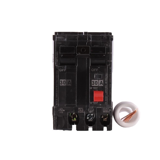 The GE 30 Amp Double Pole Ground Fault Circuit Breaker with Self-Test has a tin plated copper stab to create a reliable, permanent and corrosion resistant connection. The Self-Test functionality is a UL requirement on all GFCI devices commencing in June 2015. This variant of the GFCI ensures its ground circuitry is functioning properly by automatically running diagnostic testing on a periodic basis. Should a problem be detected, the circuit breaker will trip and will need to be replaced.