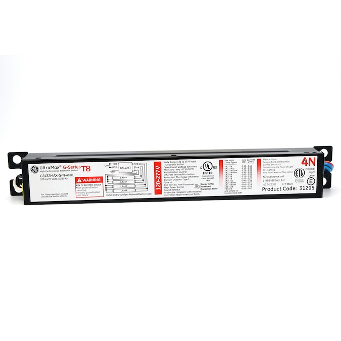 GE ProLine commercial grade multi-volt electronic ballasts are designed for commercial and residential use. They’re instant start and handle voltage 120V through 277V. GE ProLine ballasts also feature arc-guard protection and fully parallel independent bulb operation. If one fluorescent bulb fails, all the others in the system stay lit. Use this GE ProLine 432MAX-G-N contractor pack ballast in T8 (1-inch diameter) 4 or 3 bulb fixtures that are designed for F32T8 and F28T8 48-inch fluorescent bulbs.