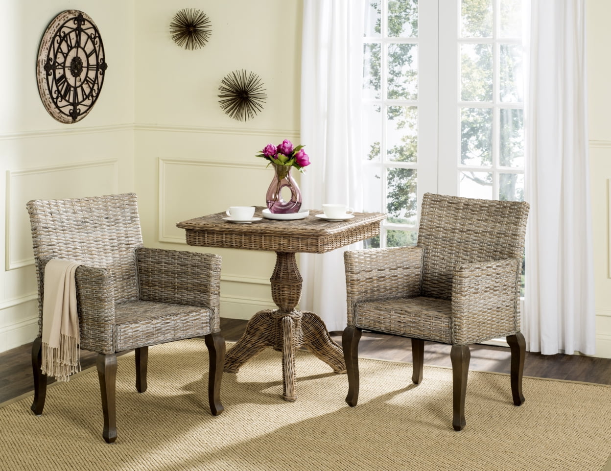 Tapered legs Coated elm wood frame Natural rattan seat No Assembly Required