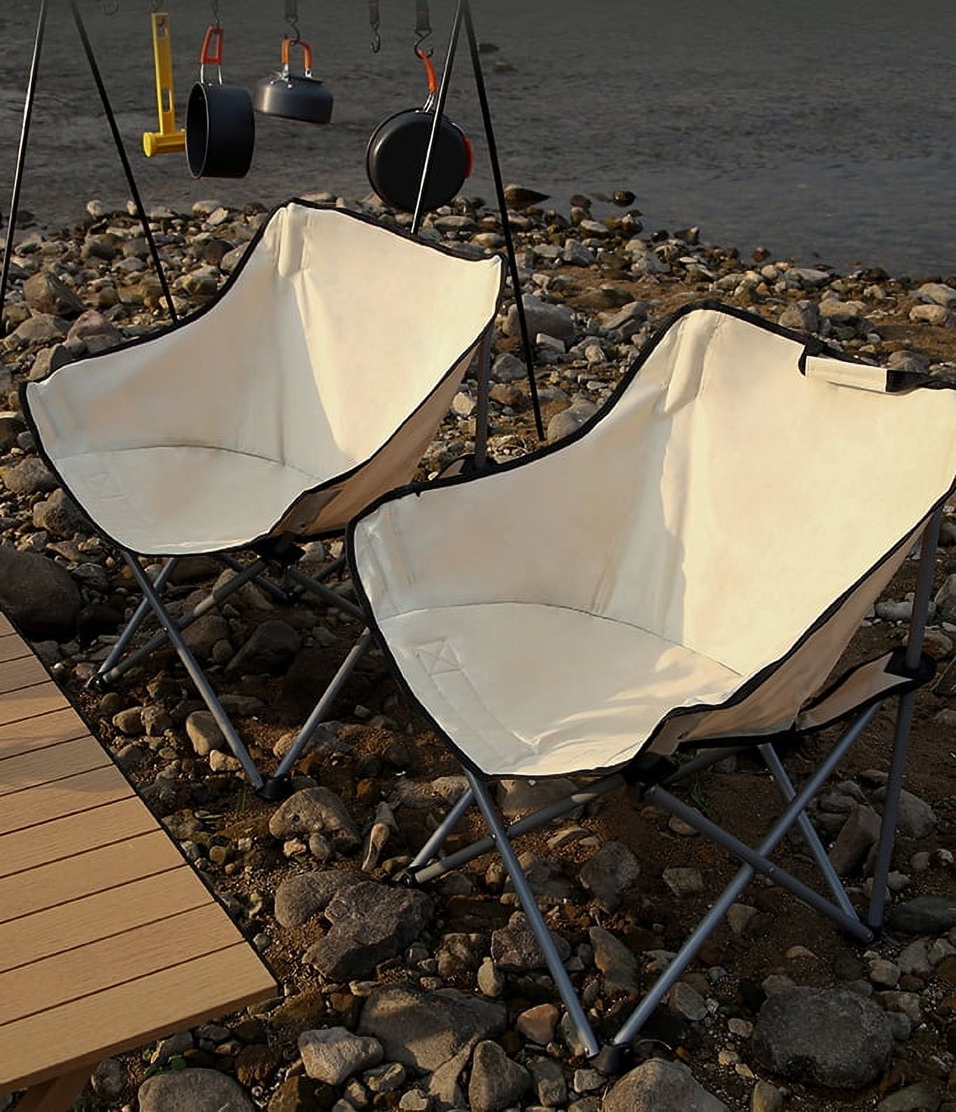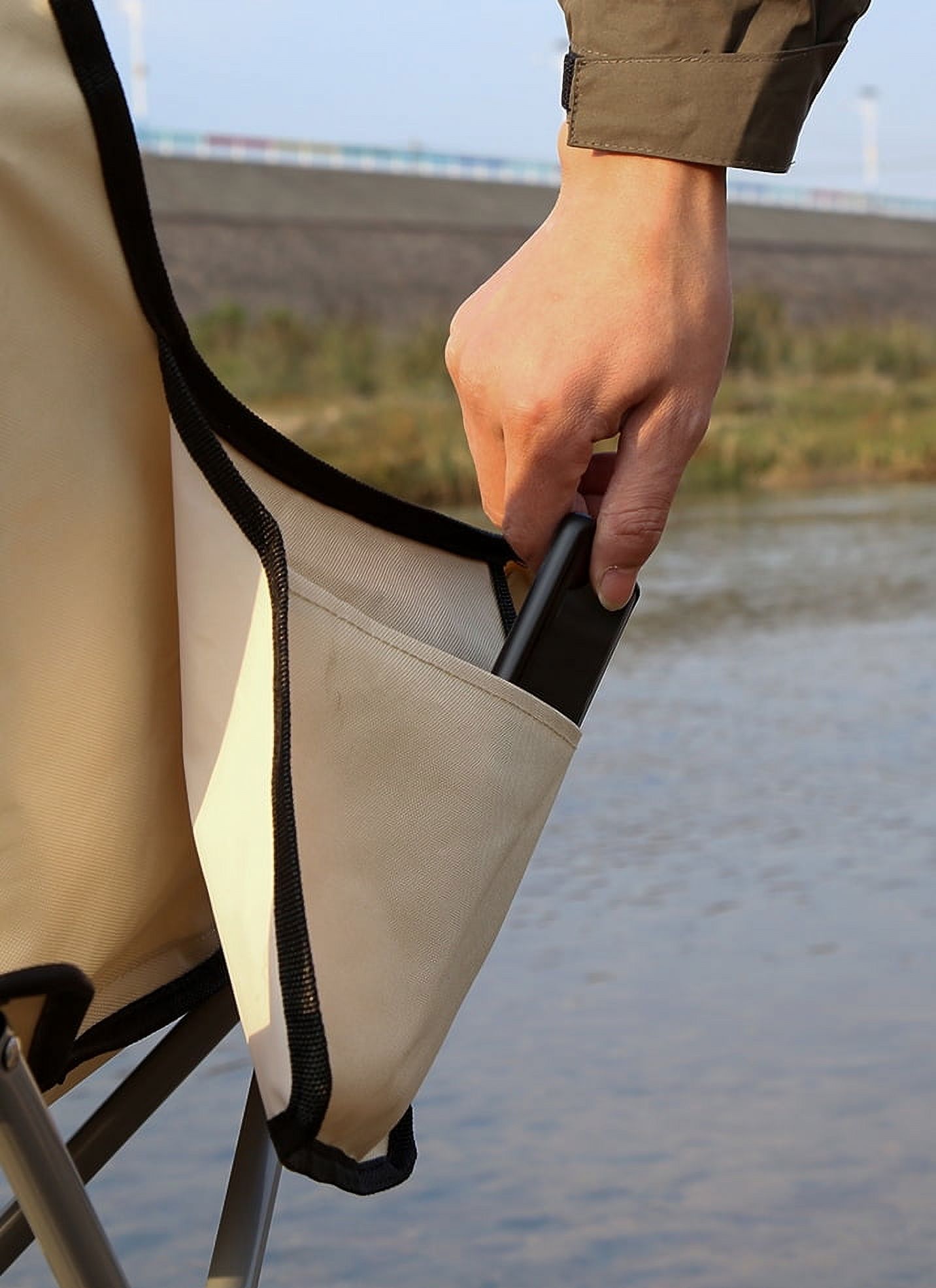 Lightweight: The folding camping chair weighs 7 lbs. So you can take it everywhere with ease. It comes with a carrying bag for easy travel and to make storage easy. The durability makes for a reliable chair that can be used season after season Durable Material: 100% polyester fabric for a super strong and lightweight fabric. The 16mm steel tube frame with powder coating creates a durable frame. Comfortable Design: Scientific structure design with half back makes this portable camping chair comfortable to sit and relax. The foldable chair equipped with storage pouch on one side, so you can relax without a care Open Size: Quad chair seat width-18 inches, seat depth-20 inches, seat height-14 inches, total height-26 inches. Great size for any outdoor activities and indoor use Versatile: Great camping chairs for adults. The natural color design makes this quad camping chair fashion and suitable for all your outdoor life, like hiking, camping, traveling, fishing or watching your favorite sporting events. (2 years warranty)