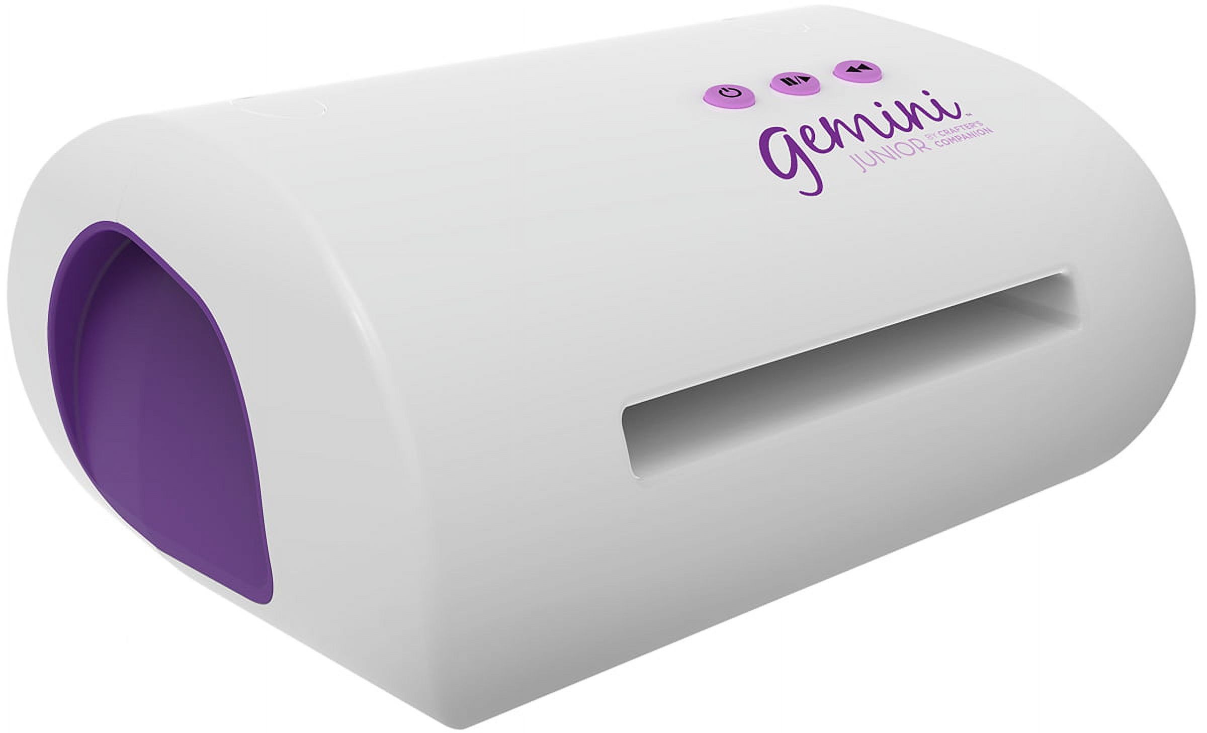 Working with limited space or crafting on the go? The Gemini Junior die cutting machine packs the same power and performance as its full-sized counterpart in a convenient, compact size. Easily cut through intricate die cuts and a variety of materials in just a single pass. This quiet machine’s pause, resume, and reverse feature also lets you craft quickly and easily while checking for mistakes. What’s in the box? Gemini Junior machine (10.6″ W x 5.4″ H x 7.6″ D). 2 clear cutting platforms, Metal cutting platform, Magnetic shim, Plastic shim, Rubber embossing mat, 3D embossing folder, Set of dies, User guide, Power cord. Each machine features a 6″ x 9″ platform size and is compatible with most thin metal dies and embossing folders.